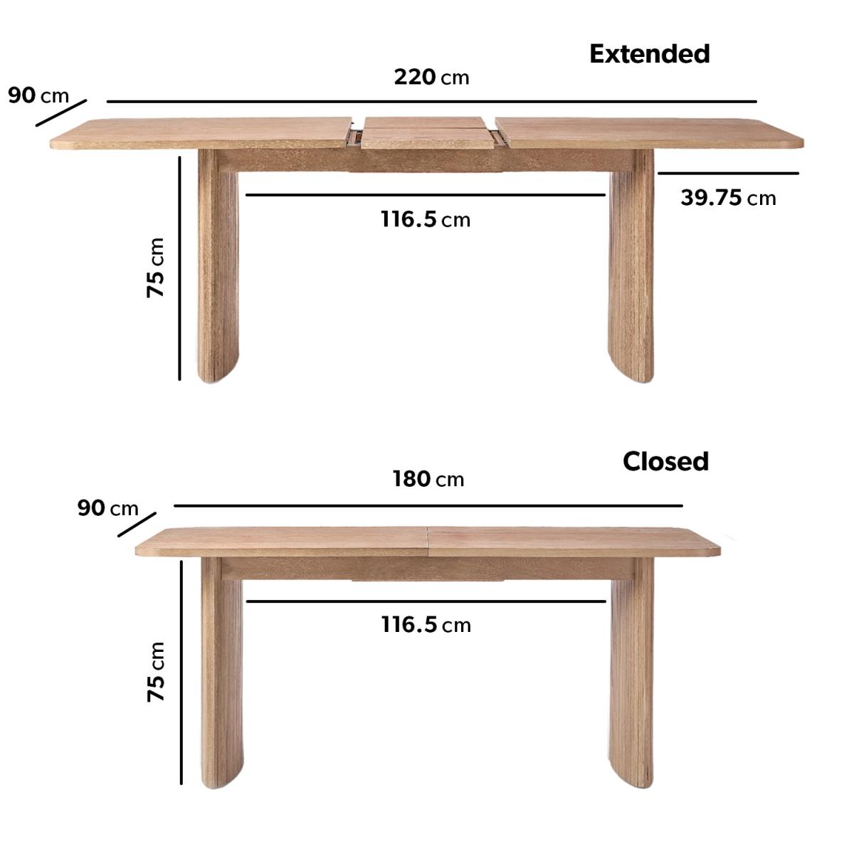 This bundle includes: Large Oak Extendable Dining Table - Jarel 4 x Beige Fabric Dining Chairs-Colbie 1 x Large Oak Dining Bench - Jarel Care instructions - Please use heat-protective mats & coasters when placing food & hot/cold drinks onto the table to protect the natural oak wood, clean up any spills straight away as oak wood is porous and will absorb liquids. Need to know Dining Table Information Dimensions:H75 x W180 x D90 cm Extended dimensions:H75 x W220 x D90 cm Material:Light oak veneer and solid oak Finish:Lacquered Extension mechanism:Butterfly Assembly required:Yes Dining Chair Information Number of chairs: 4 Dimensions: H79 x W57 x D58 cm Material: Chenille fabric Finish:Beige textured chenille fabric with sleek oak legs Assembly required: Yes Range: Colbie Dining Bench Information Number of Benches: 1 Dimensions: W180 x D38 x H45 cm Material: Oak and oak veneer Finish: Lacquered Assembly required: Yes Range: Jarel