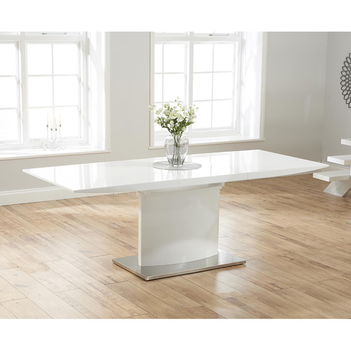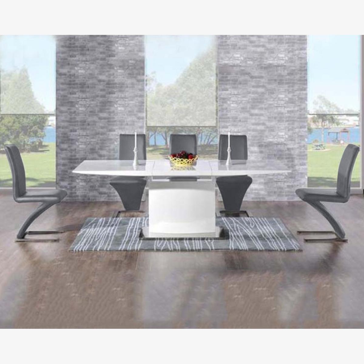 I really like this extension table paired with the grey Aldo chairs-it offers a sleek, contemporary look that works well in modern or minimalist interiors. The high gloss white finish adds a clean, fresh feel, making it a great centrepiece for open-plan spaces or kitchens that emphasise brightness and simplicity. When styling, consider adding colourful or textured place settings to introduce warmth and personality without overwhelming the streamlined design. It’s practical for both everyday family meals and larger gatherings, thanks to the extension feature. To keep the space looking balanced, incorporate soft textiles such as a neutral rug or cushions, and maybe some greenery for a touch of natural contrast. This set’s versatility makes it suitable for a variety of interior styles, from contemporary to Scandinavian-inspired schemes.