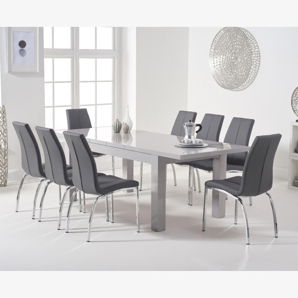 Extending Atlanta Light Grey Gloss 160-220cm Dining Table with 8 Grey Marco Chairs