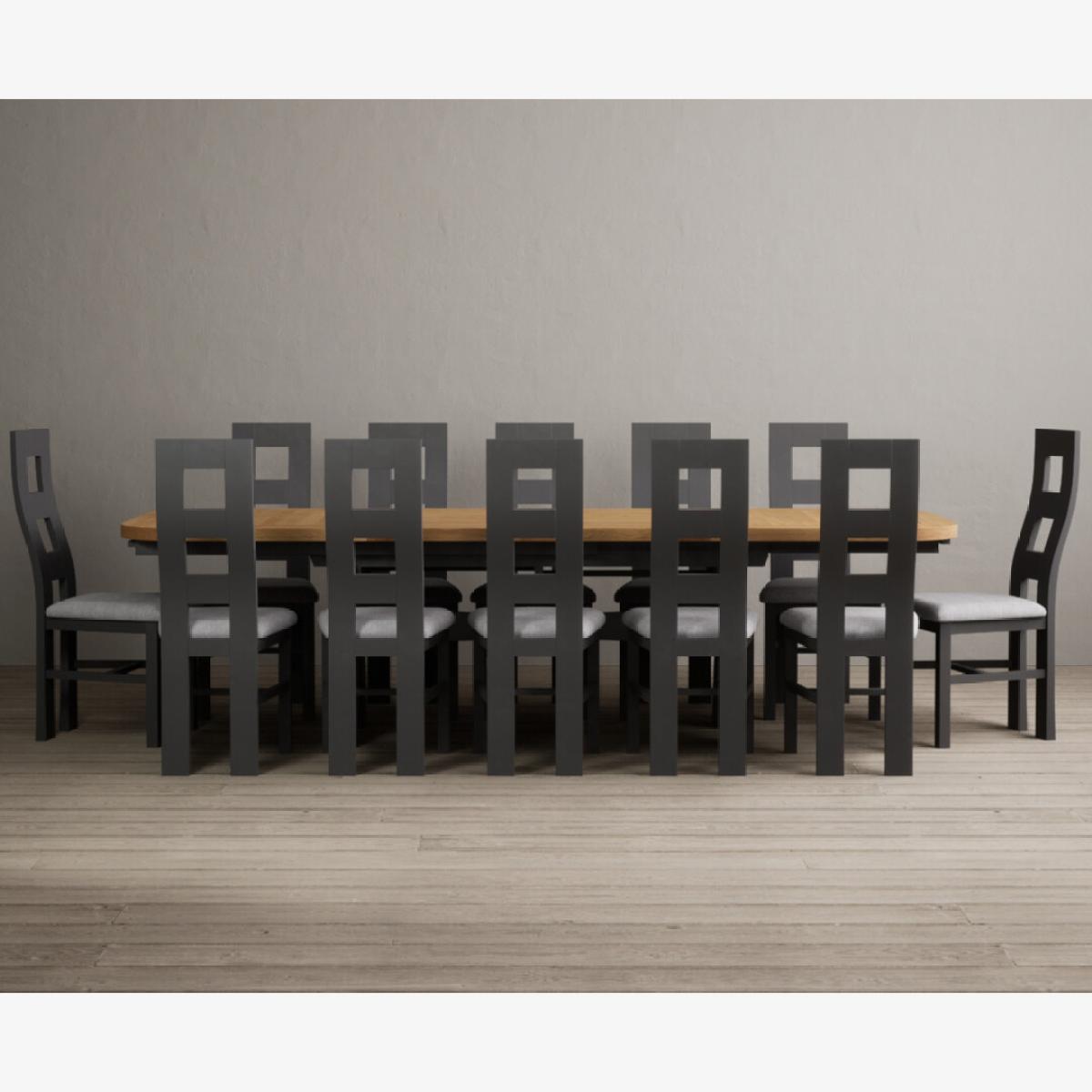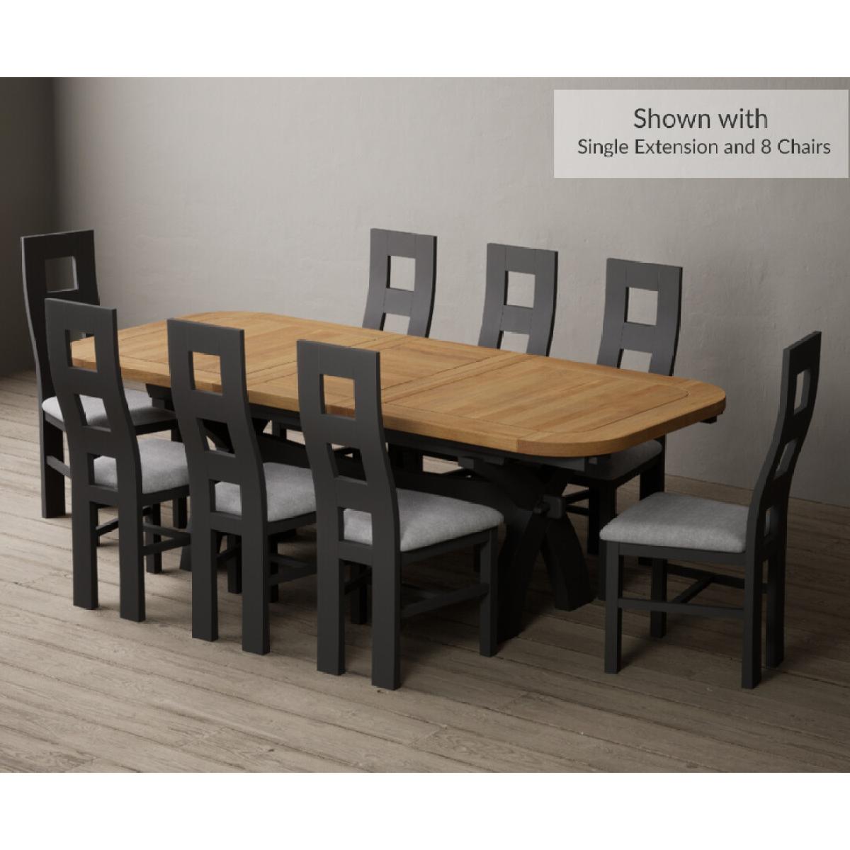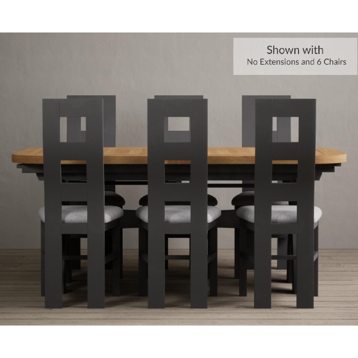 I love this dining set for its contemporary mix of materials and colours, making it a versatile statement piece. The Extending Atlas table offers practicality with its extendable feature, perfect for both everyday use and larger gatherings, while the oak top adds warmth to modern interiors. The charcoal grey base gives it a sleek, masculine edge, and two-tone styling makes it adaptable across various colour schemes. The blue flow back chairs inject a pop of colour that works especially well in more minimalist or monochrome interiors, creating visual interest without overwhelming. For styling tips, consider keeping the surrounding decor neutral to let the furniture stand out, or add textured placemats and contemporary tableware for a polished look. This set is particularly suited to modern, Scandinavian, or even eclectic interiors that blend clean lines with bold accents.