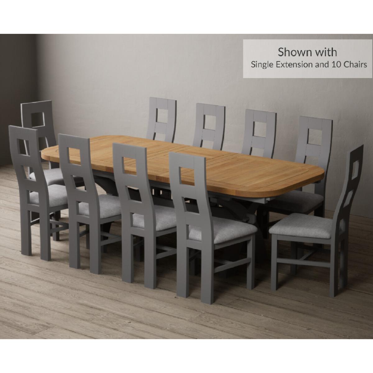 Extending Atlas 180cm Oak and Light Grey Painted Dining Table With 12 Light Grey Flow Back Chairs