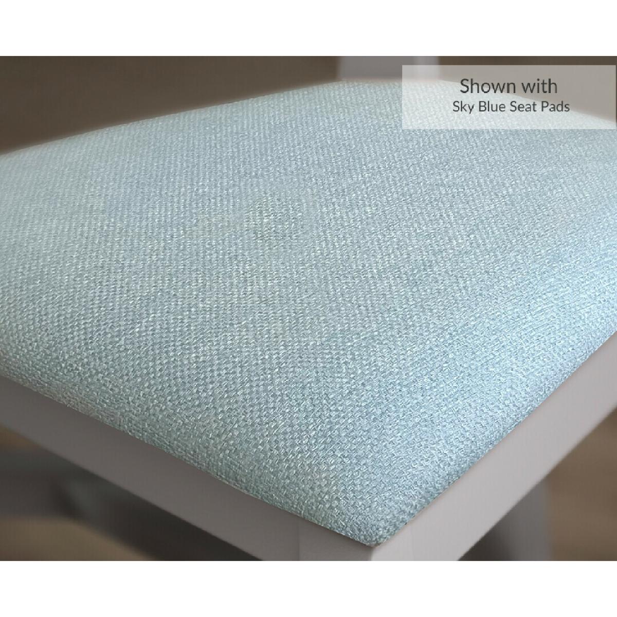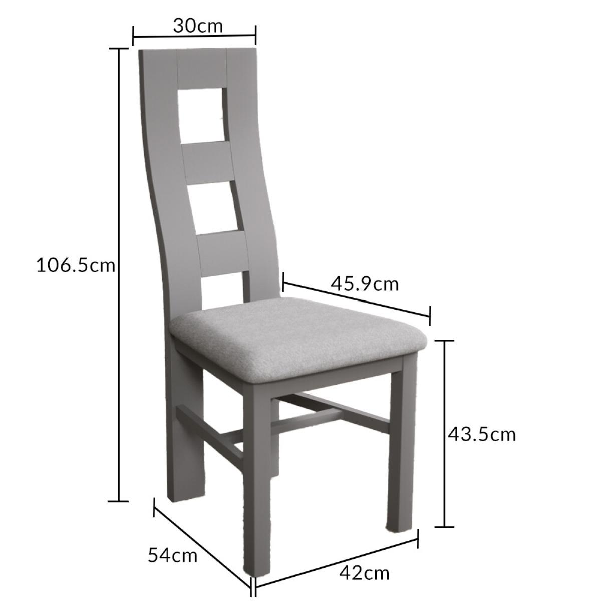 Extending Atlas 180cm Oak and Light Grey Painted Dining Table With Flow Back Chairs features a light grey extending dining table with a 100% solid oak top paired with matching dining chairs.