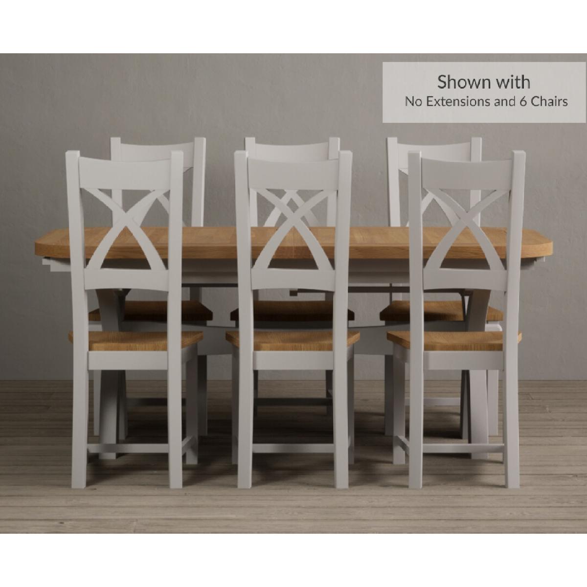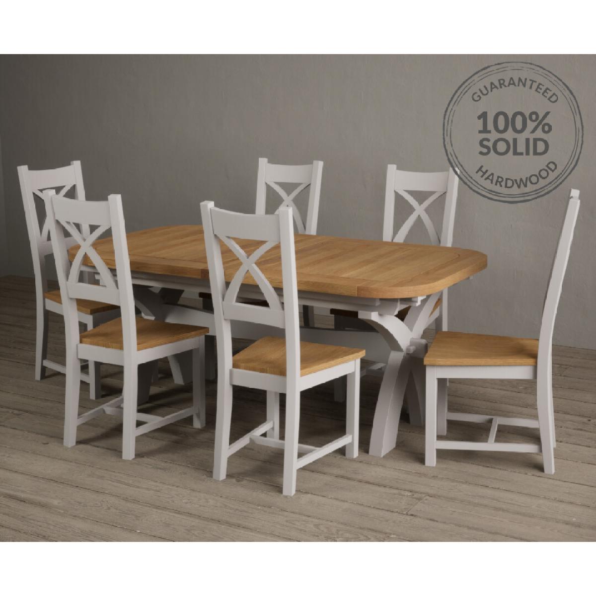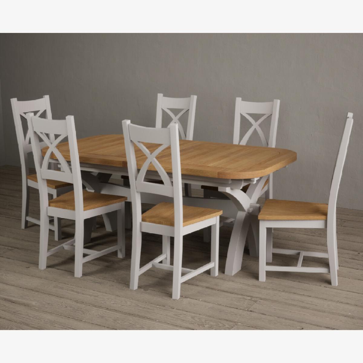 The Extending Atlas 180cm Oak and Signal White Dining Table with X Back Chairs is a stunning oak and white dining set with an extending dining table and x back chairs.