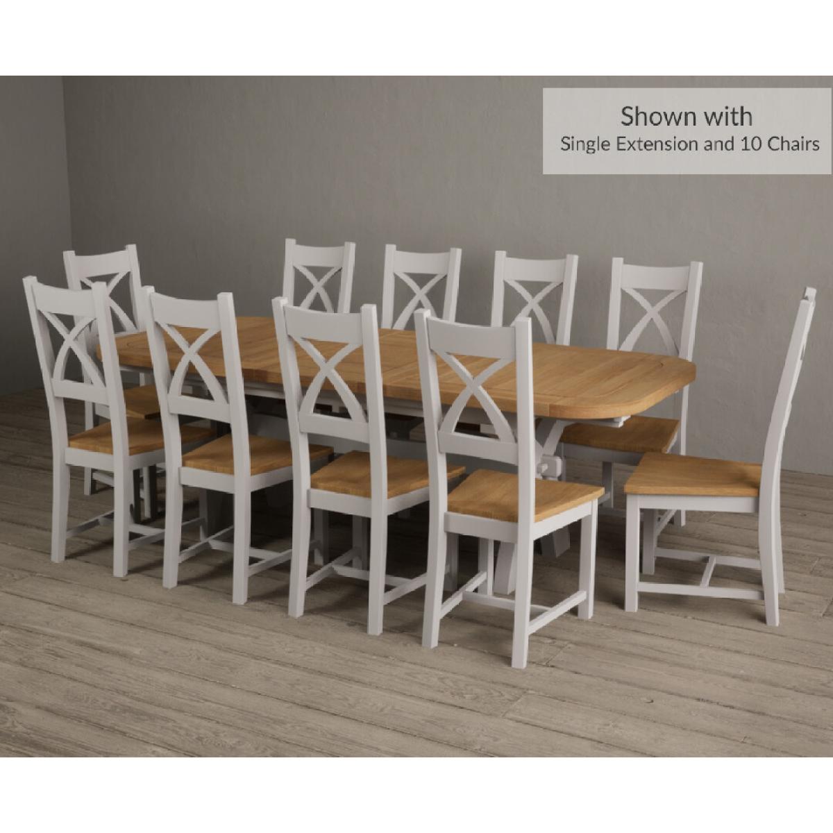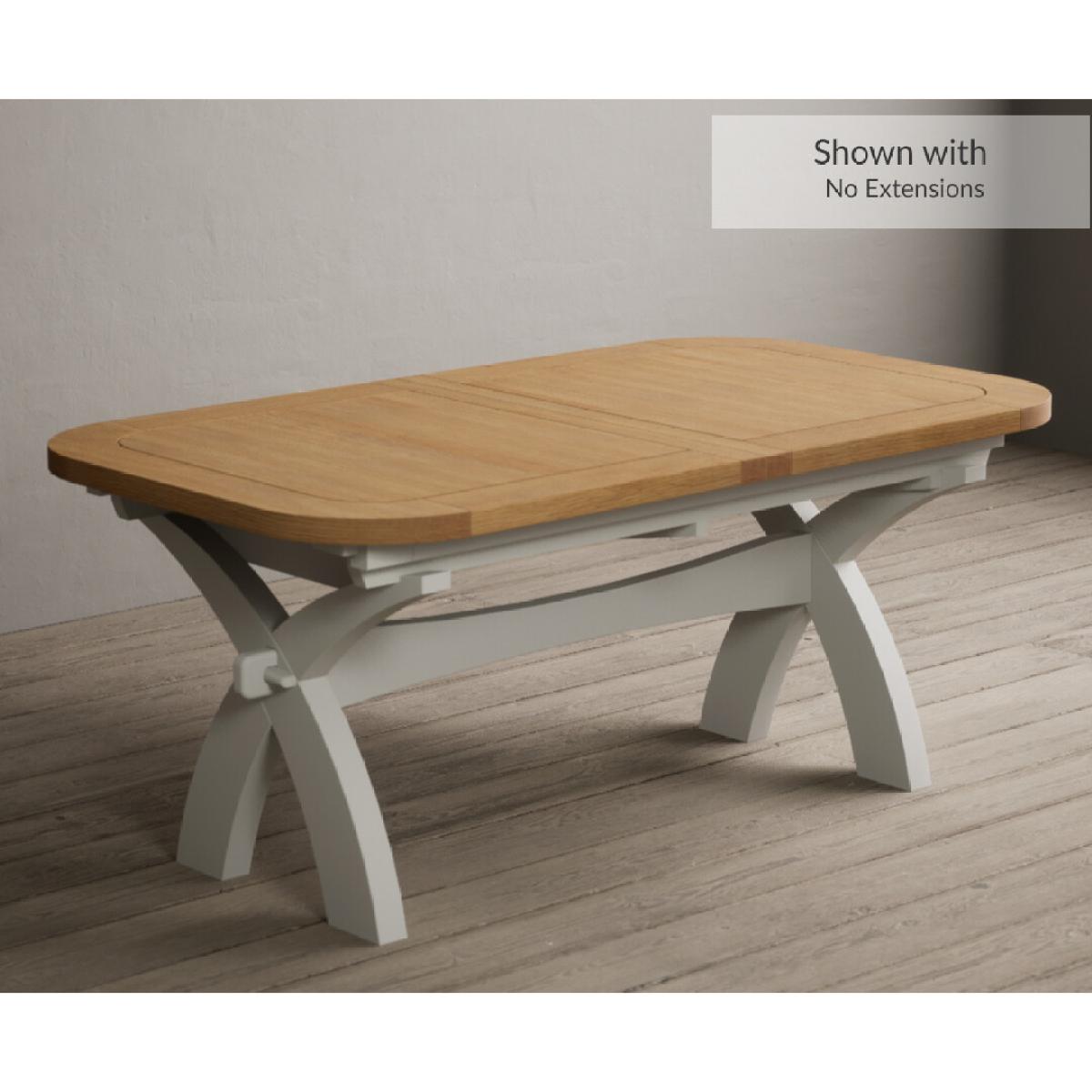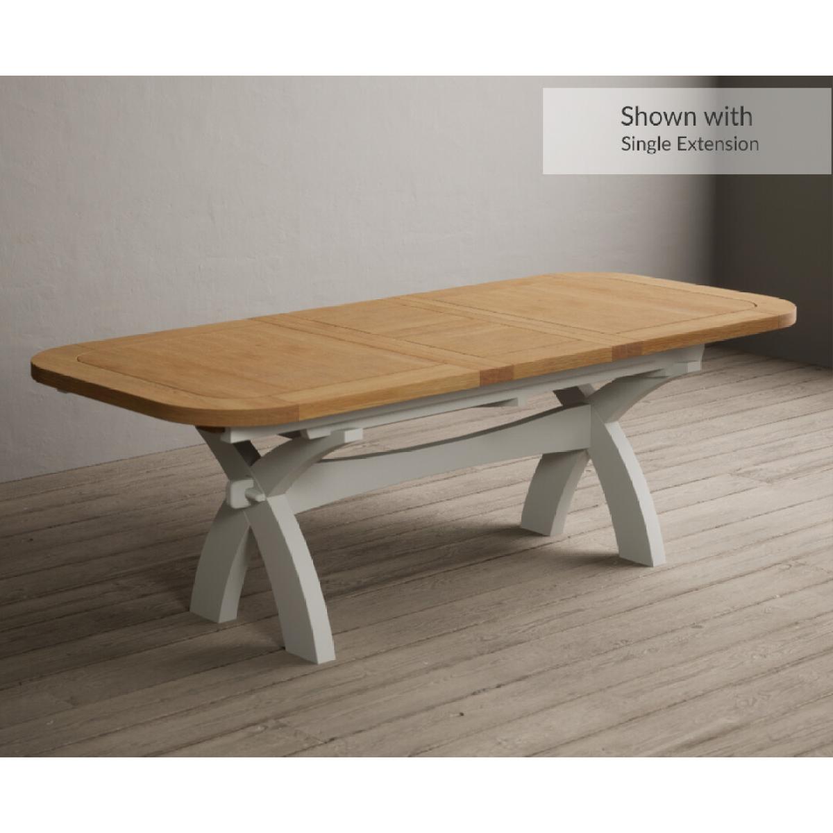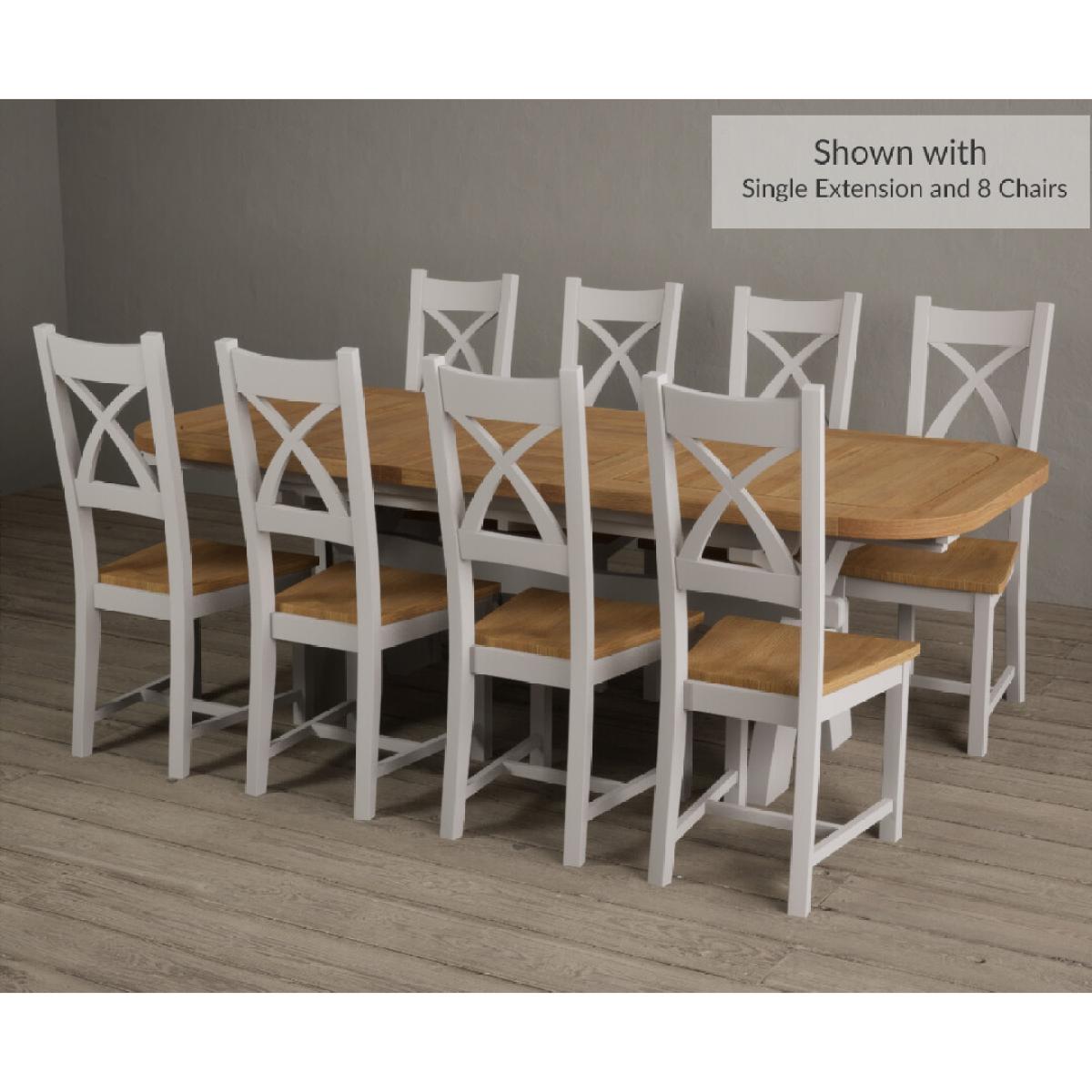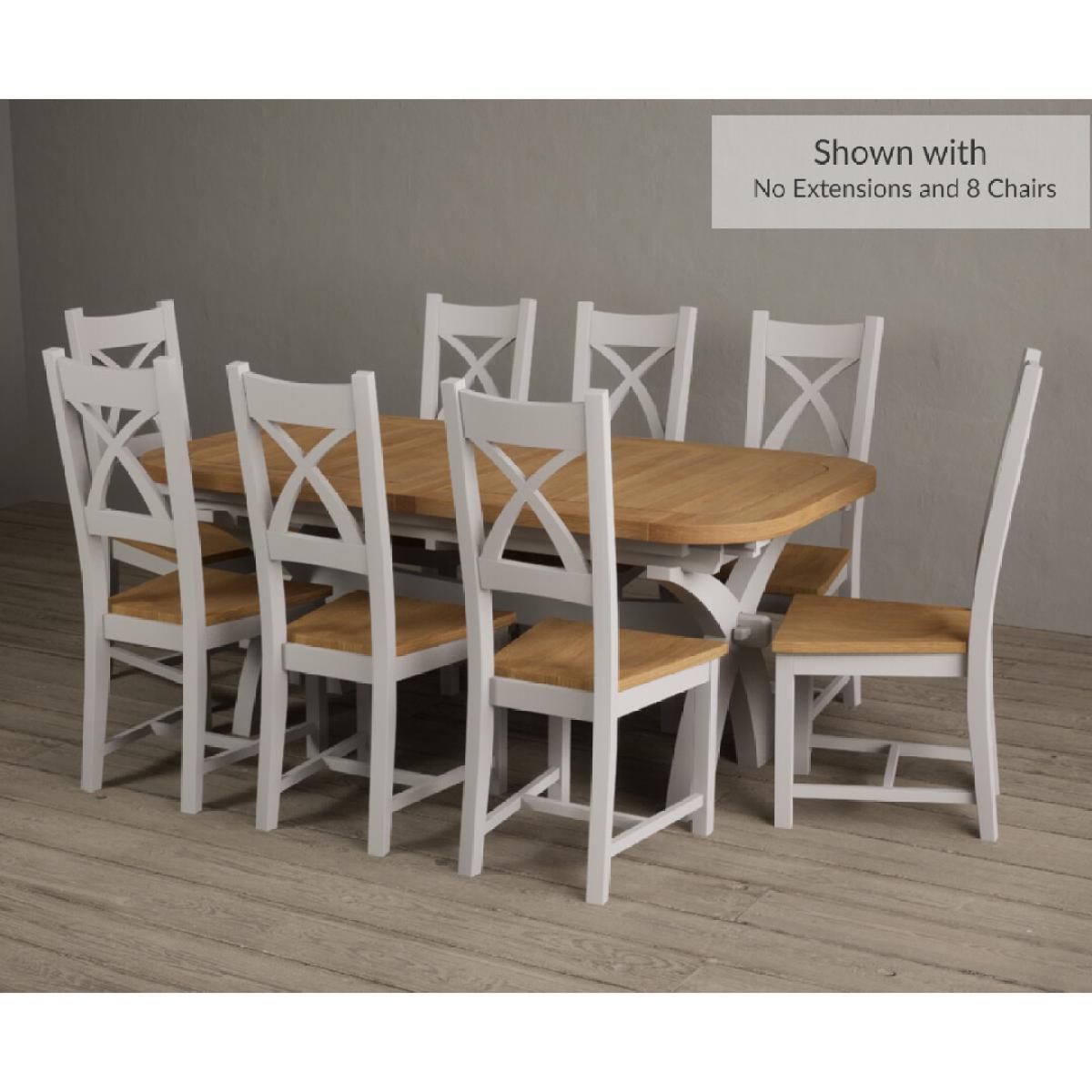 Extending Atlas 180cm Oak and Signal White Dining Table with 8 Linen X Back Chairs