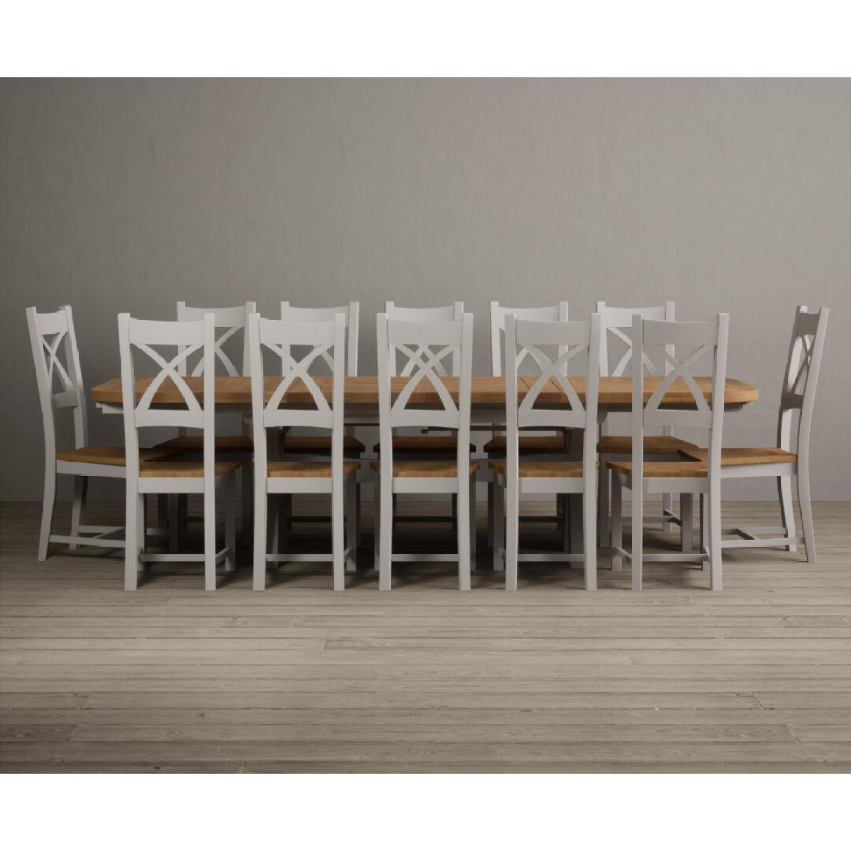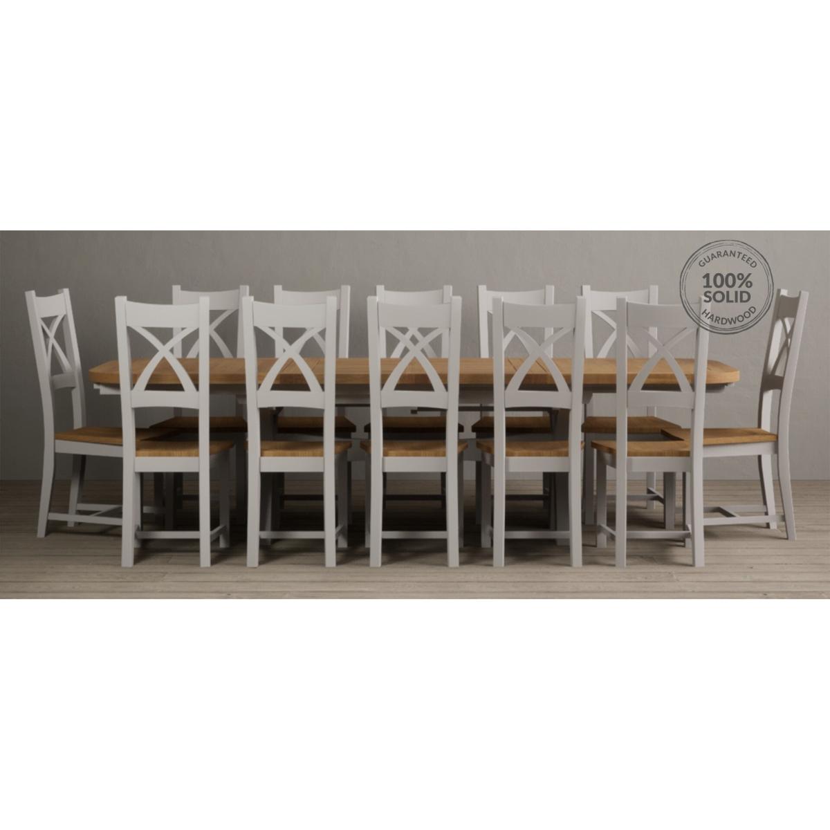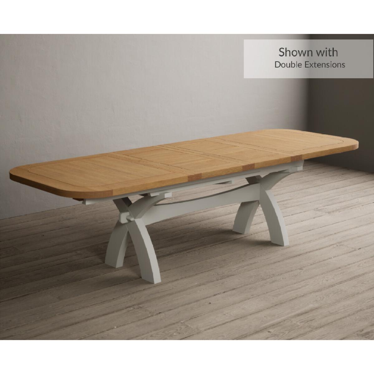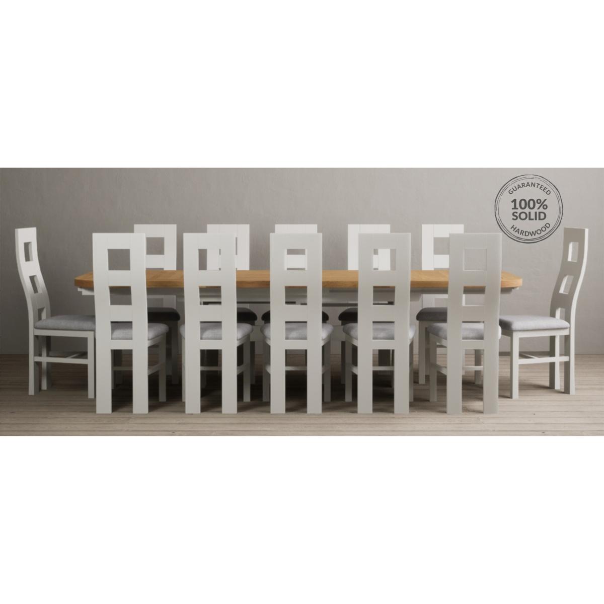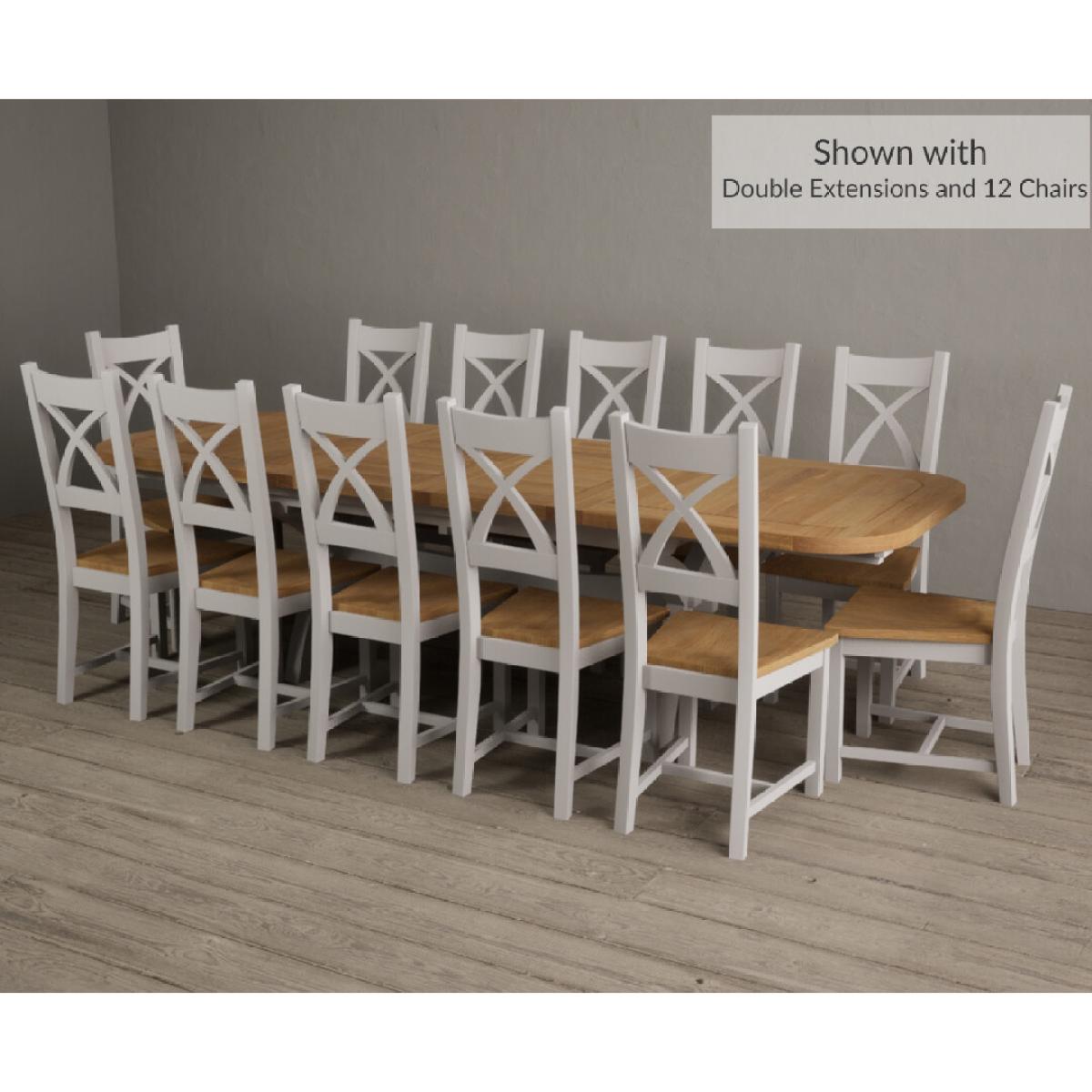 Extending Atlas 180cm Oak and Signal White Dining Table with 8 Linen X Back Chairs