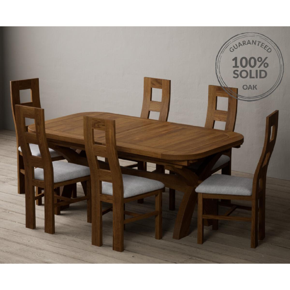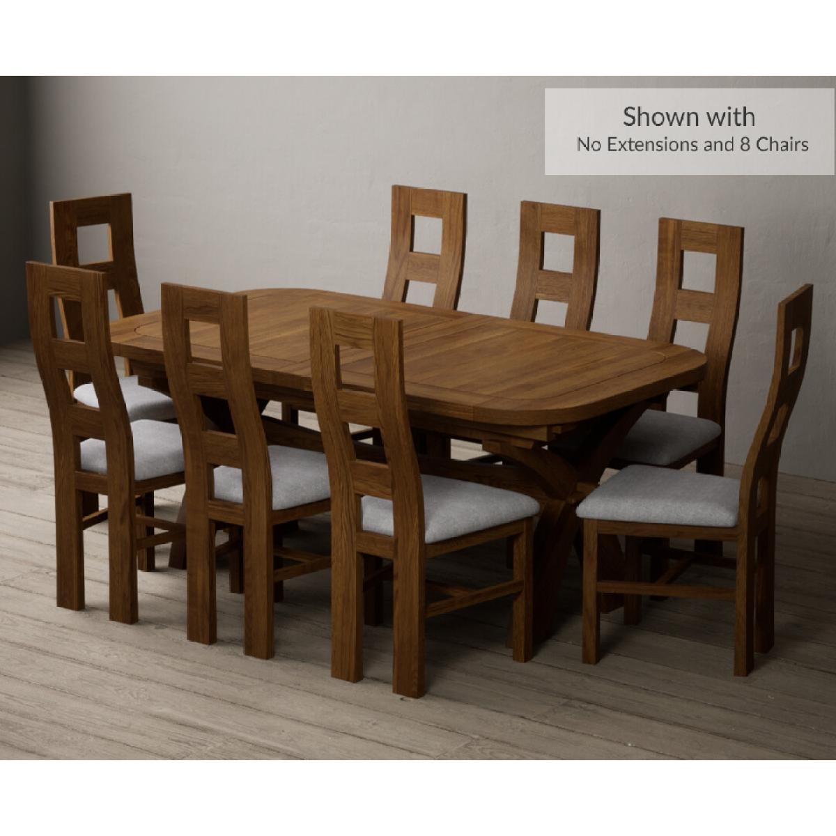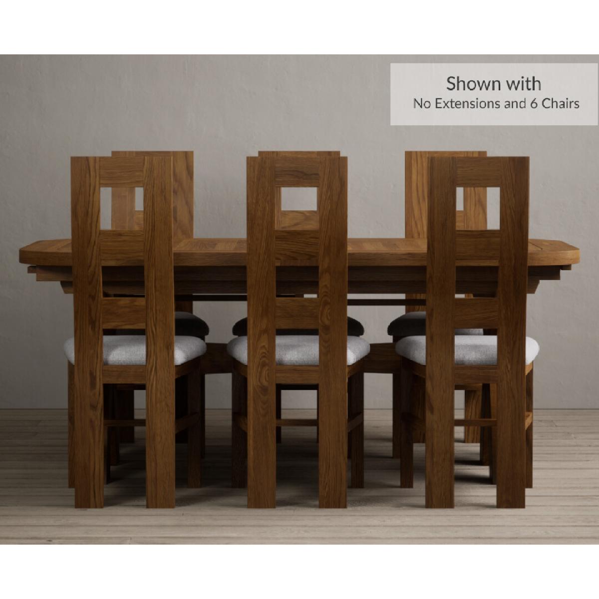 The Extending Atlas 180cm Rustic Solid Oak Dining Table with Rustic Solid Oak Flow Back Chairs features a 100% solid oak extending dining table with a rustic finish, paired with matching rustic oak dining chairs with a flow back design.