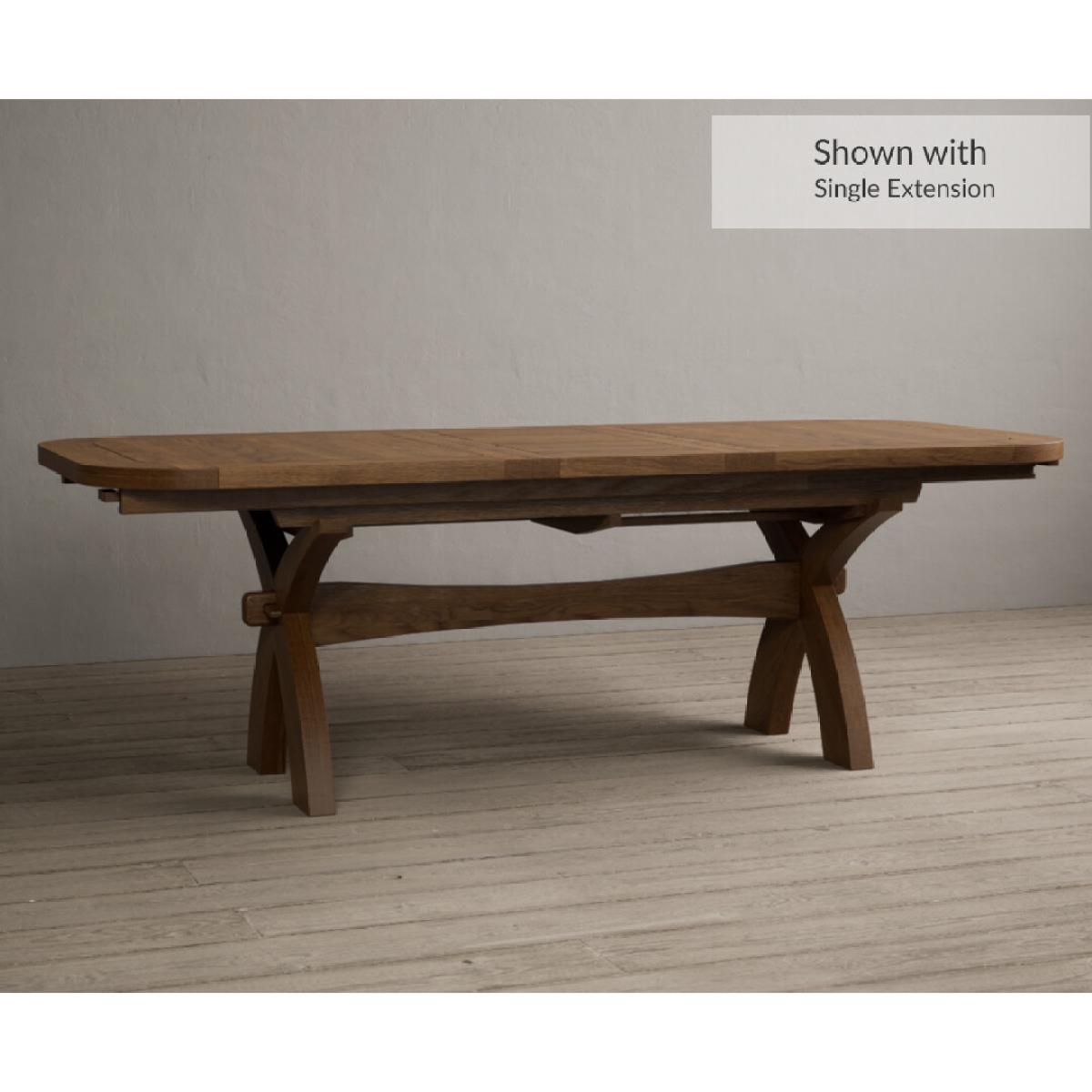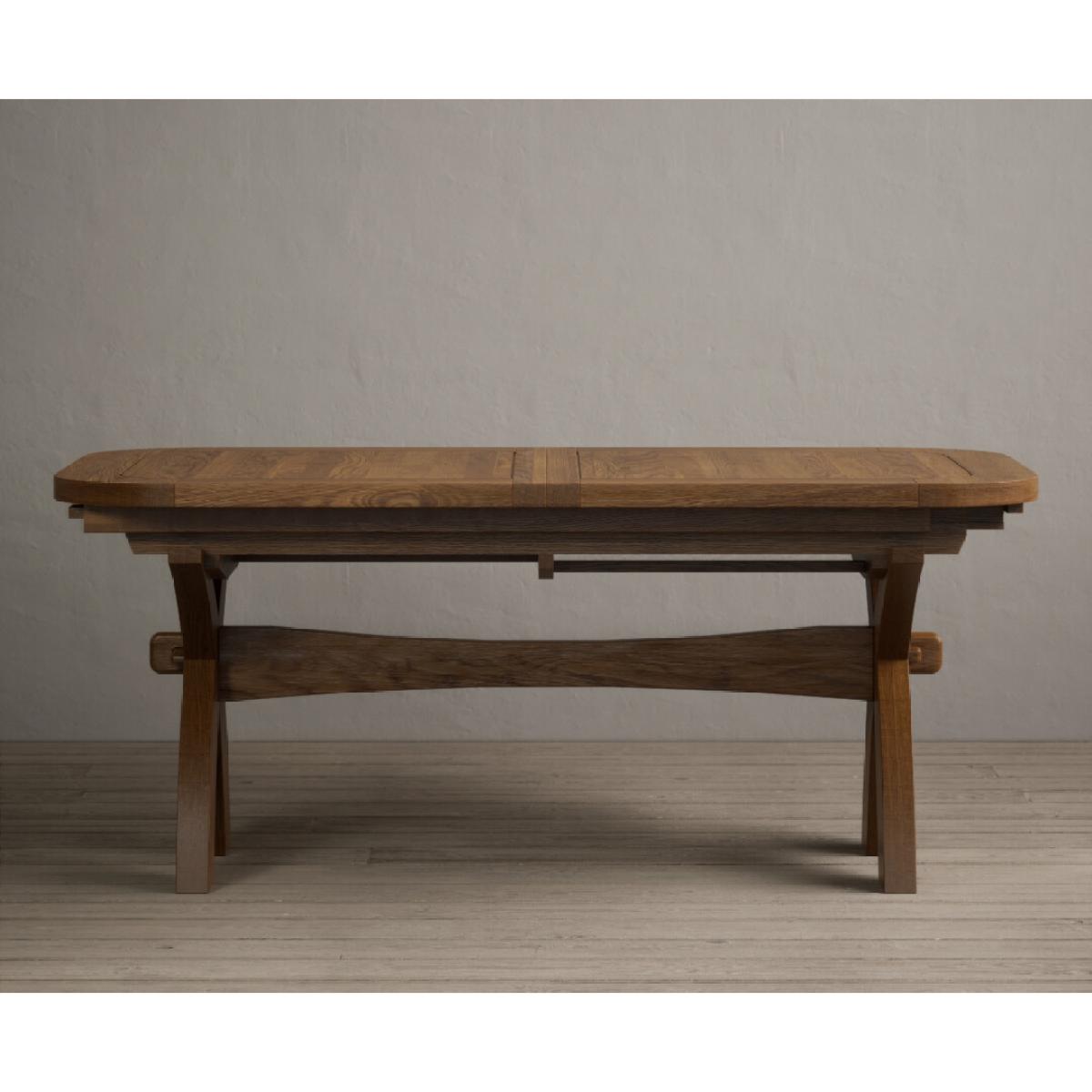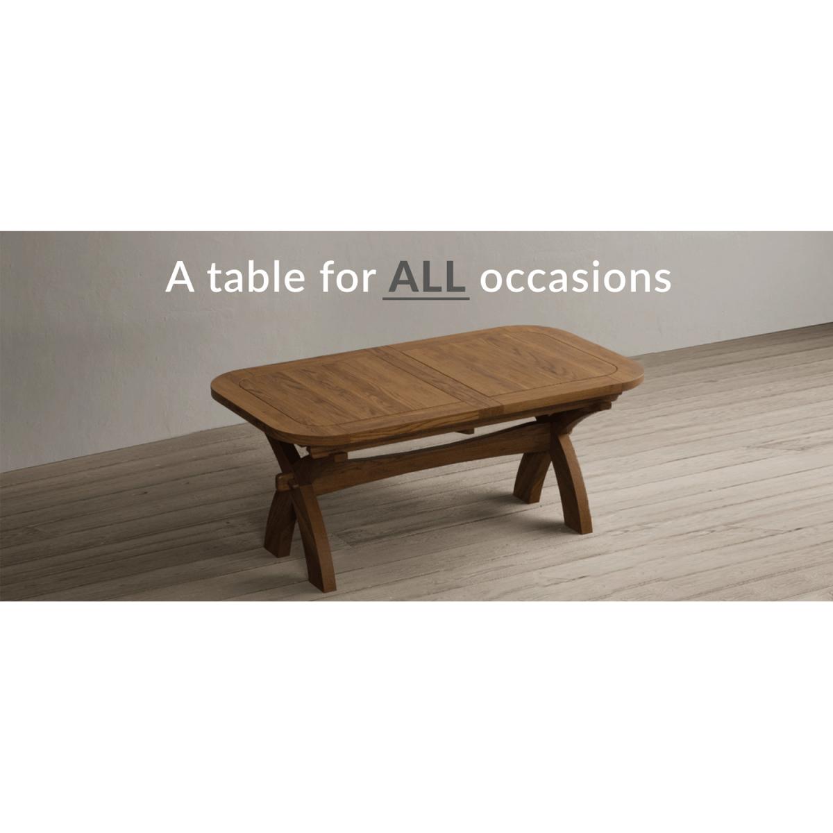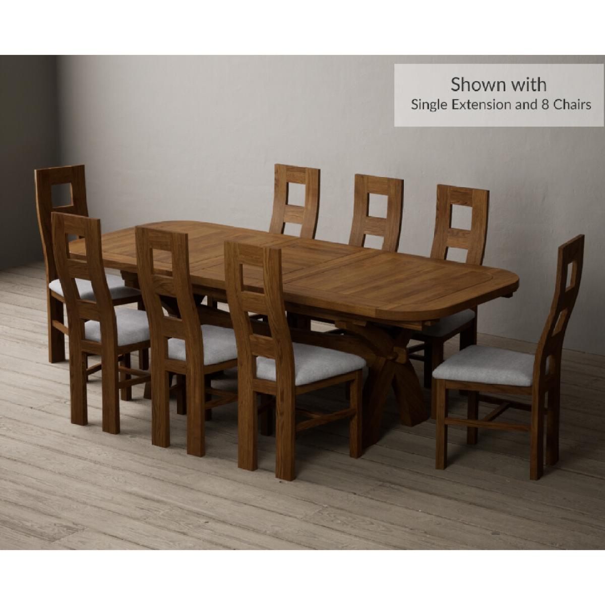 The Extending Atlas 180cm Rustic Solid Oak Dining Table with Rustic Solid Oak Flow Back Chairs features a 100% solid oak extending dining table with a rustic finish, paired with matching rustic oak dining chairs with a flow back design.
