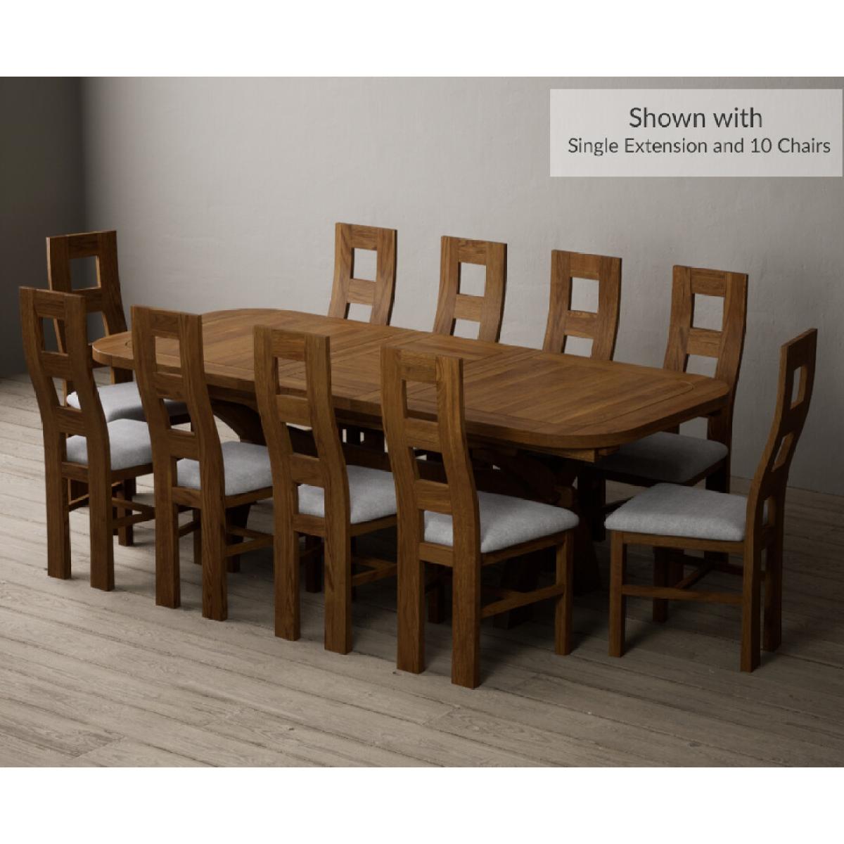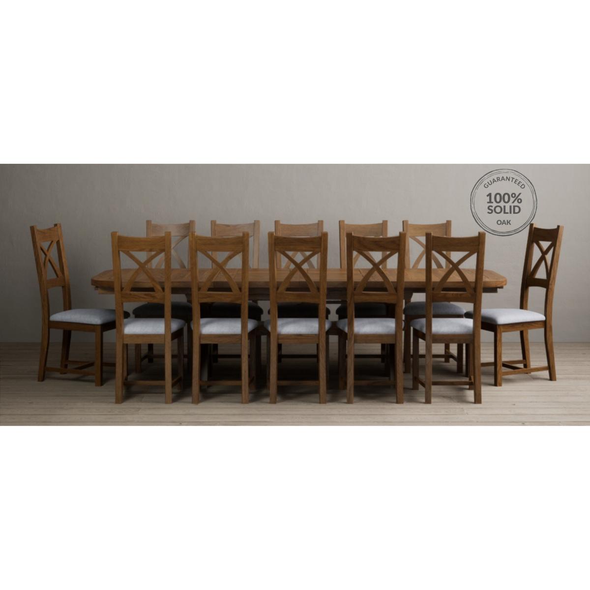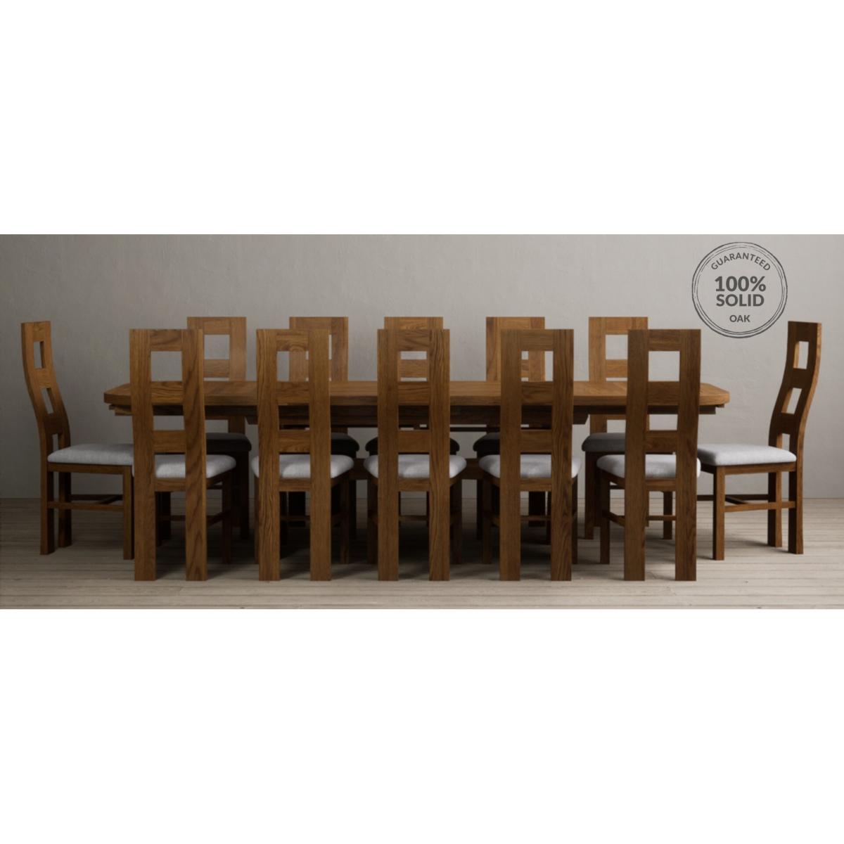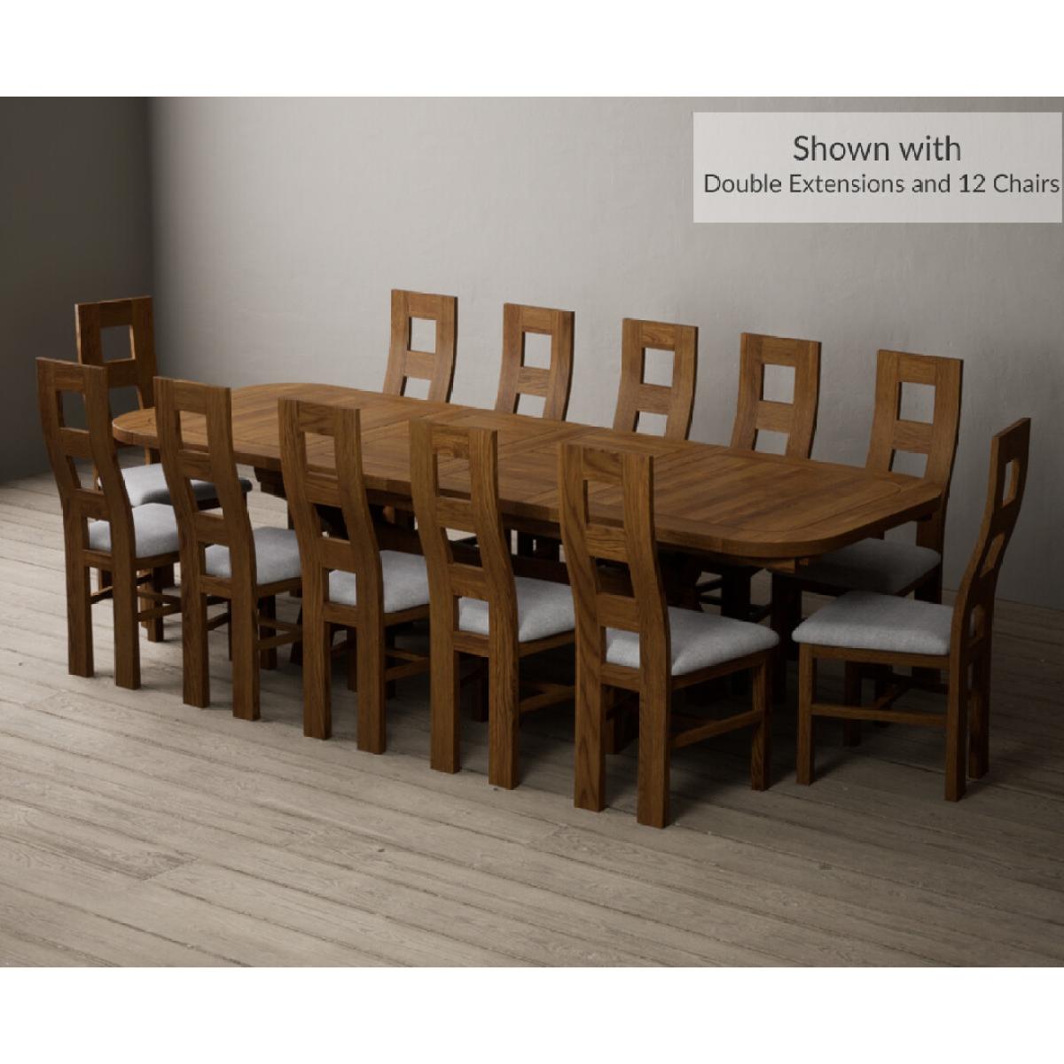 Extending Atlas 180cm Rustic Solid Oak Dining Table with 12 Blue Rustic Solid Oak Flow Back Chairs