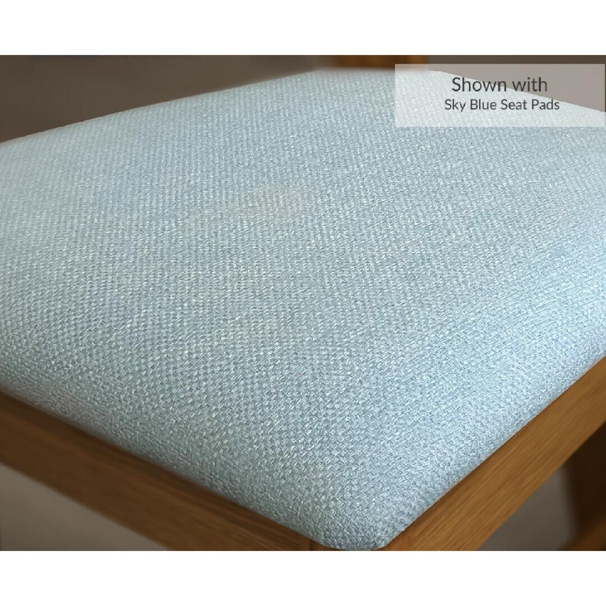 This dining set offers a fantastic mix of rustic charm and practicality, making it a versatile choice for various interior styles. The extending oak table is perfect for family gatherings or dinner parties, and the 12 blue rustic chairs add a bold pop of colour that works well in both contemporary and country-style interiors. I love how the natural oak finish lends warmth and texture, while the flow back chairs introduce a touch of modernity with their sleek lines. For styling, consider pairing this set with neutral-toned walls and soft accessories to let the blue seats stand out, or mix in other blue accents for a cohesive look. It's also quite practical-adding a colourful rug underneath can help define the dining area and soften the space.