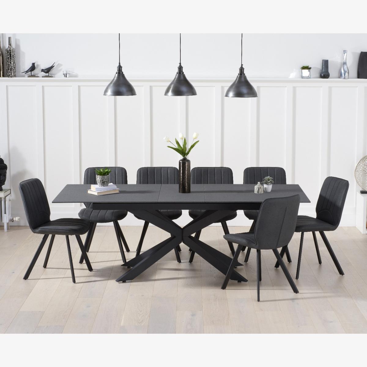 Boston 180cm Grey Stone Extending Dining Table with Hendrick Chairs. A beautiful dining table that will make a bold statement in any home