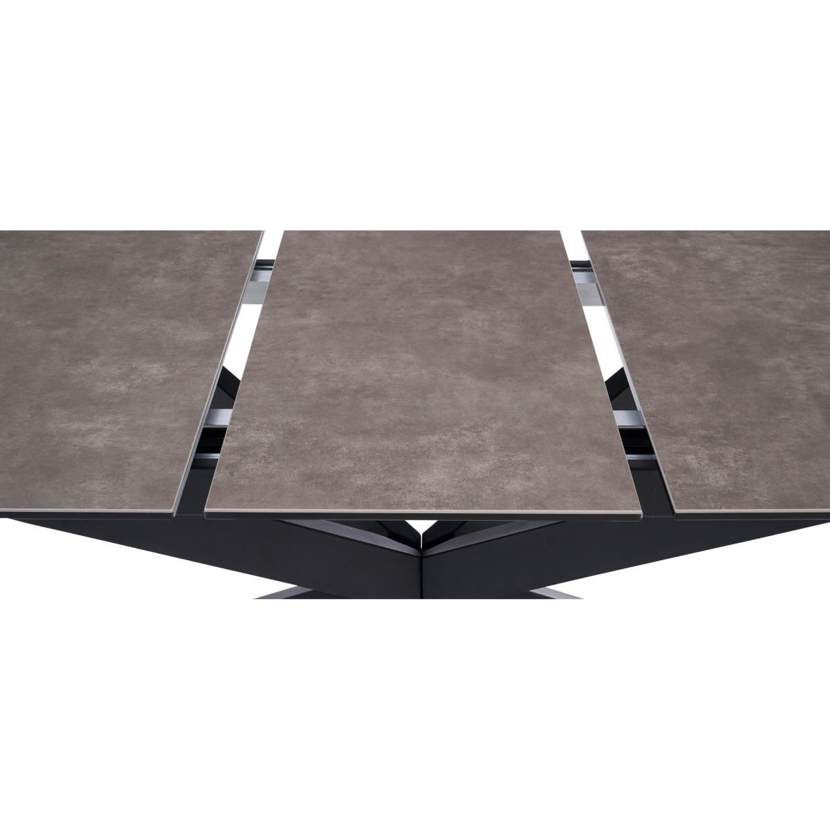 The Boston dining table features black legs dramatically come together beneath the surface to form a futuristic, three-dimensional X shape