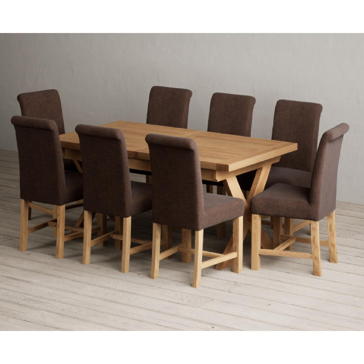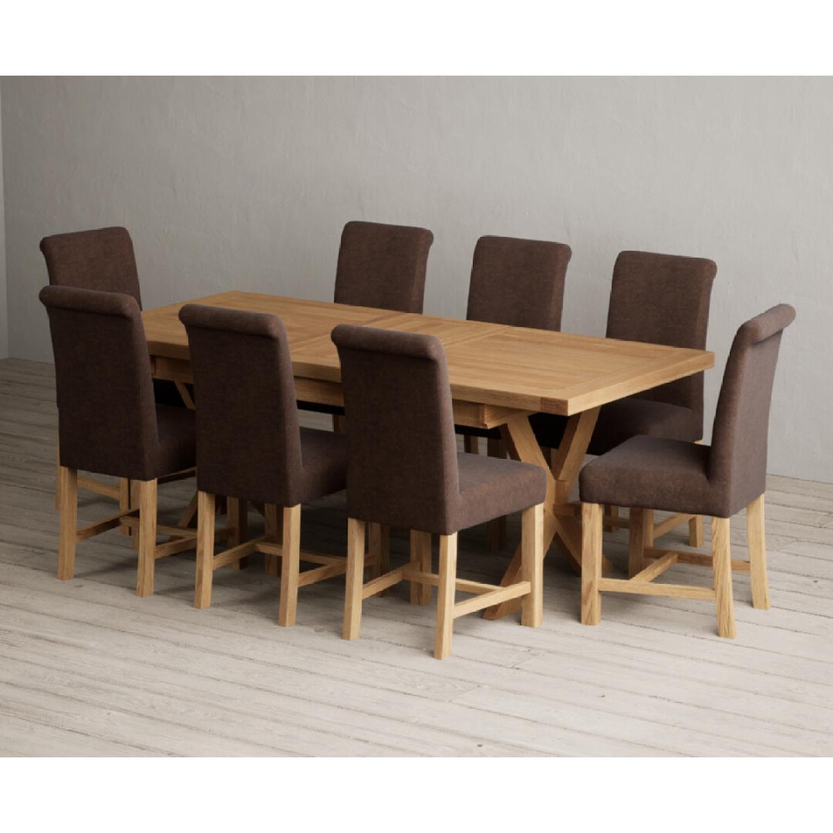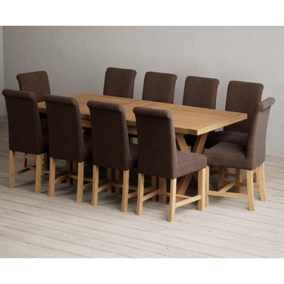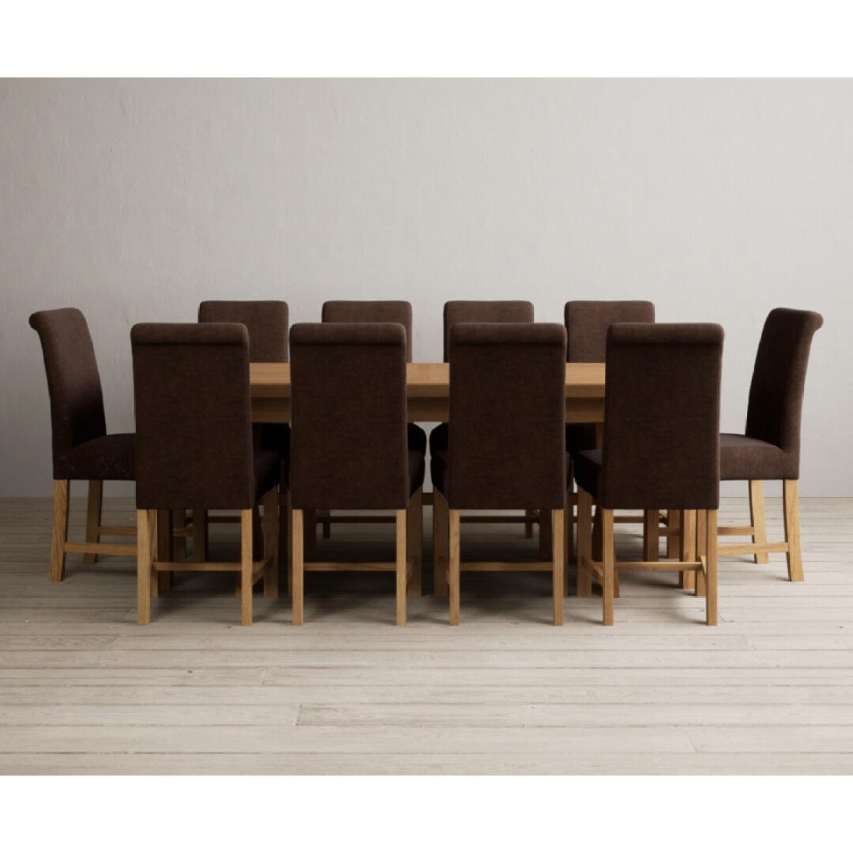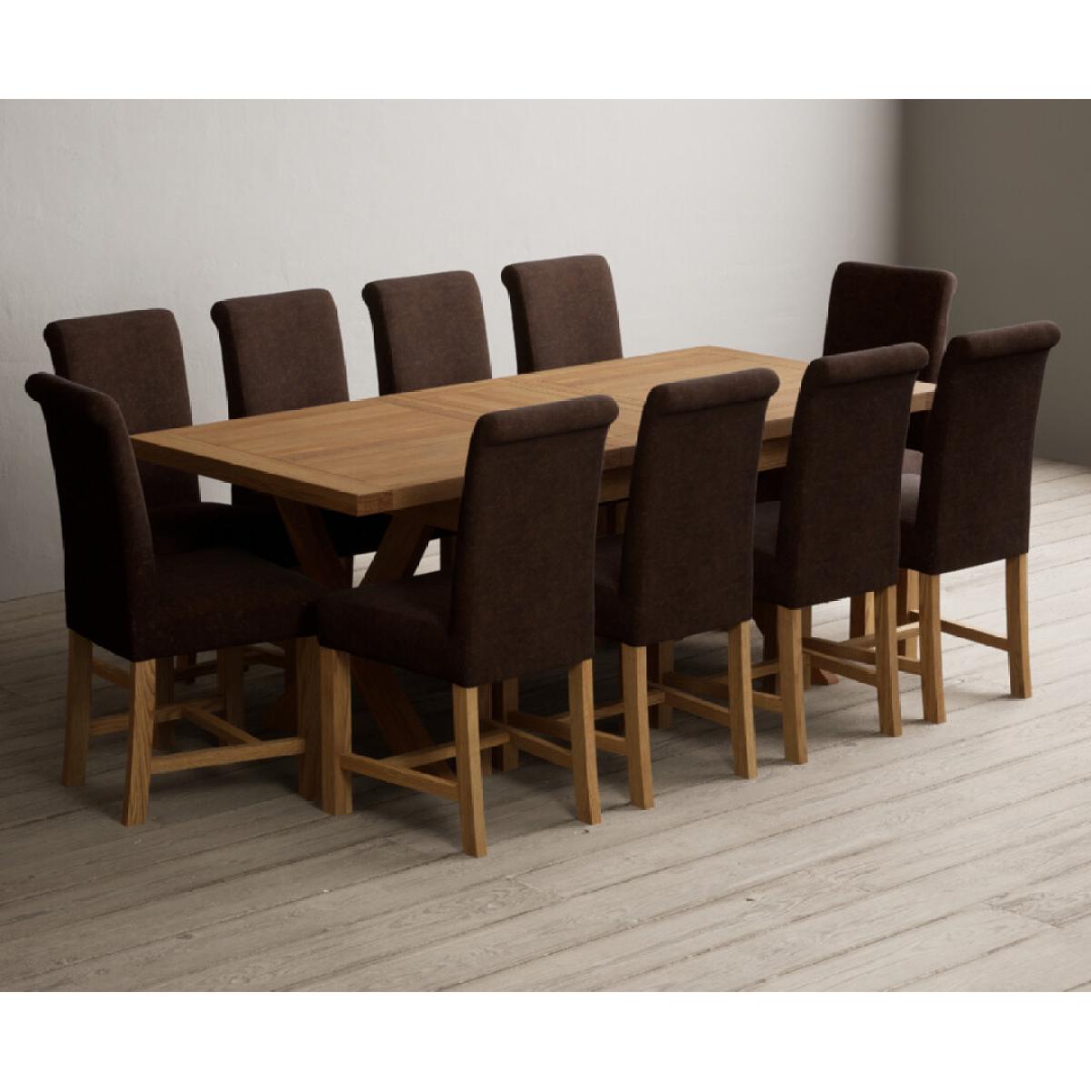 Extending Buckley 160cm Solid Oak Dining Table with 10 Brown Scroll Back Chairs