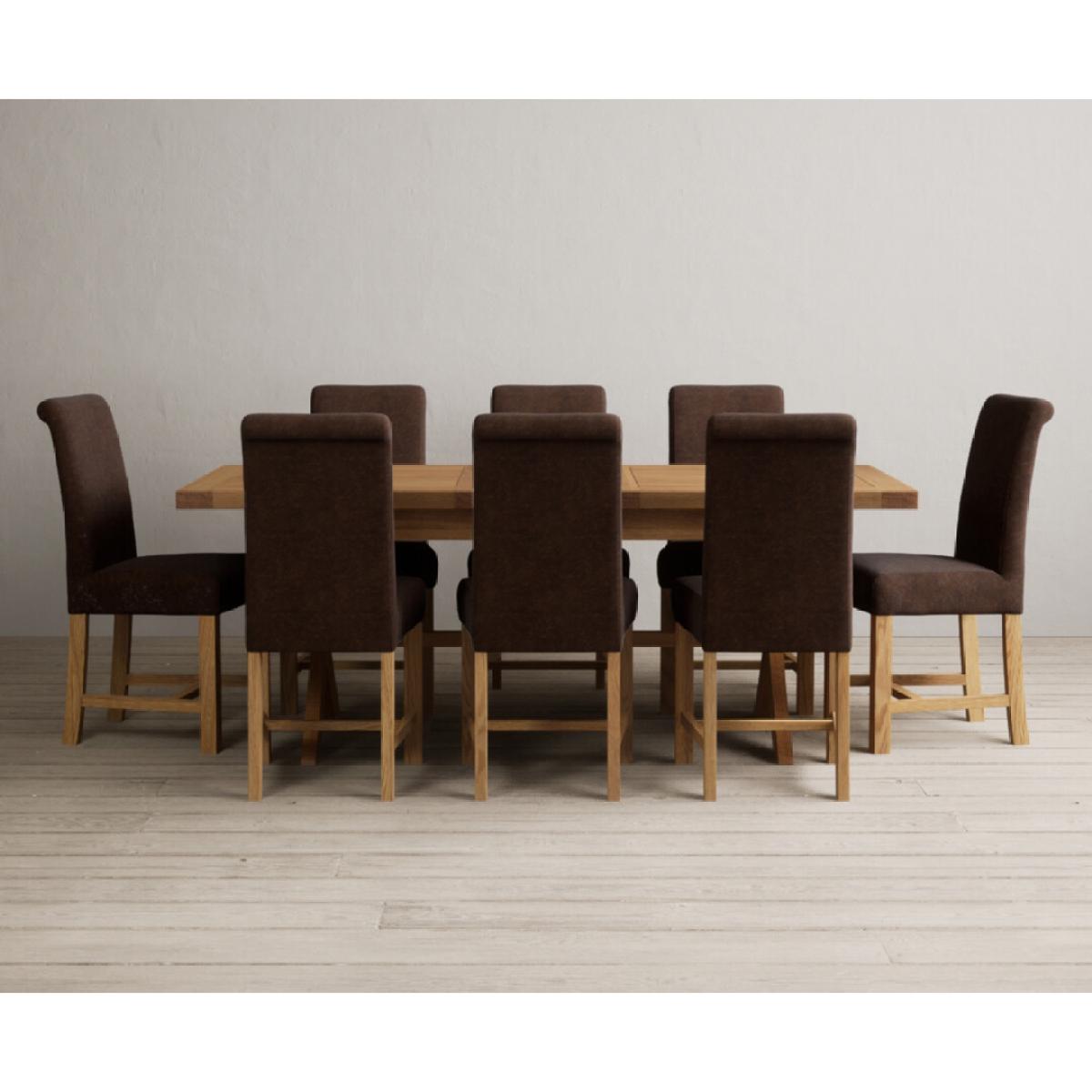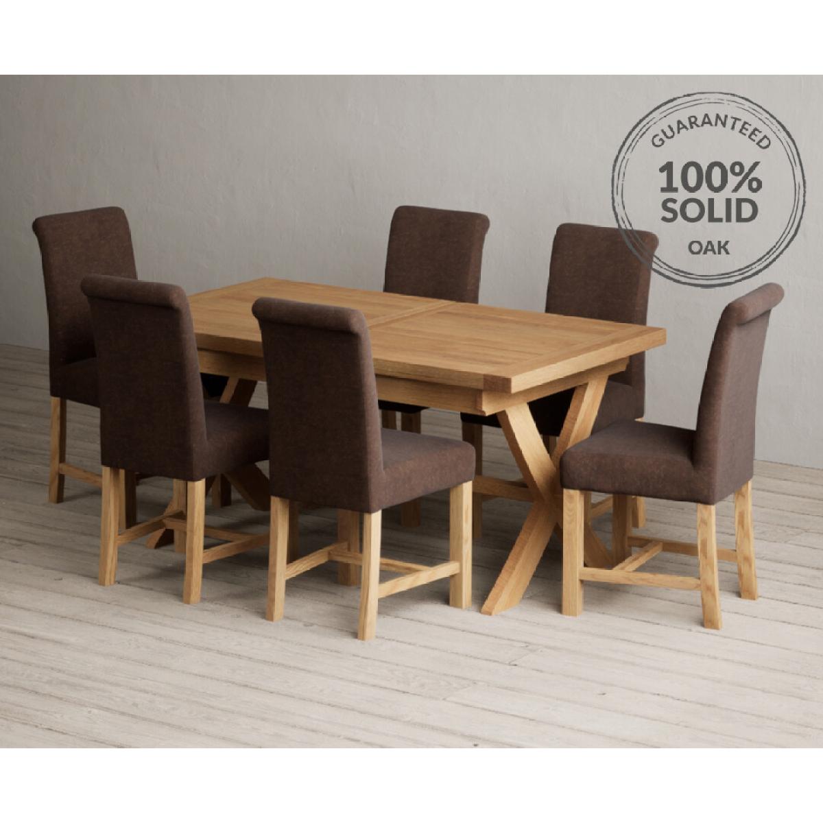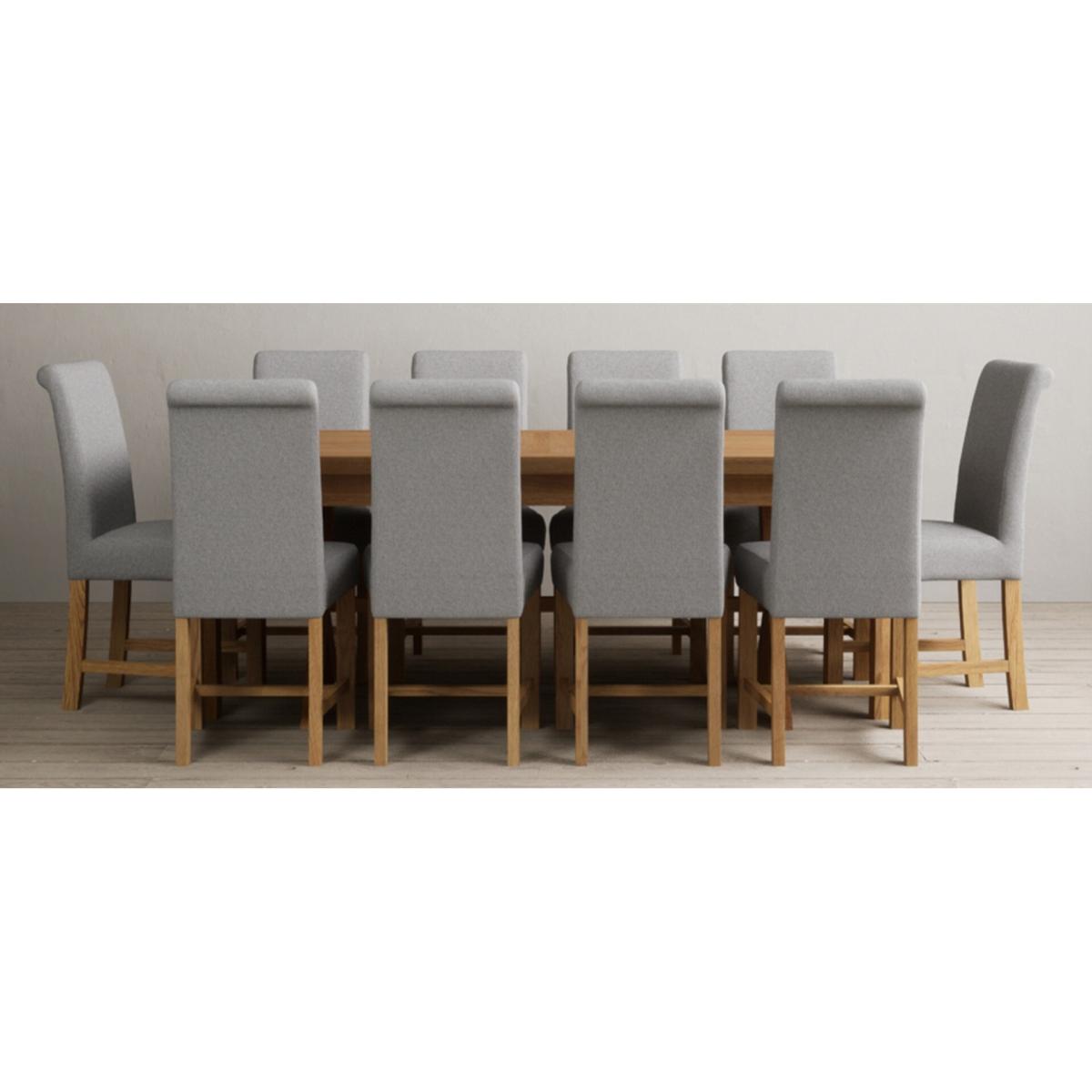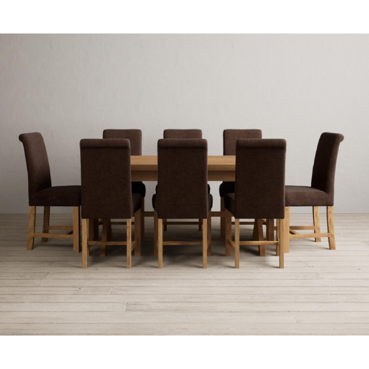 Extending Buckley 160cm Solid Oak Dining Table with 10 Brown Scroll Back Chairs