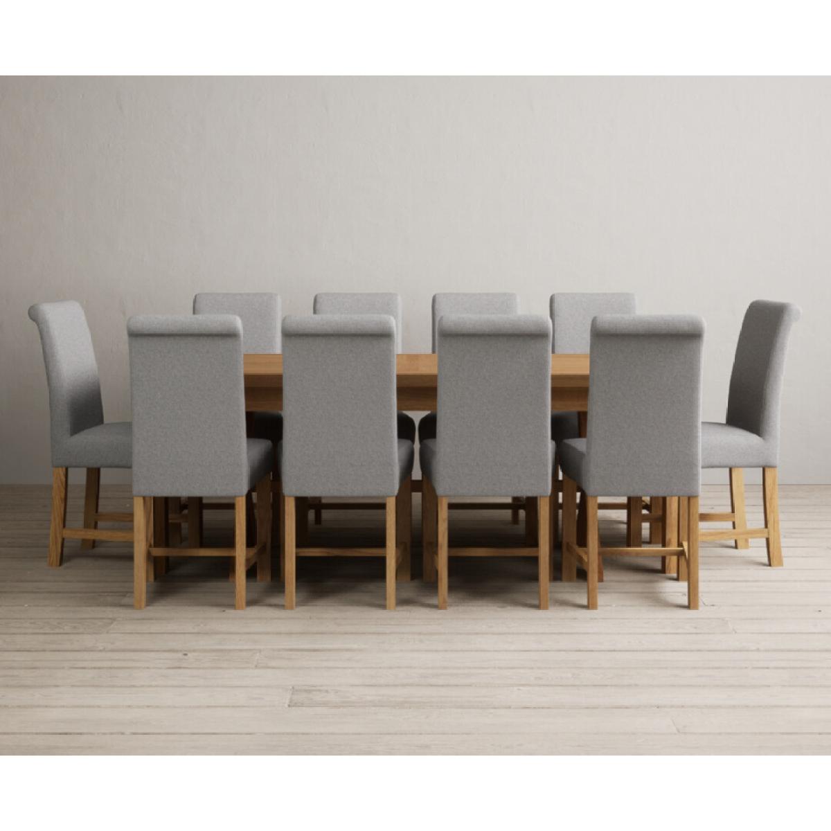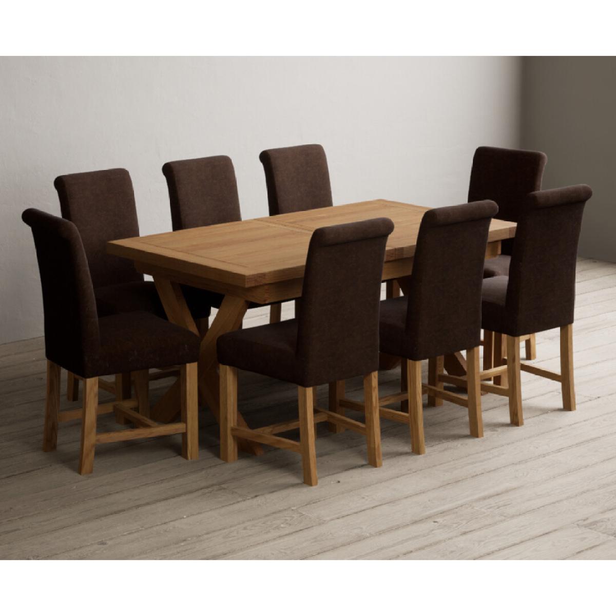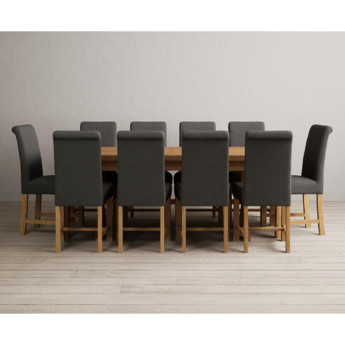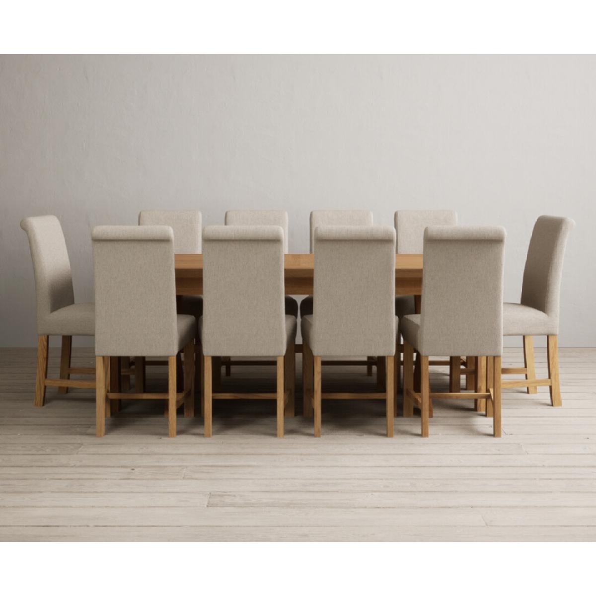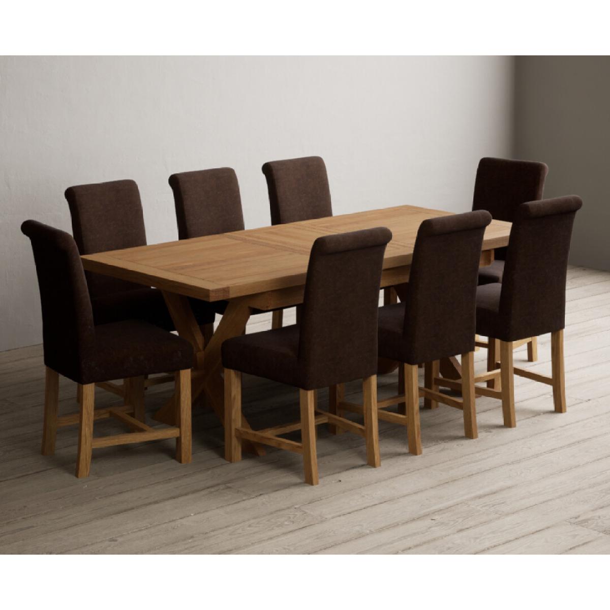 Extending Buckley 160cm Solid Oak Dining Table with 10 Brown Scroll Back Chairs