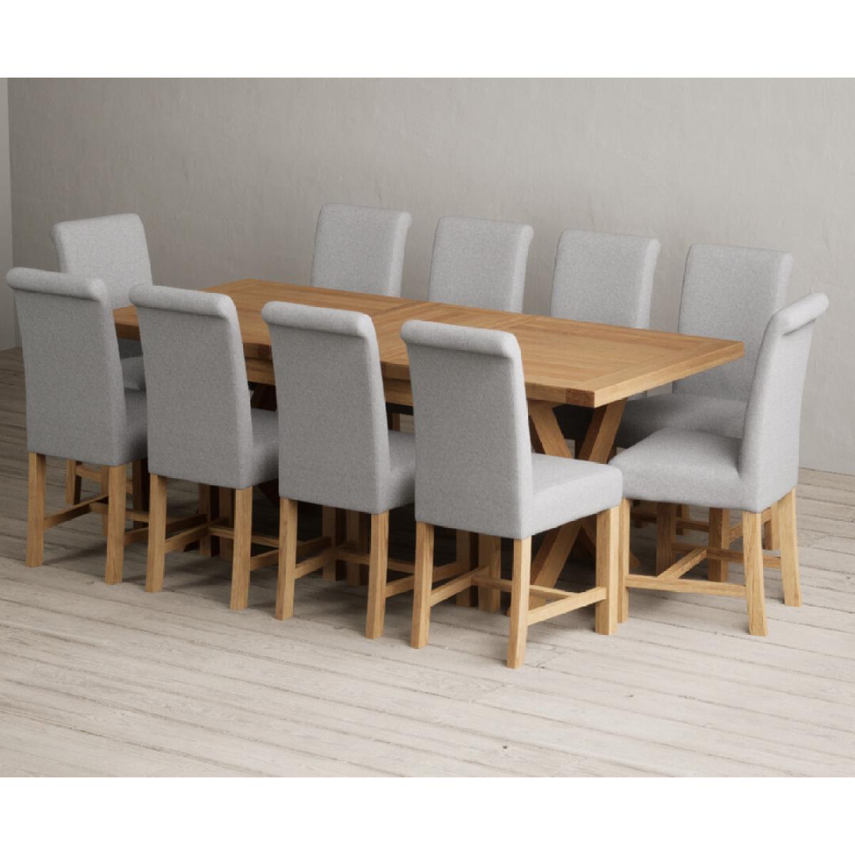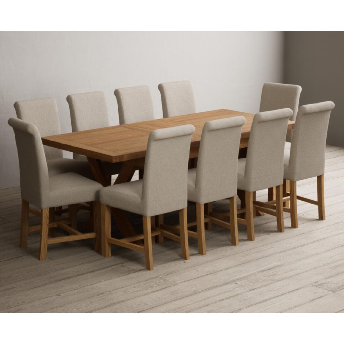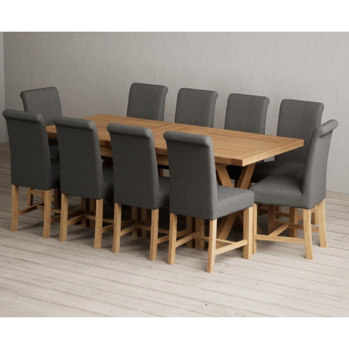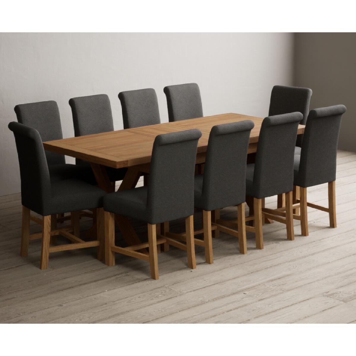 Extending Buckley 160cm Solid Oak Dining Table with 10 Brown Scroll Back Chairs