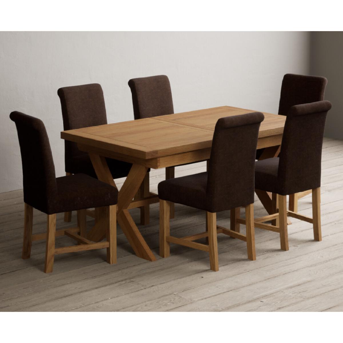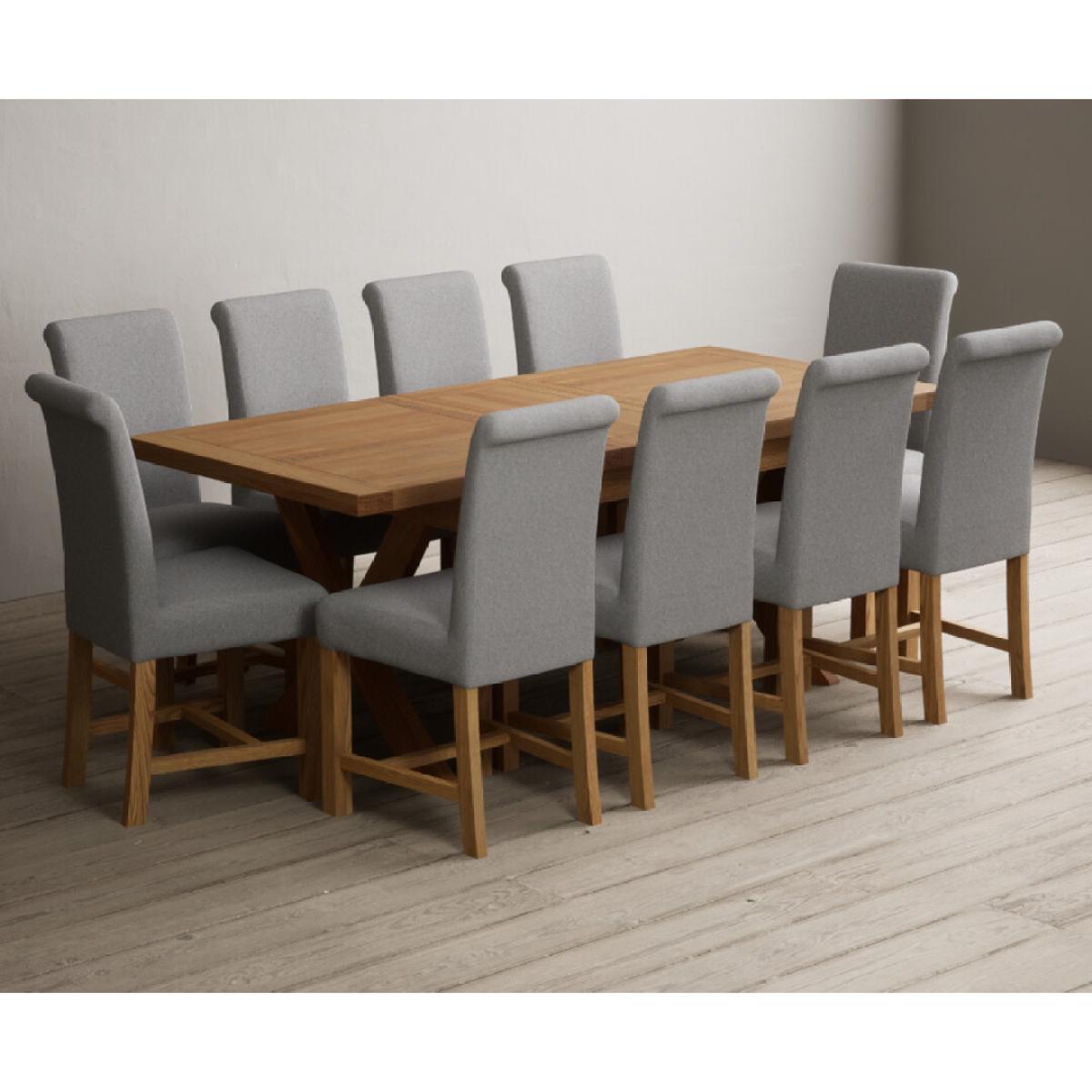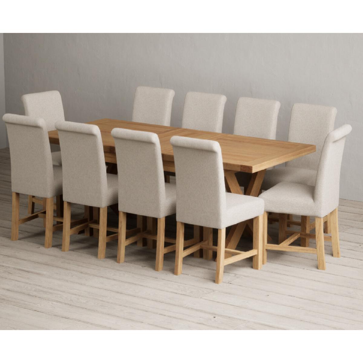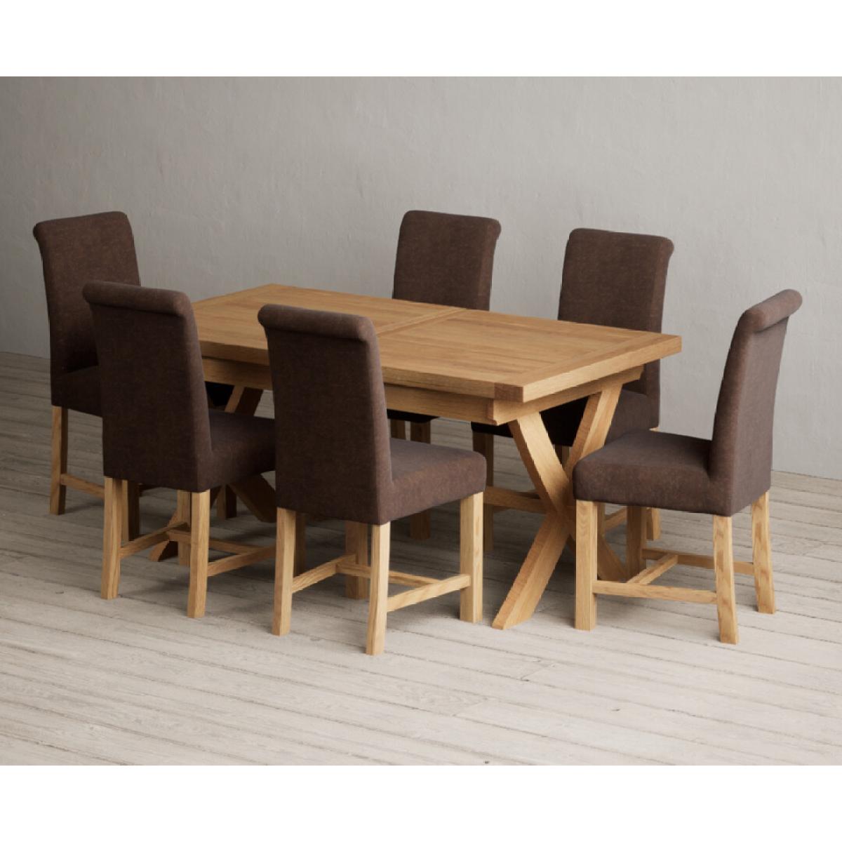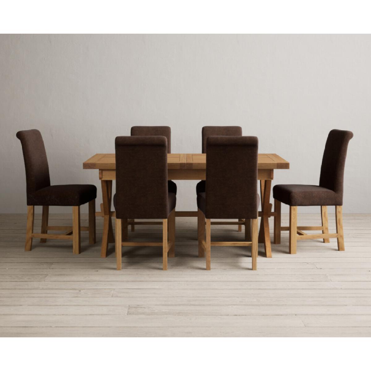 Extending Buckley 160cm Solid Oak Dining Table with 10 Brown Scroll Back Chairs