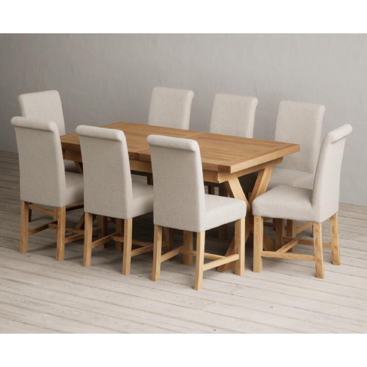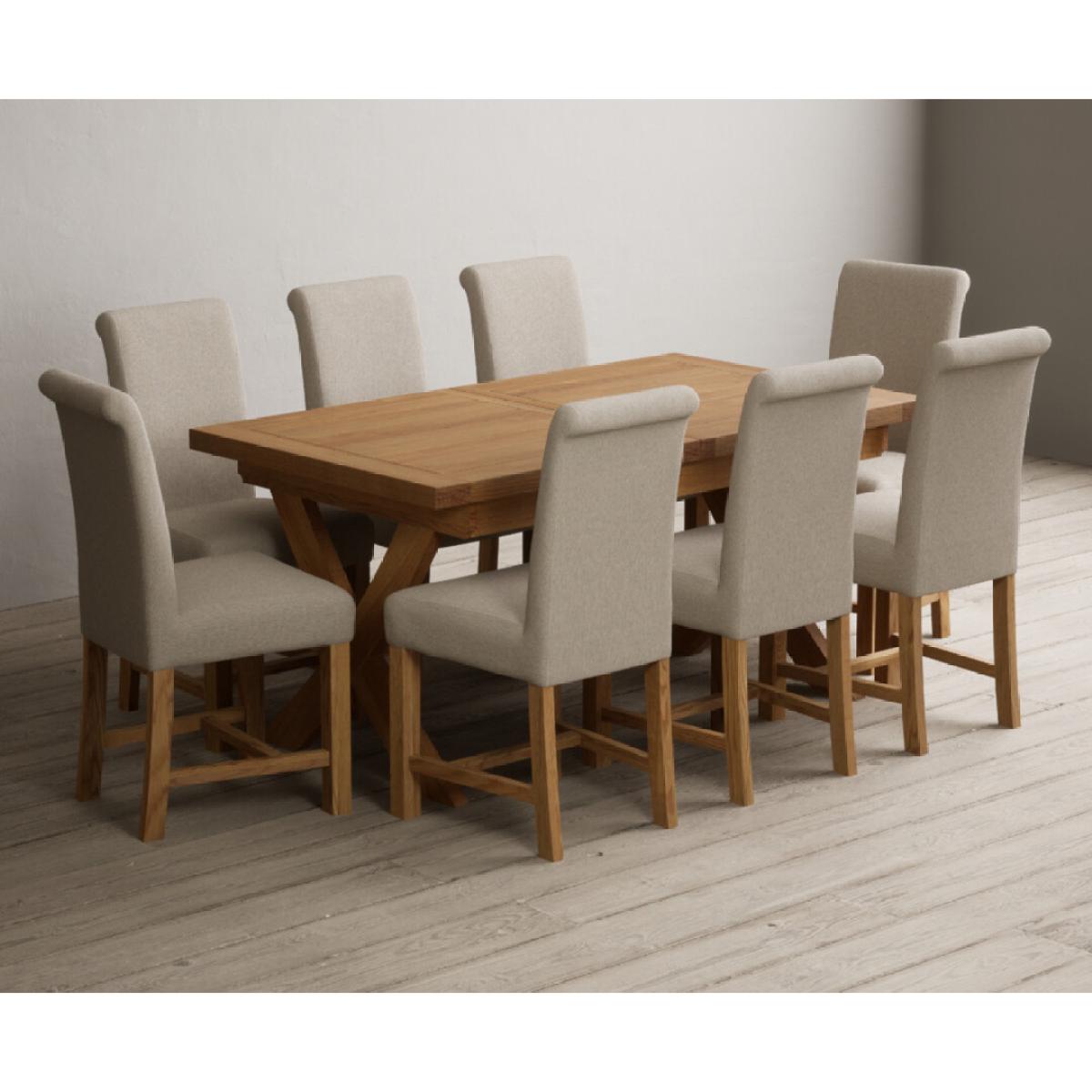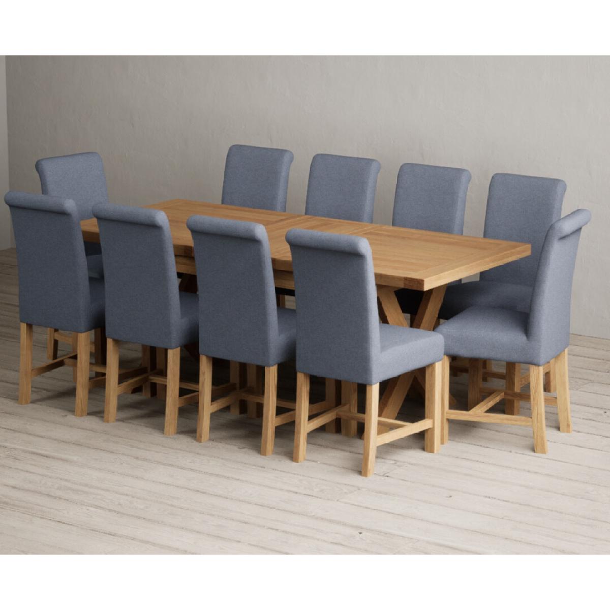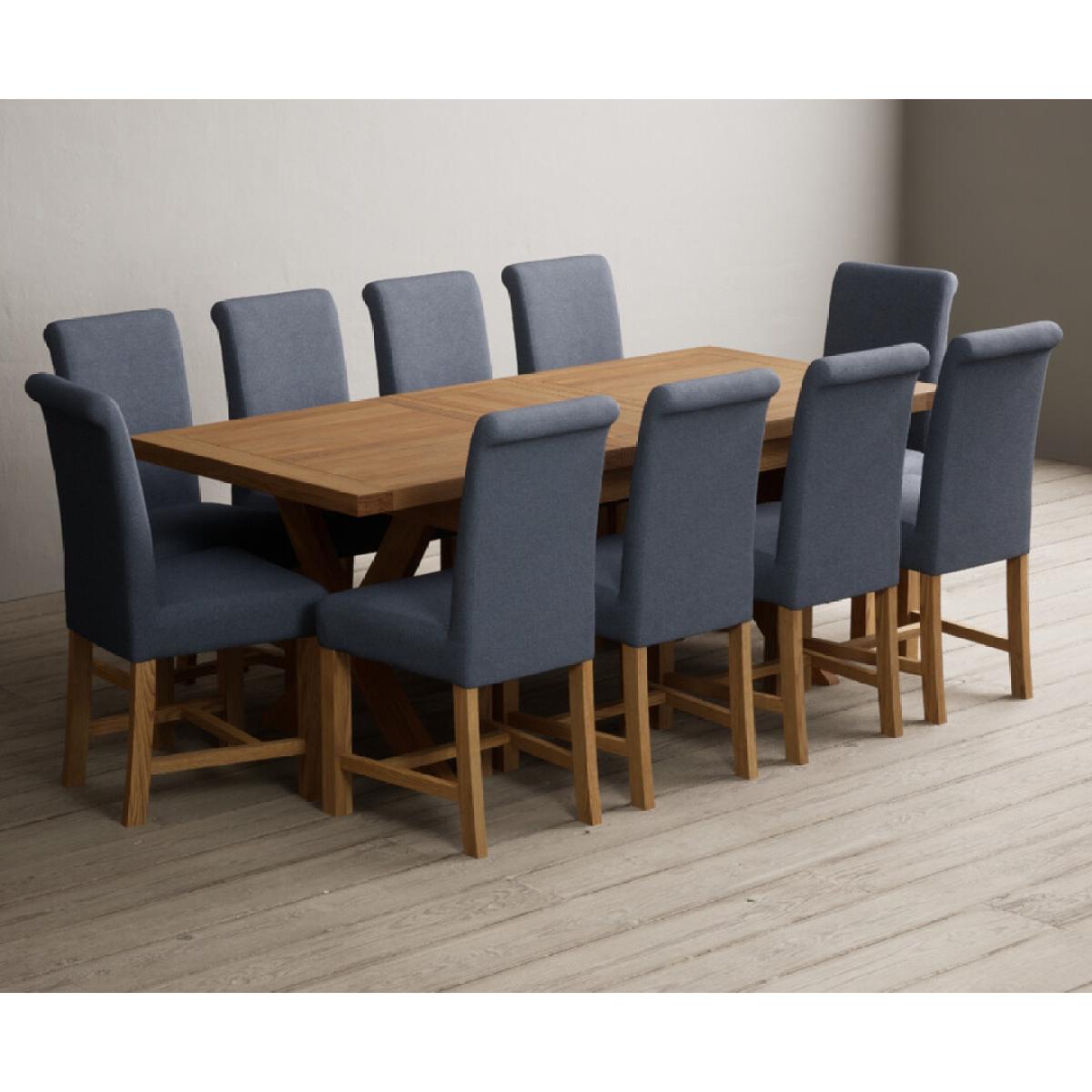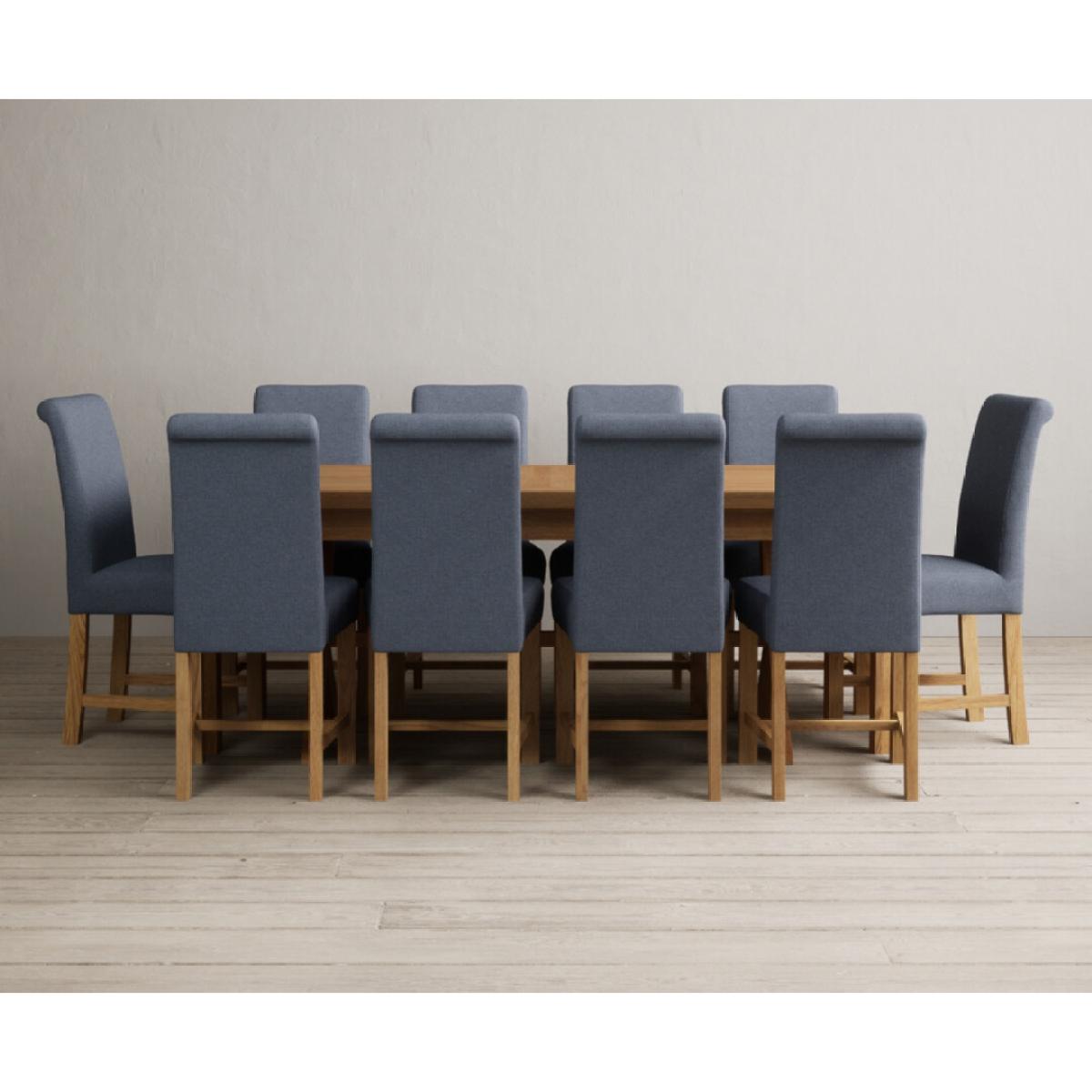 Extending Buckley 160cm Solid Oak Dining Table with 10 Brown Scroll Back Chairs