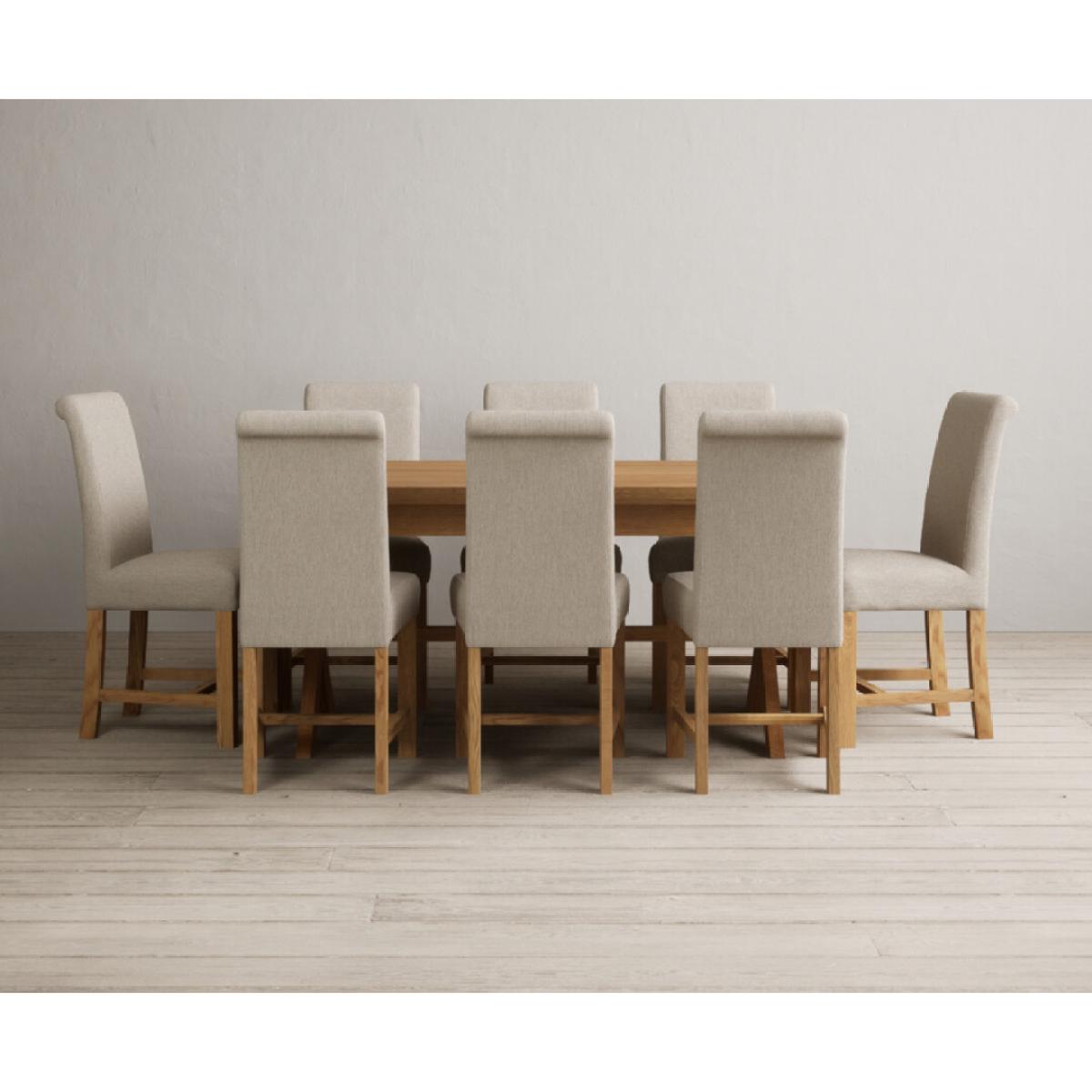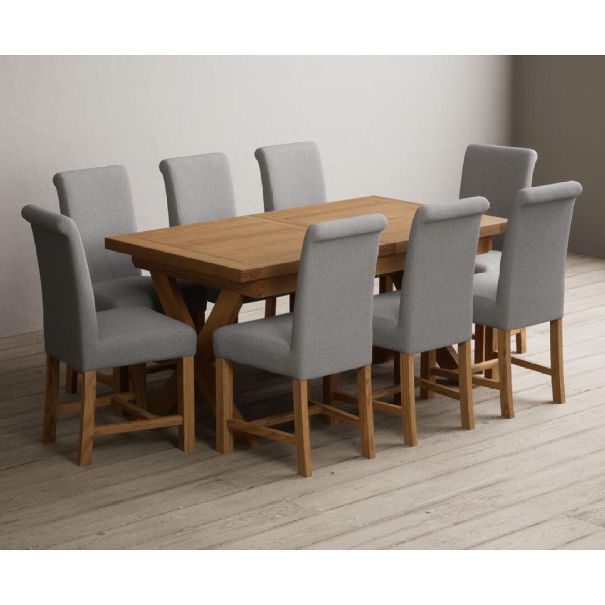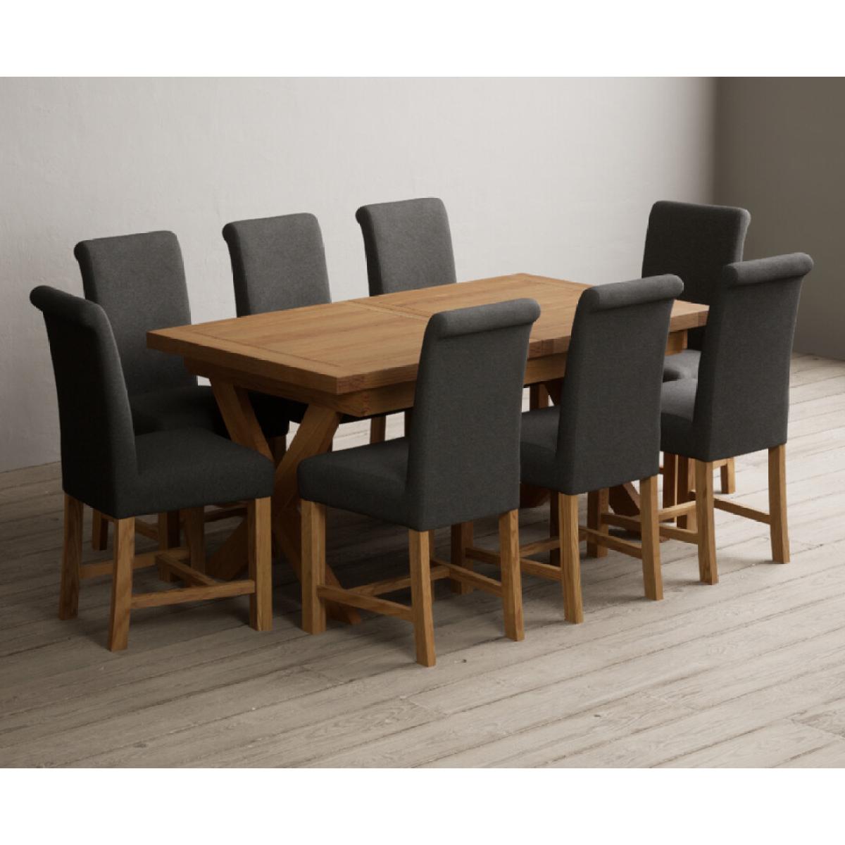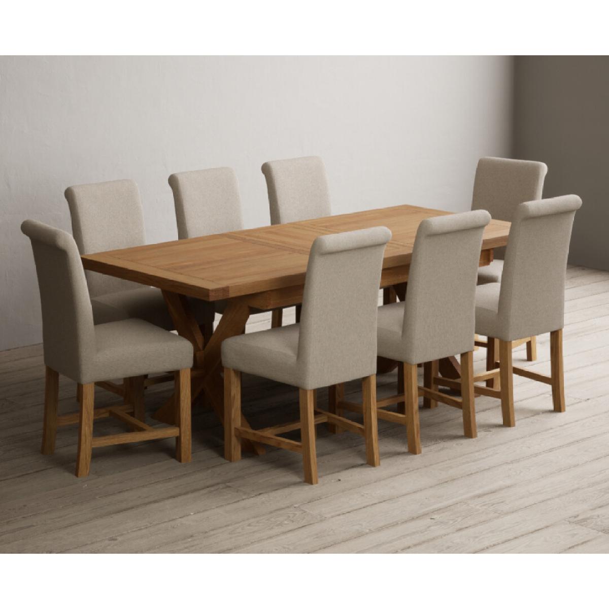 Extending Buckley 160cm Solid Oak Dining Table with 10 Brown Scroll Back Chairs