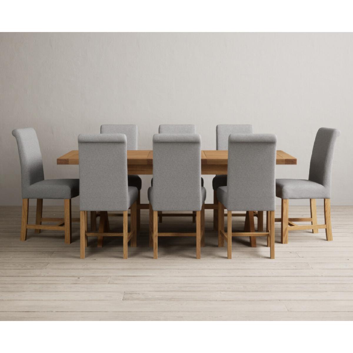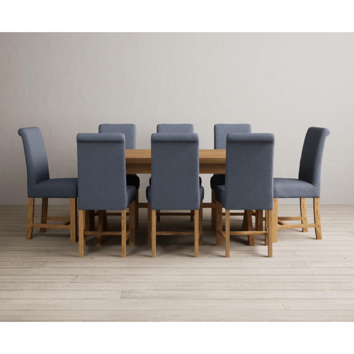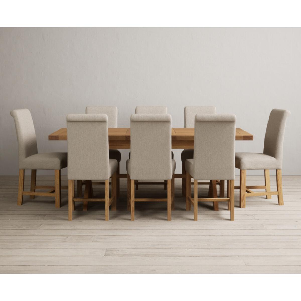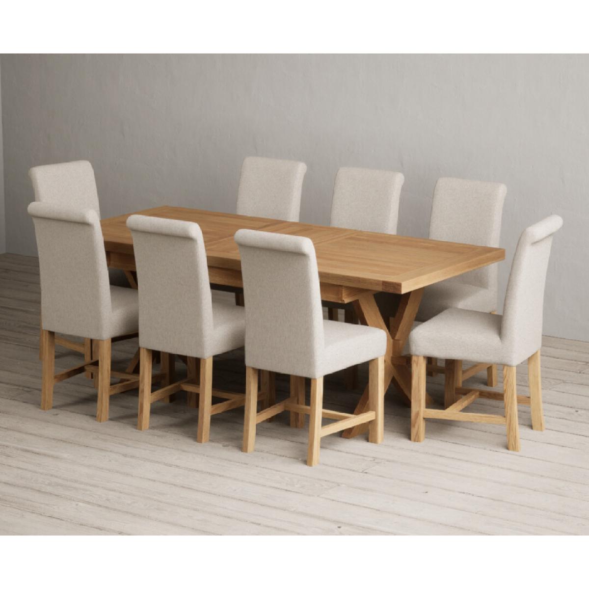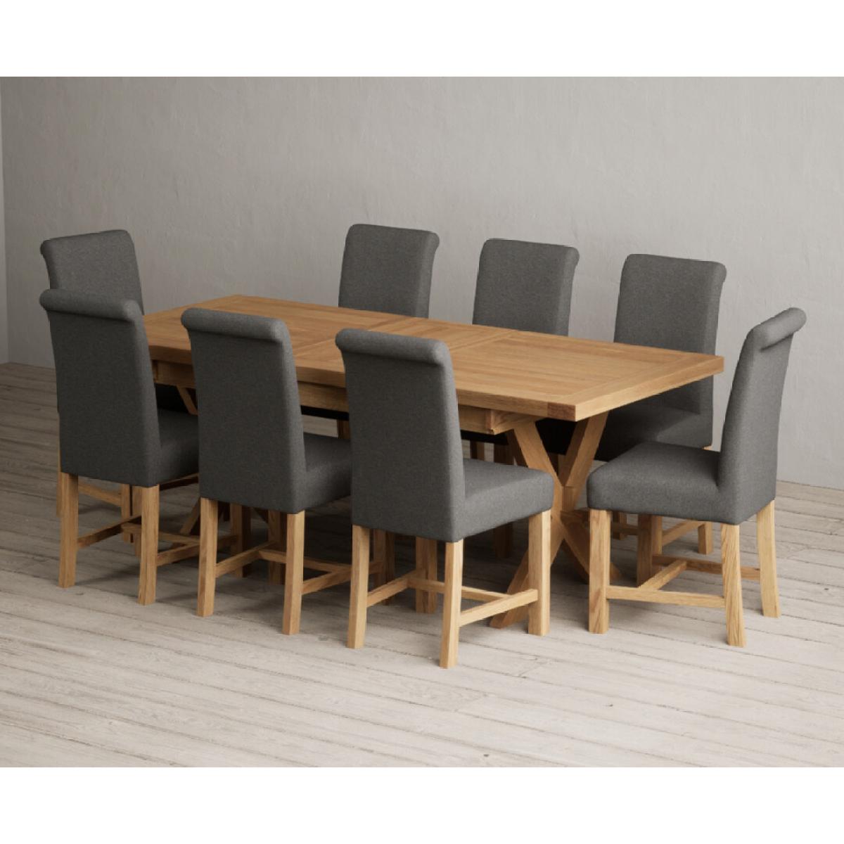 Extending Buckley 160cm Solid Oak Dining Table with 10 Brown Scroll Back Chairs