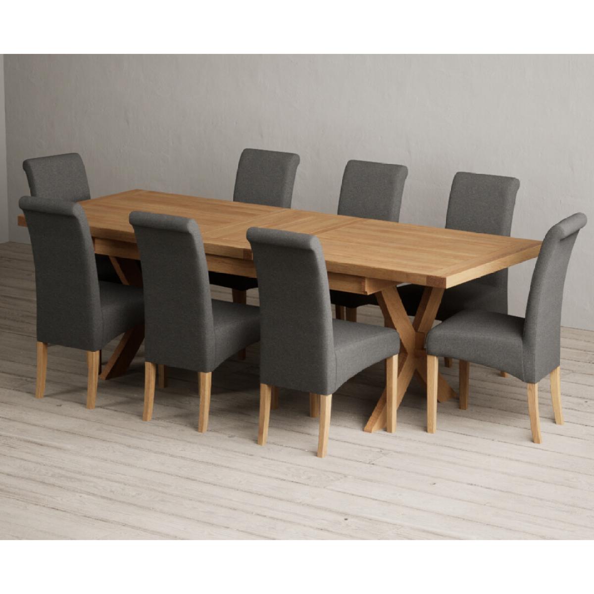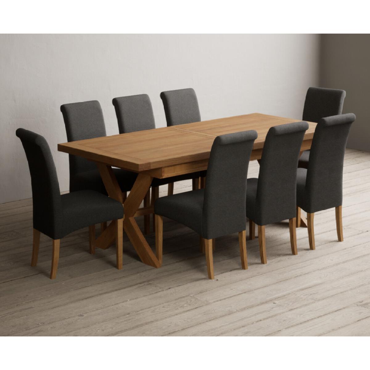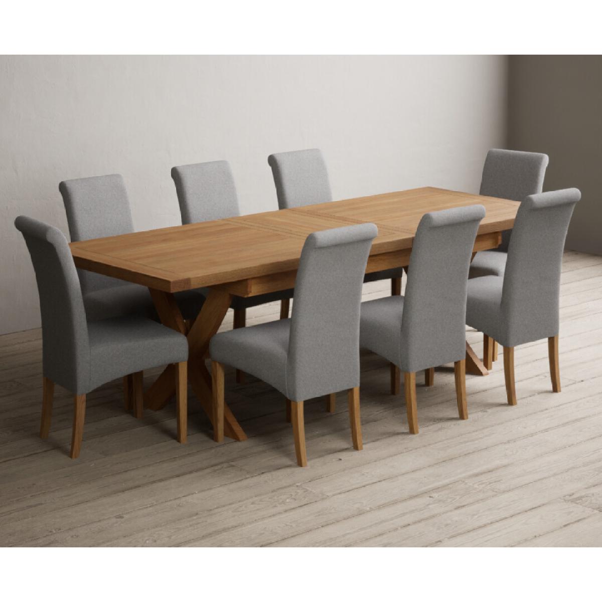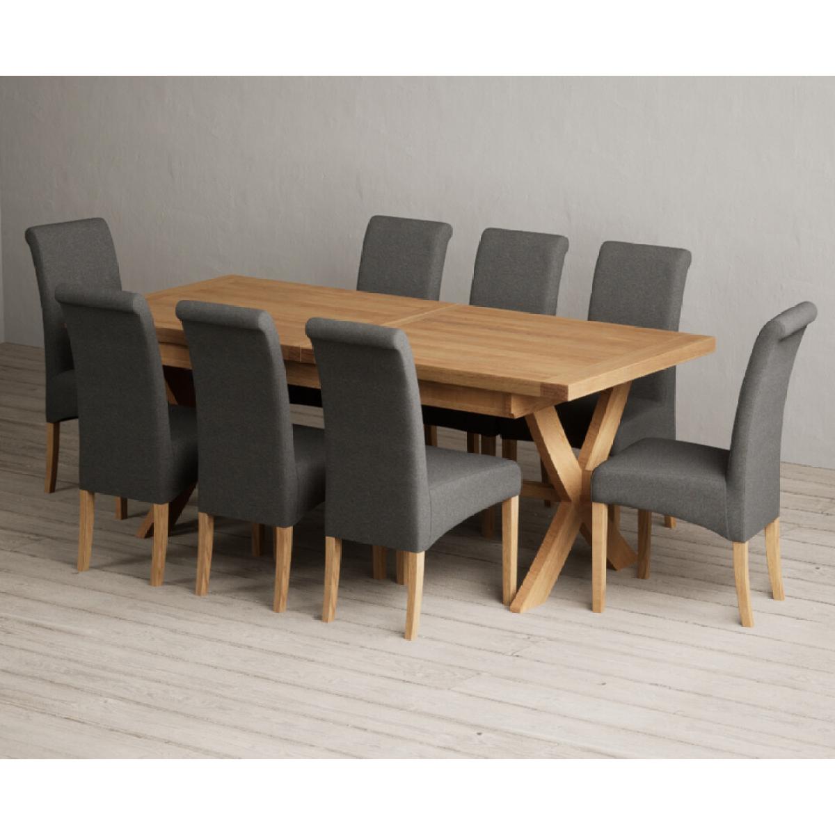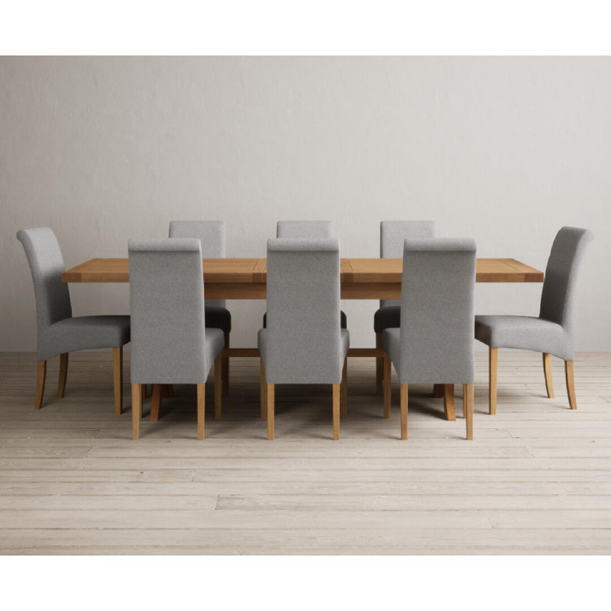 Extending Buckley 200cm Solid Oak Dining Table with 8 Grey Scroll Back Chairs