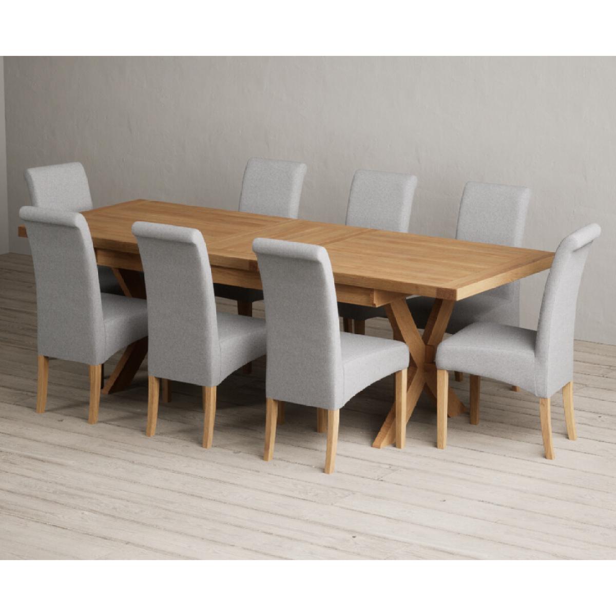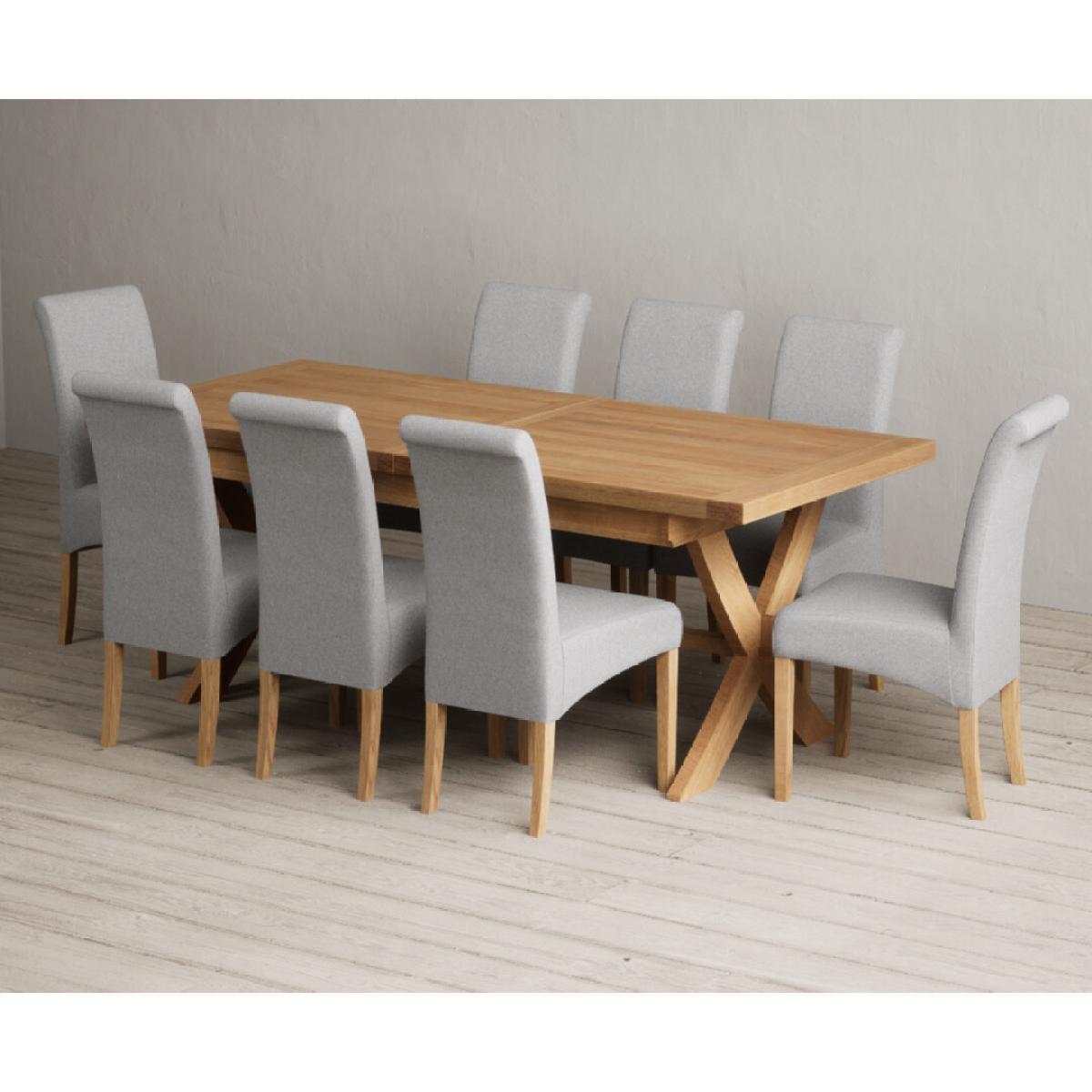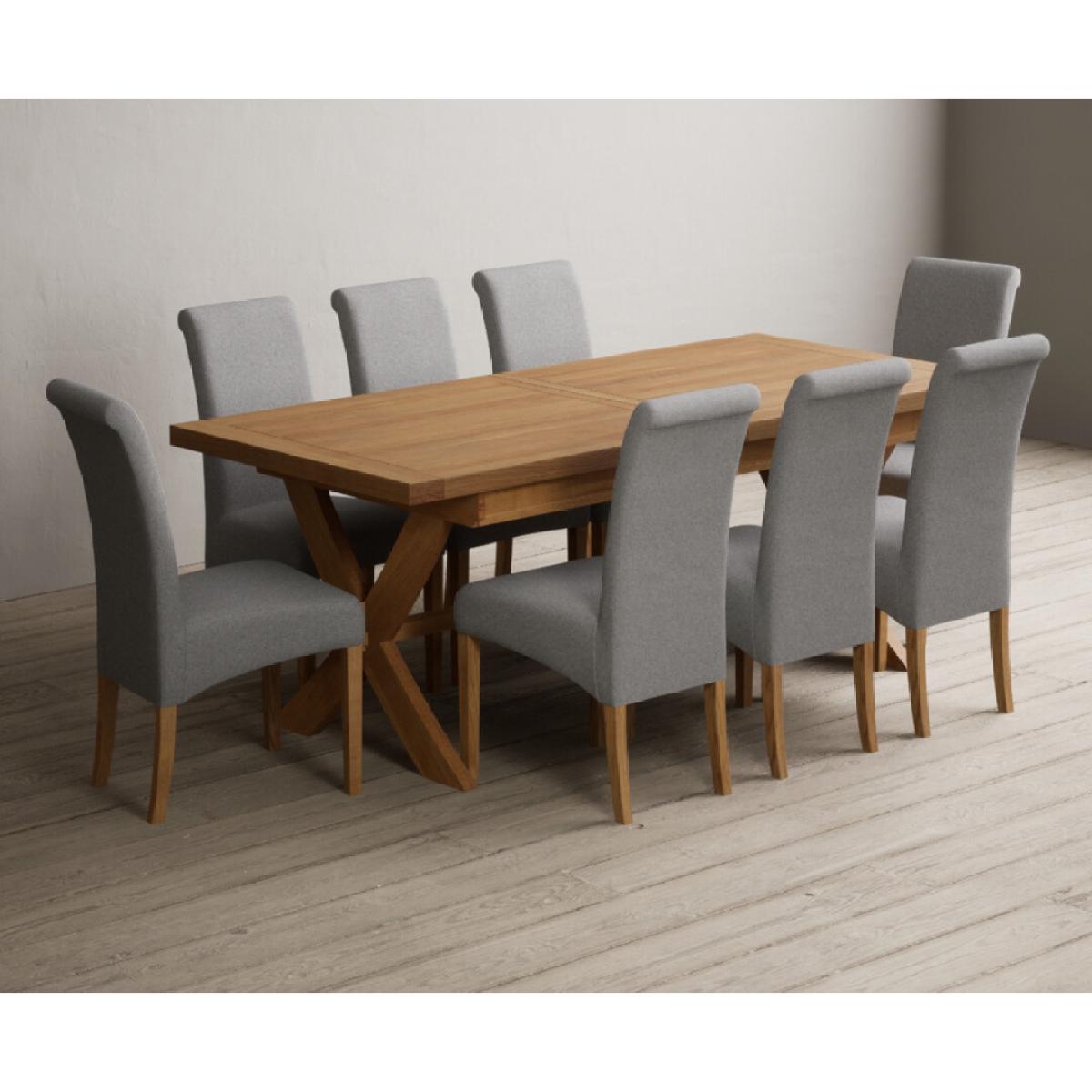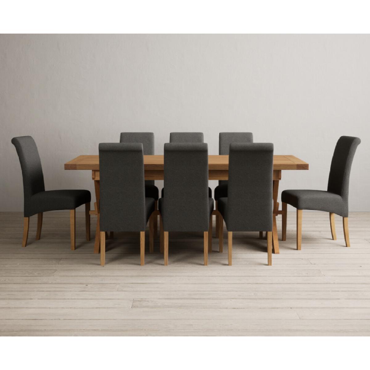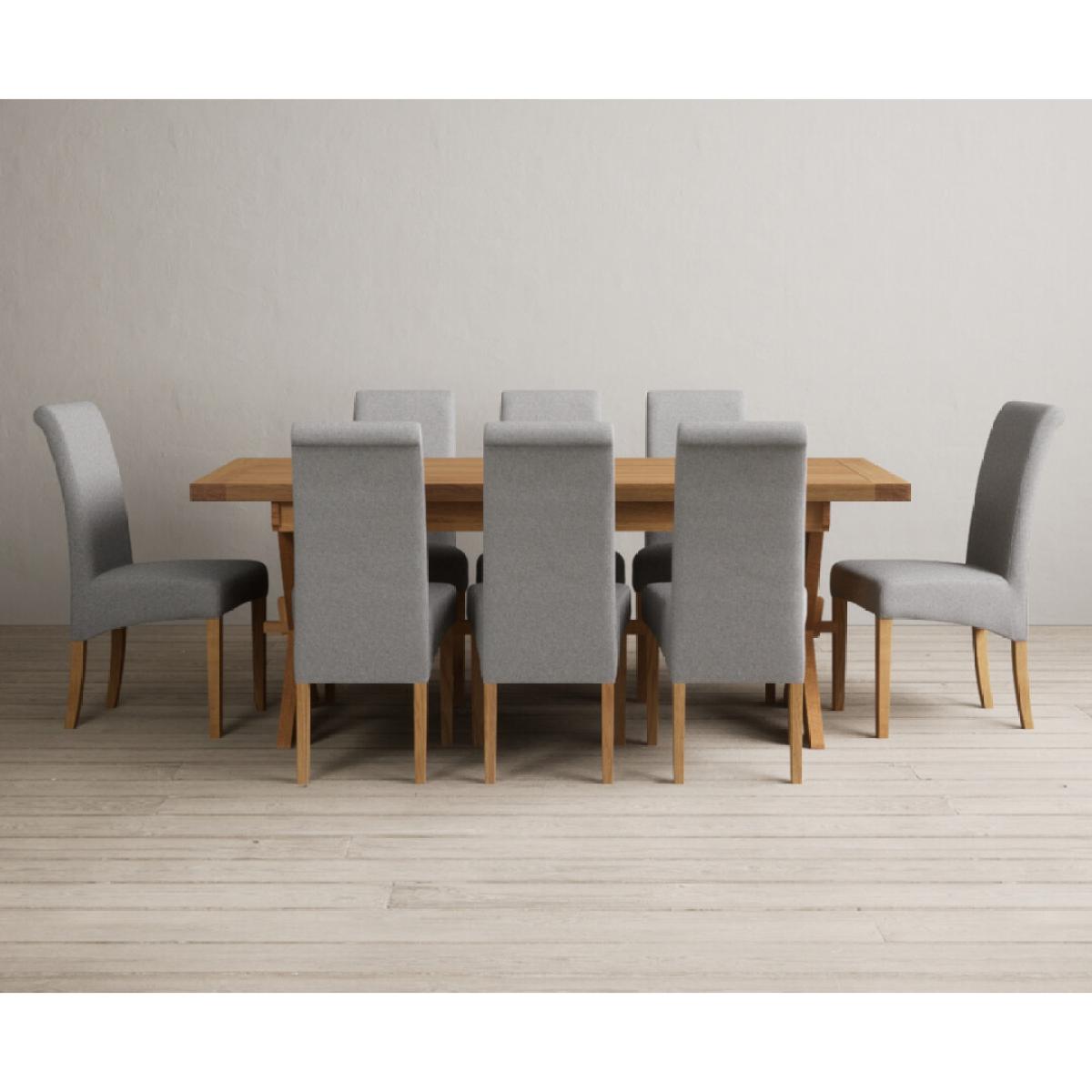 Extending Buckley 200cm Solid Oak Dining Table with 8 Grey Scroll Back Chairs