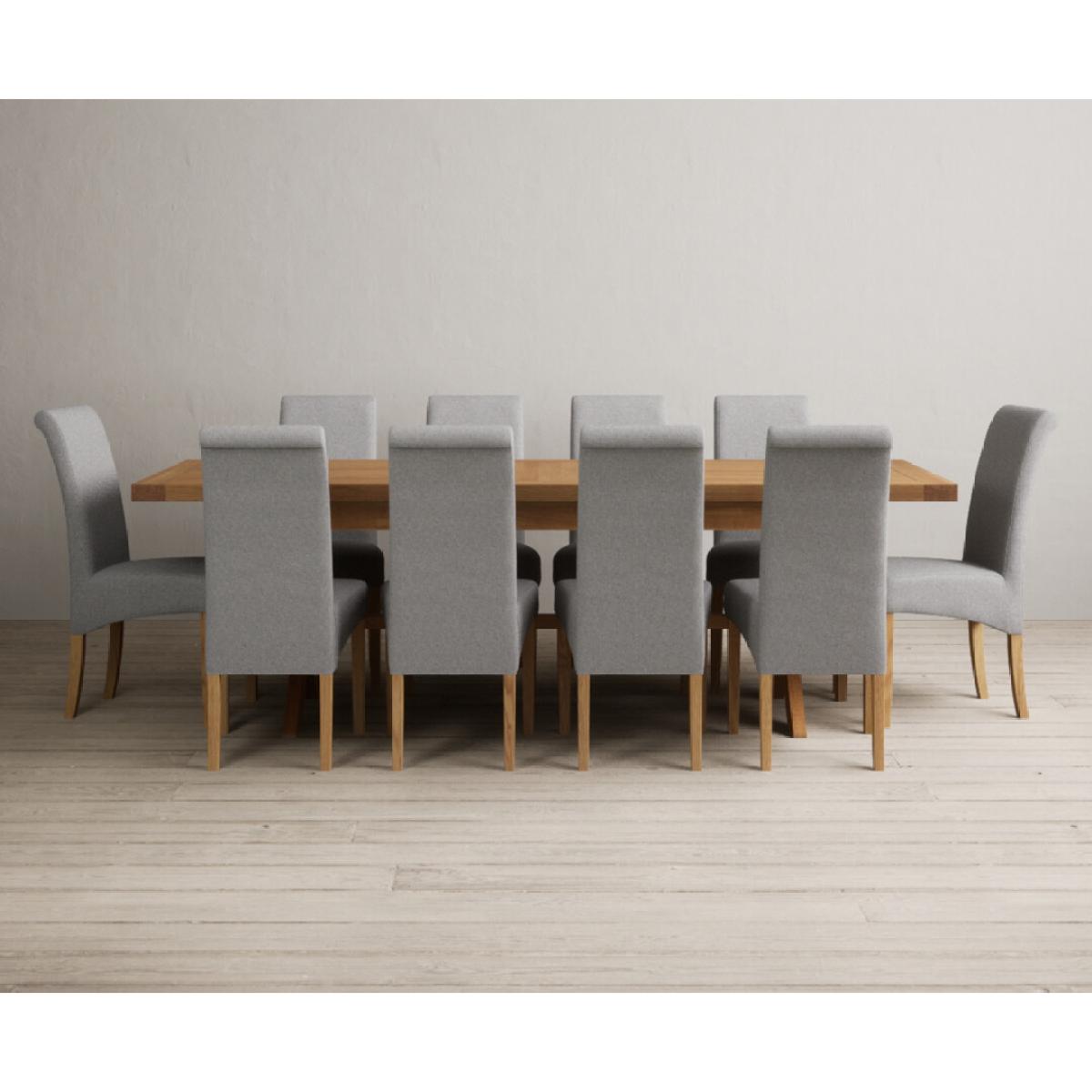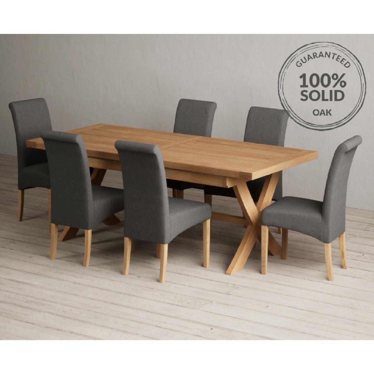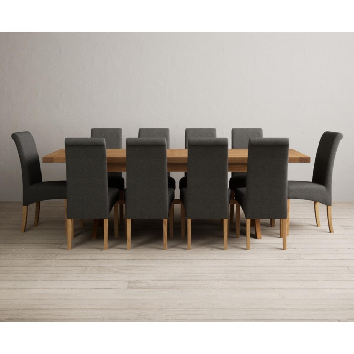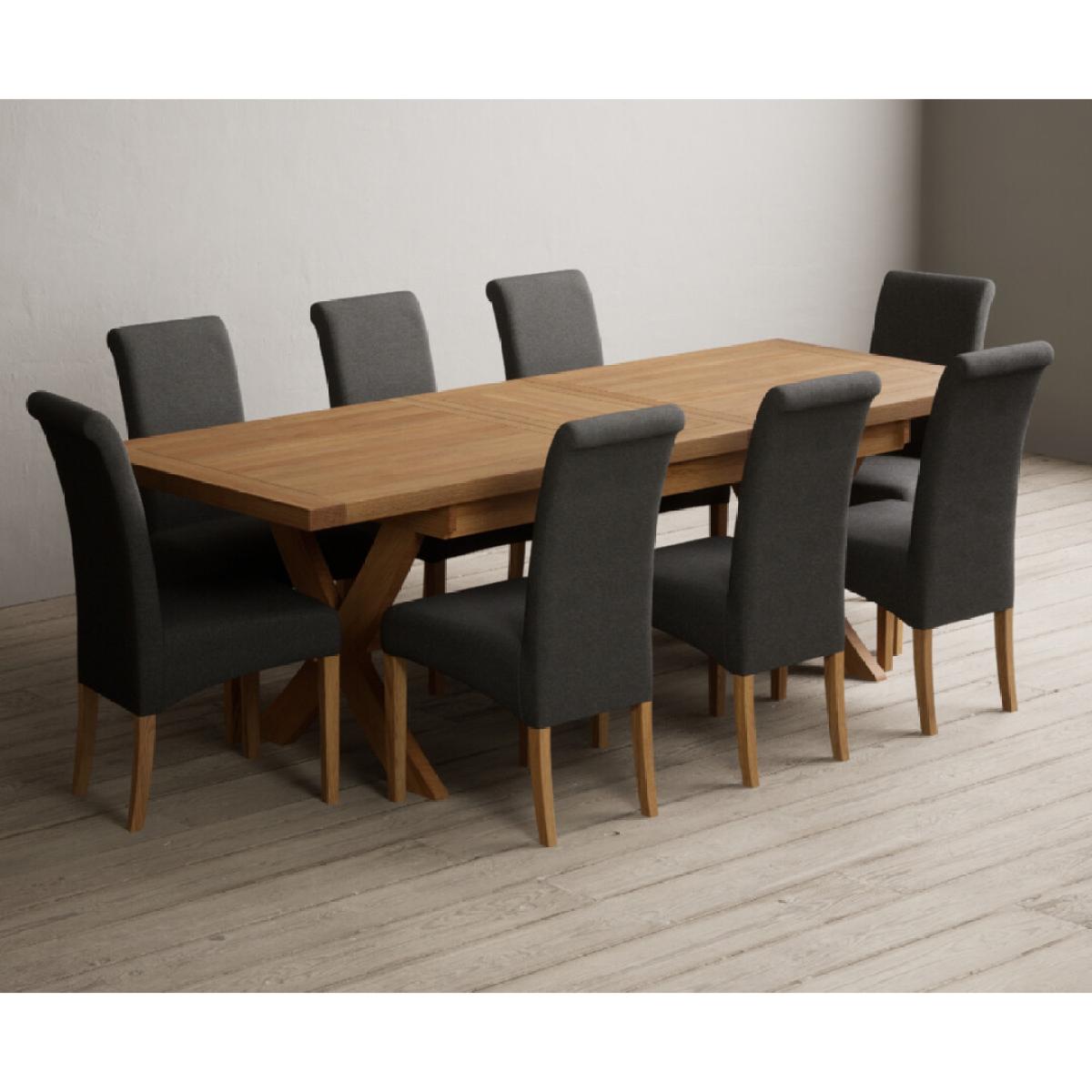 Extending Buckley 200cm Solid Oak Dining Table with 8 Grey Scroll Back Chairs