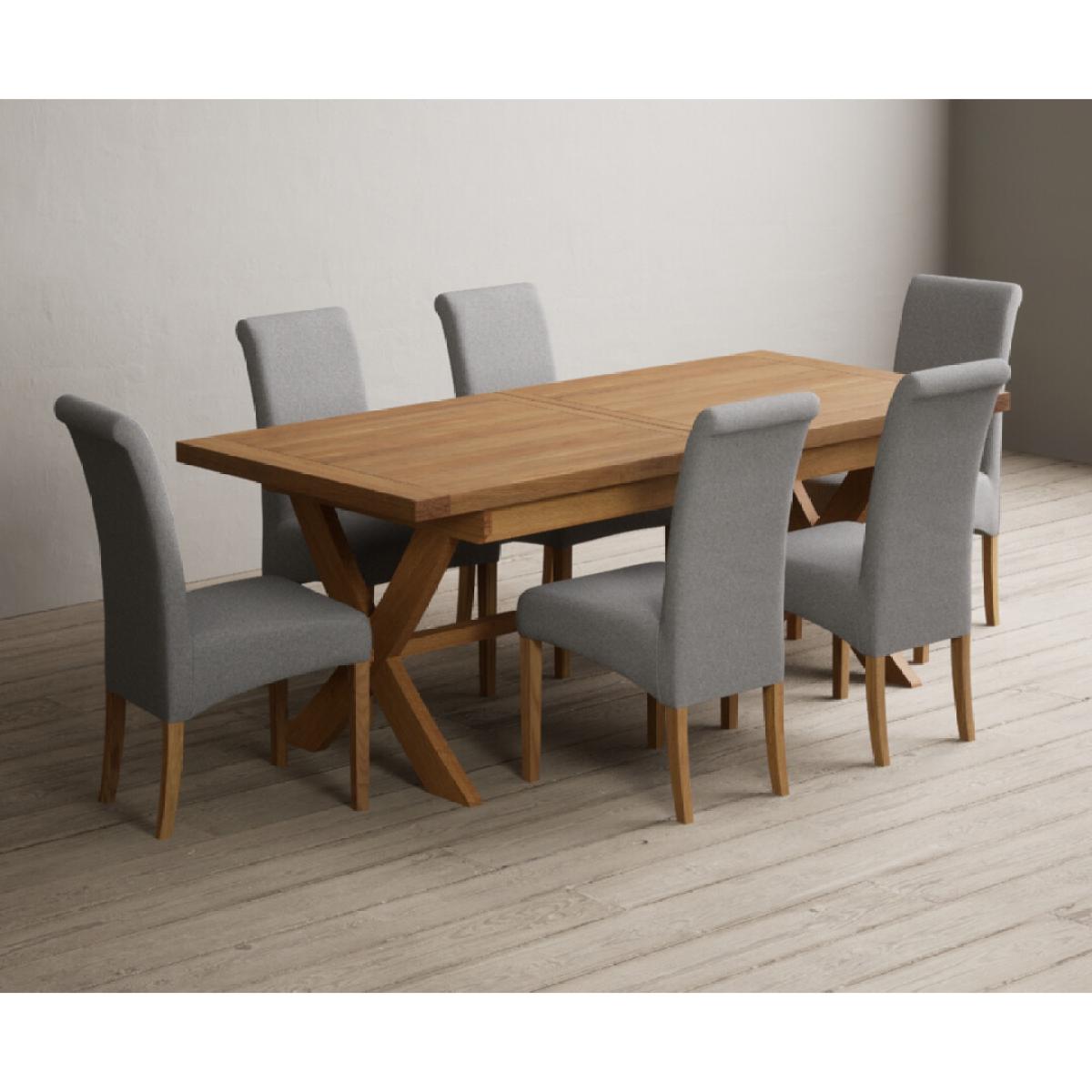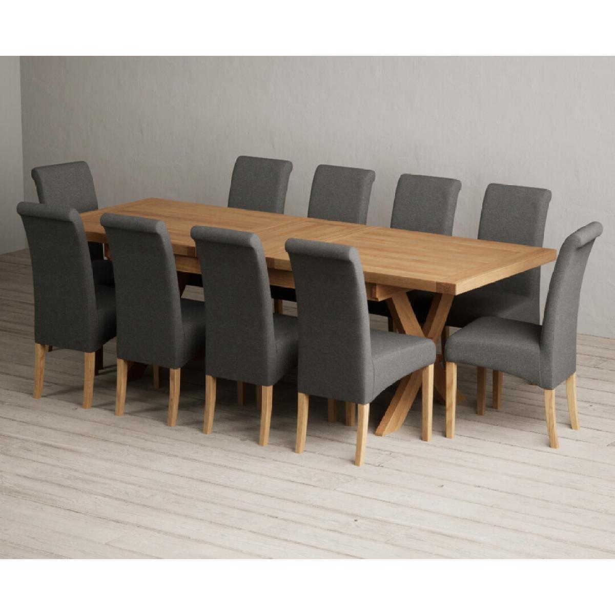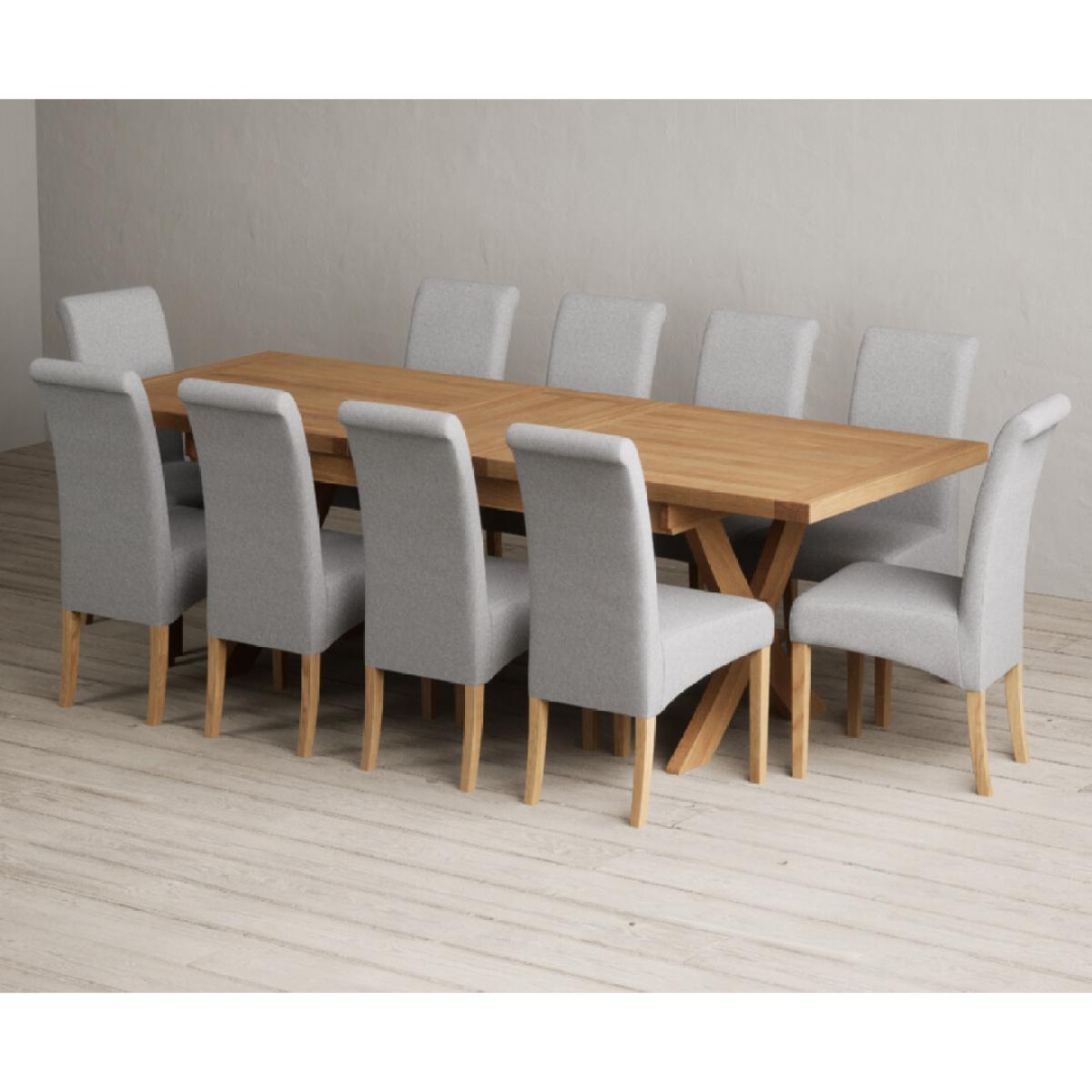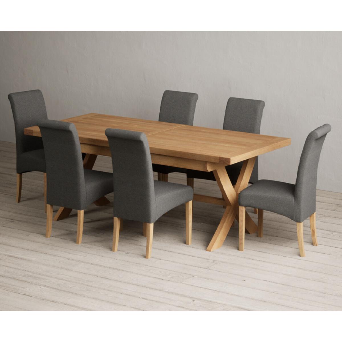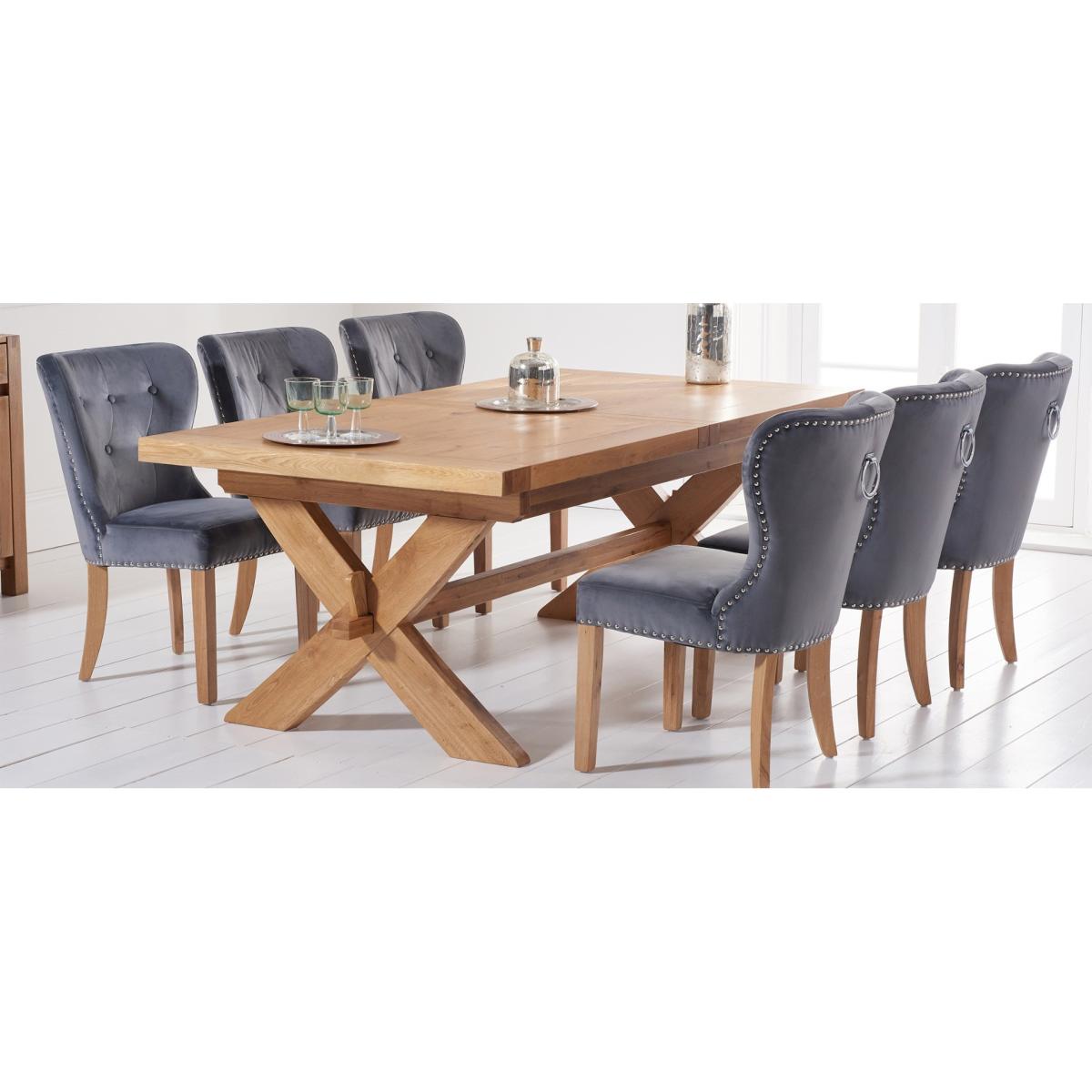 Extending Buckley 200cm Solid Oak Dining Table with 8 Grey Scroll Back Chairs