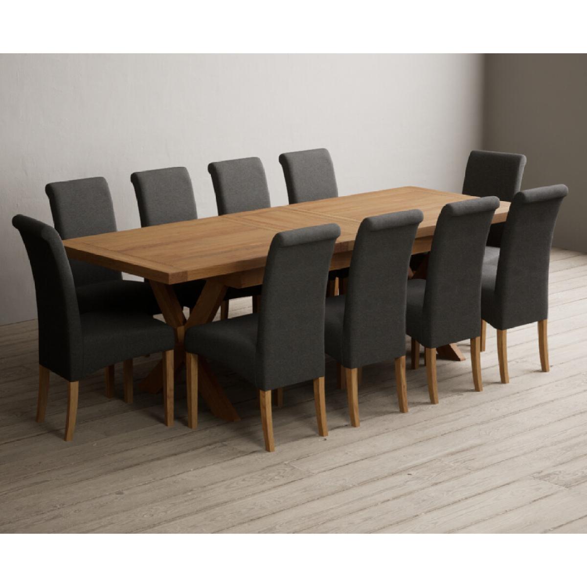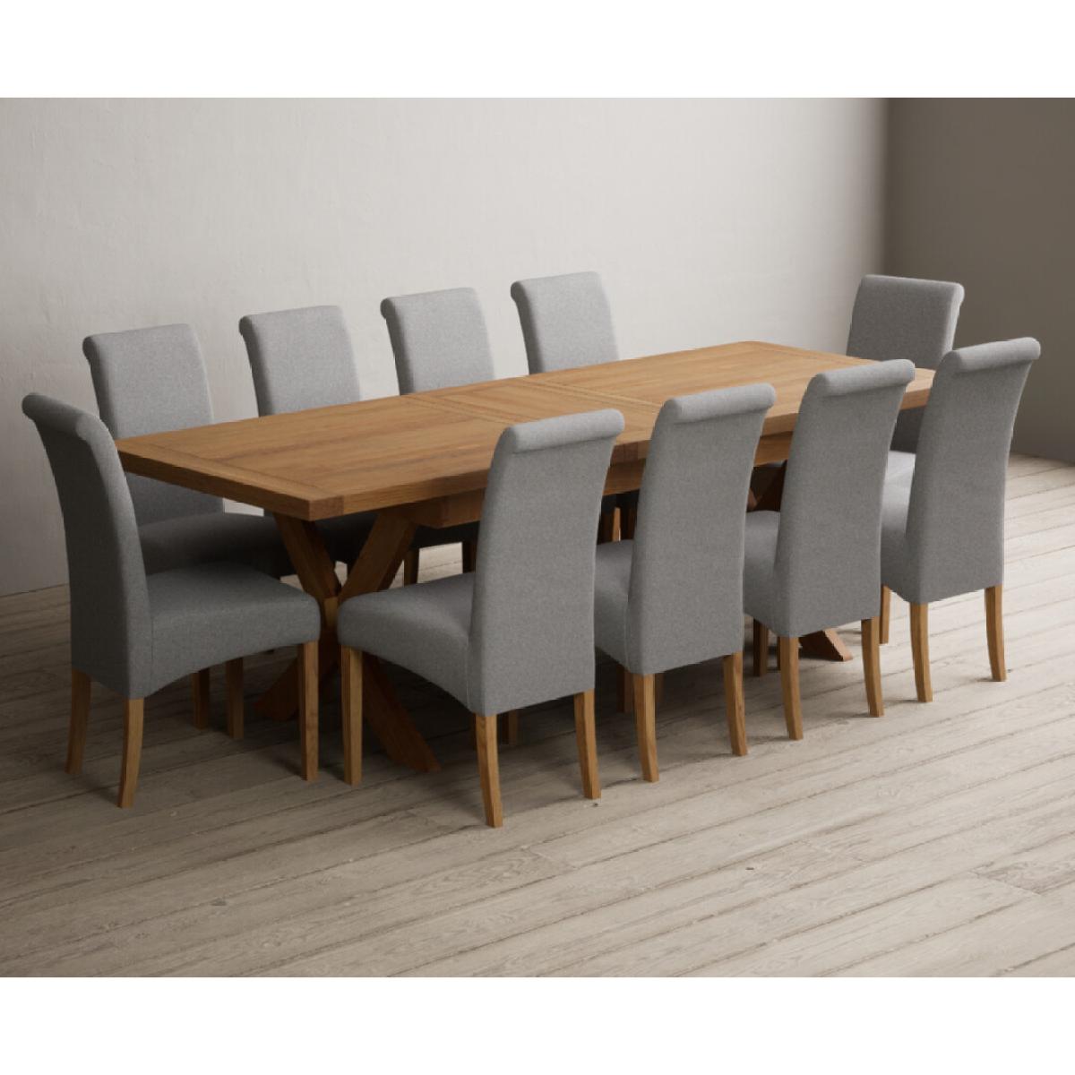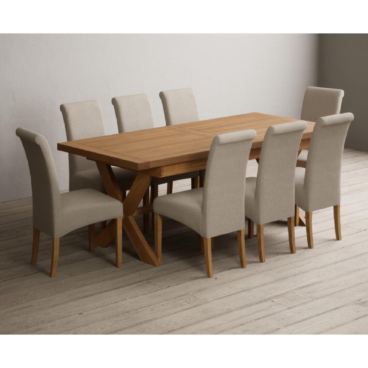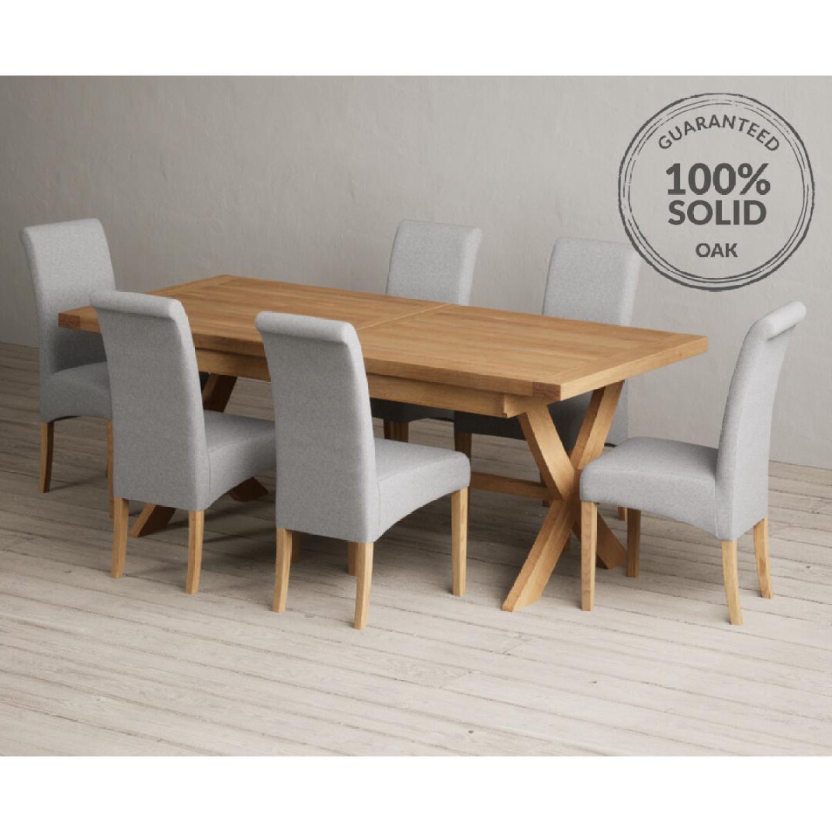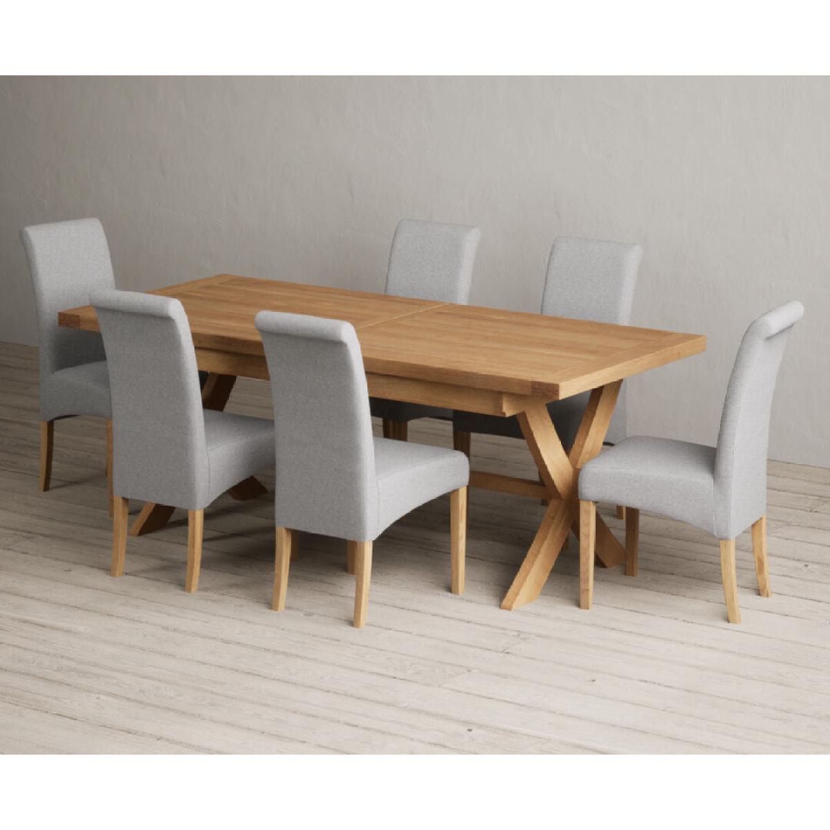 Extending Buckley 200cm Solid Oak Dining Table with 8 Grey Scroll Back Chairs