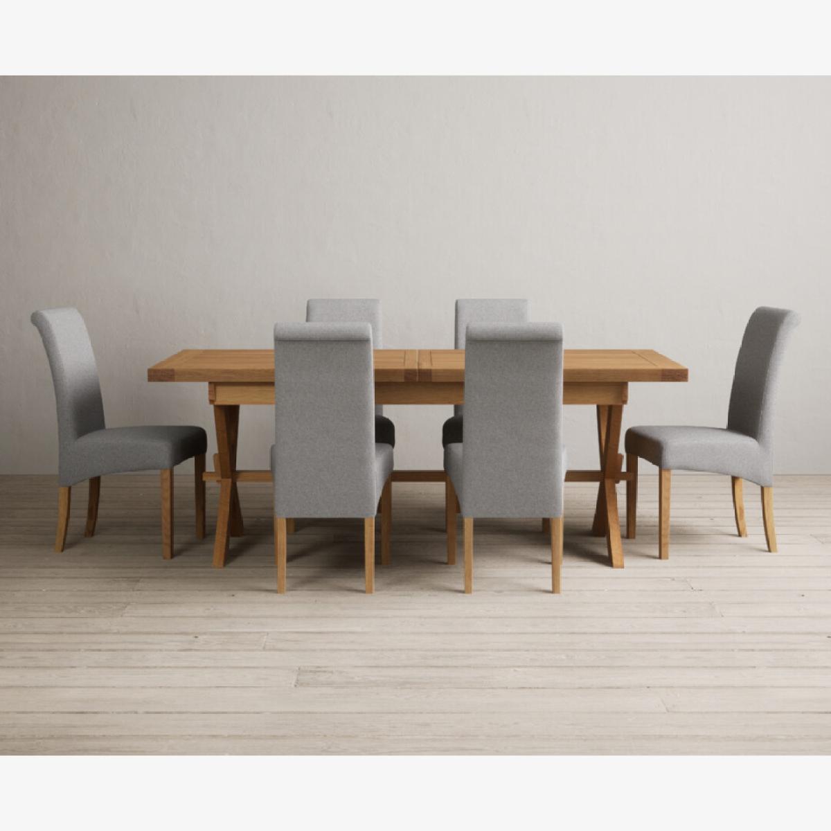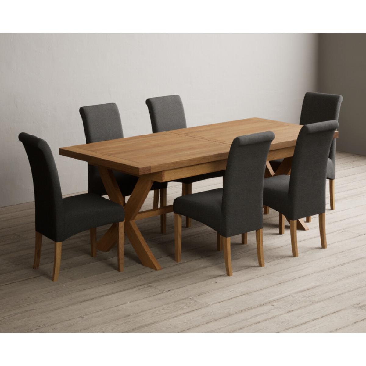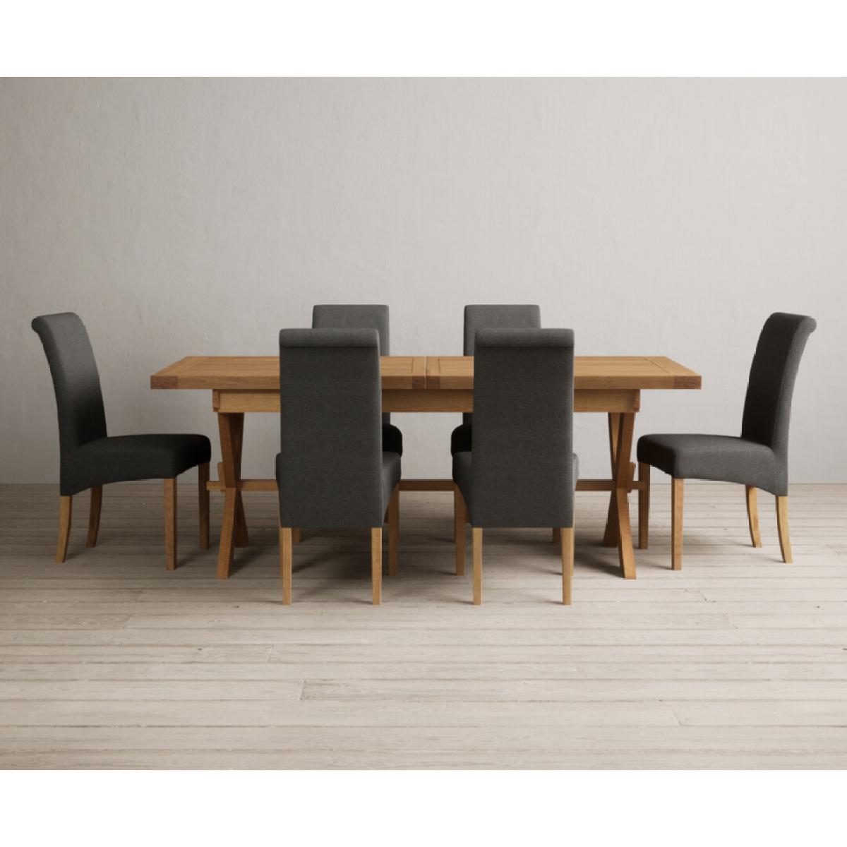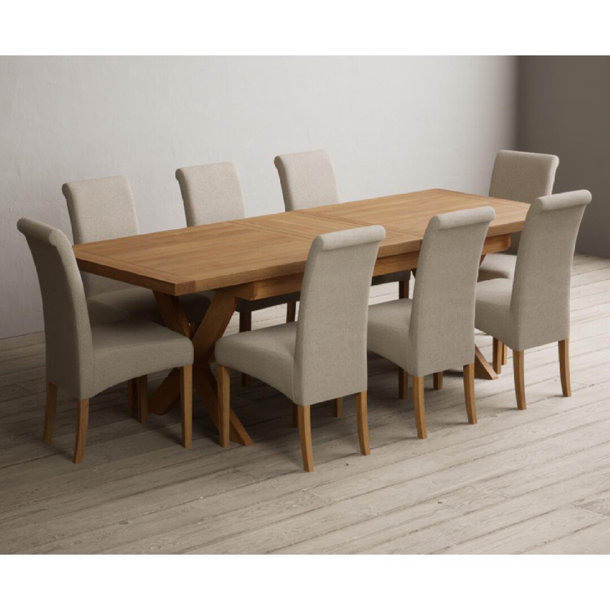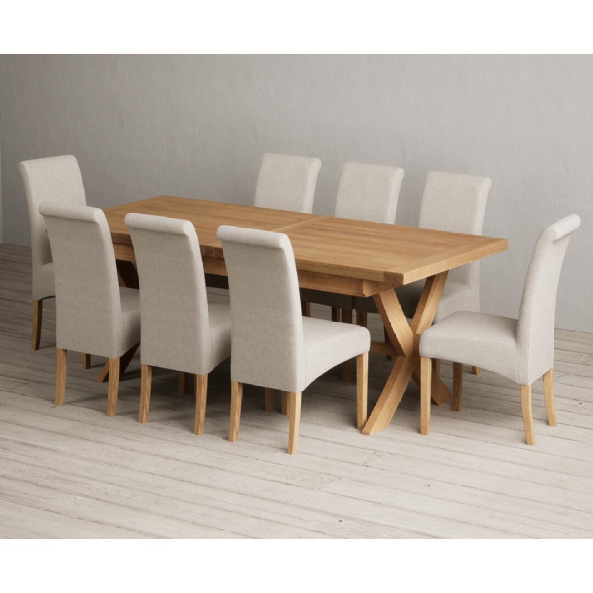 Extending Buckley 200cm Solid Oak Dining Table with 8 Grey Scroll Back Chairs
