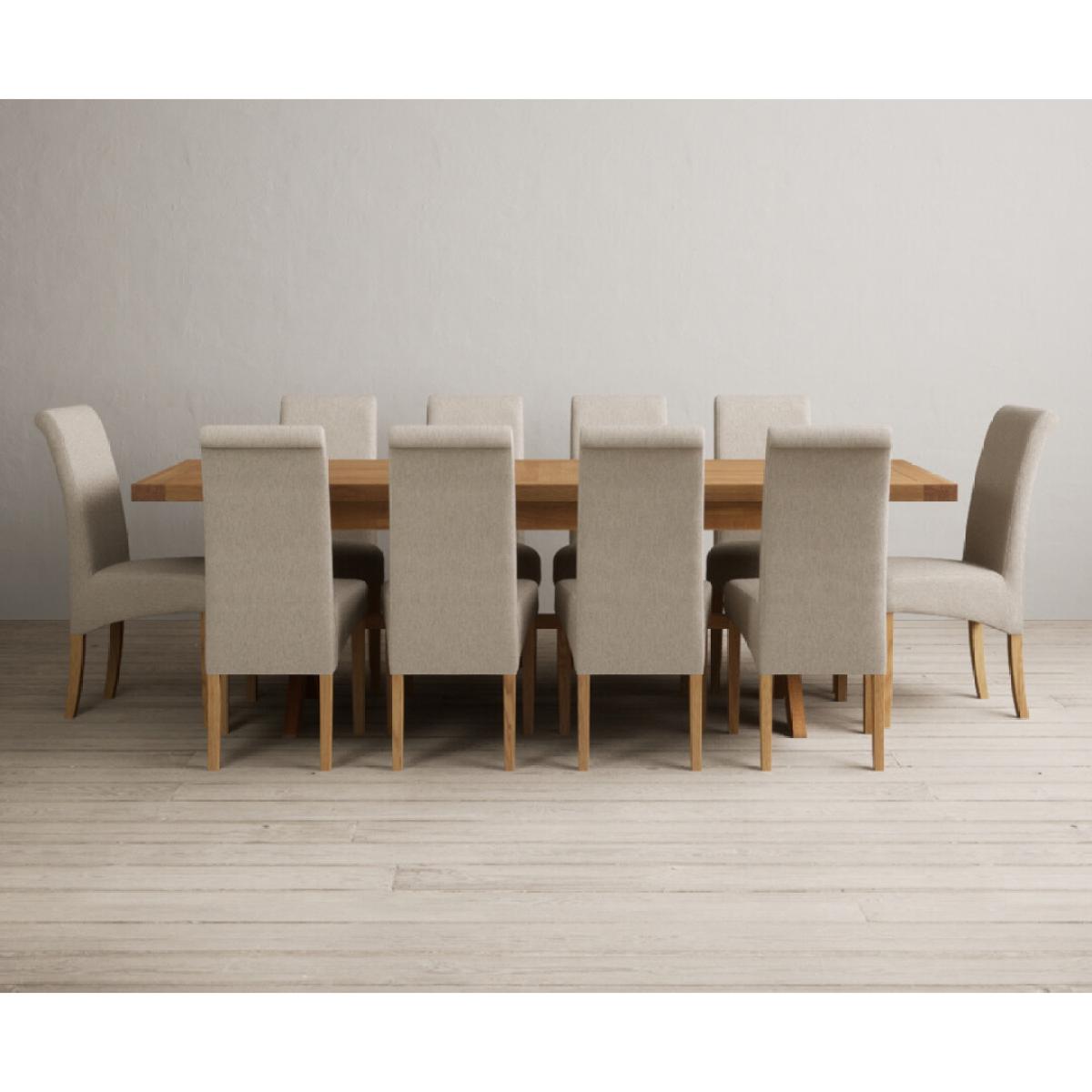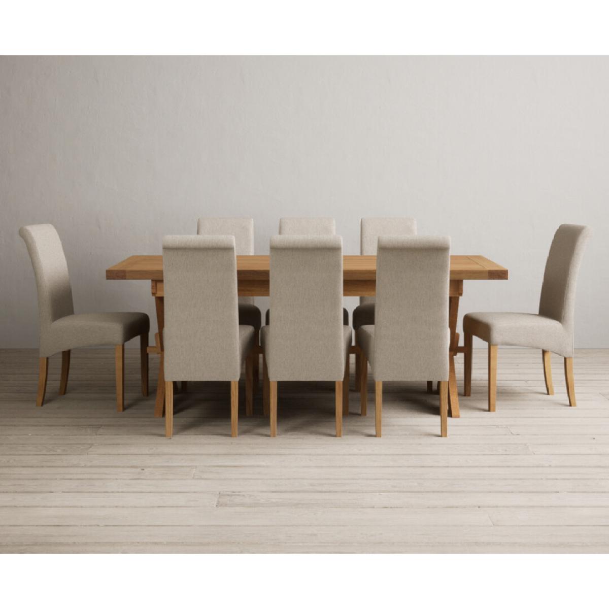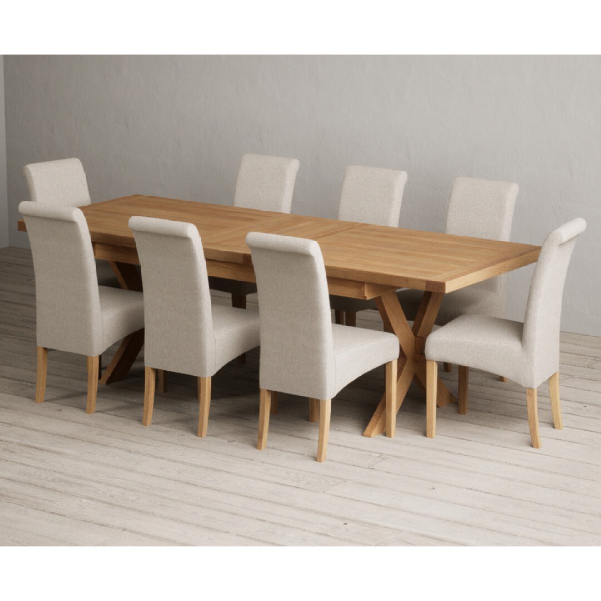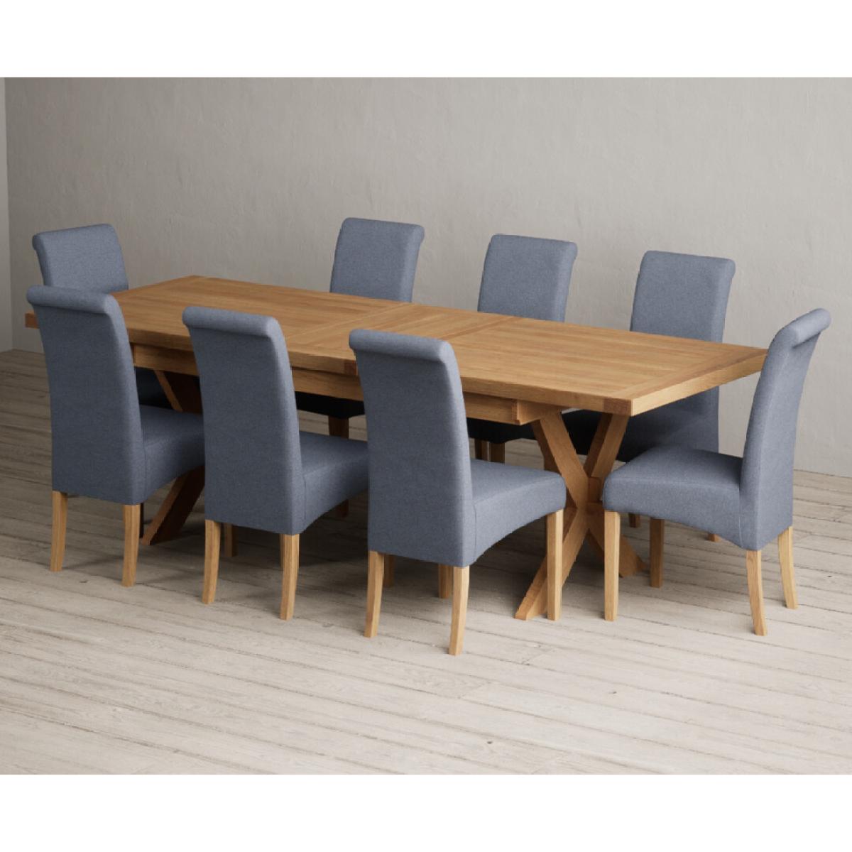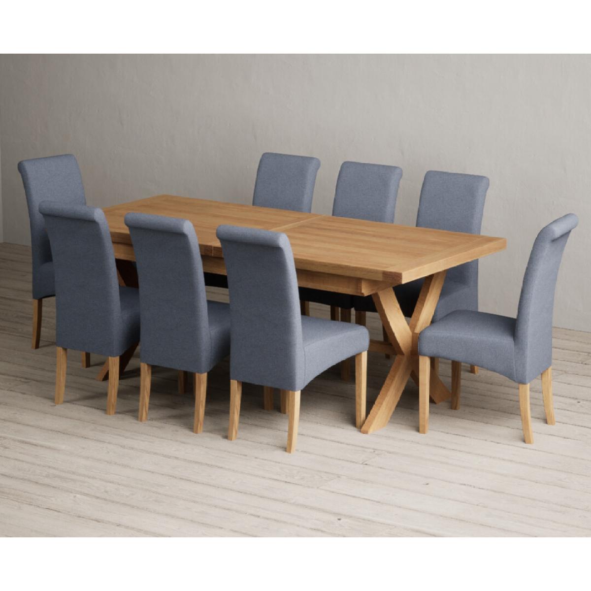 Extending Buckley 200cm Solid Oak Dining Table with 8 Grey Scroll Back Chairs