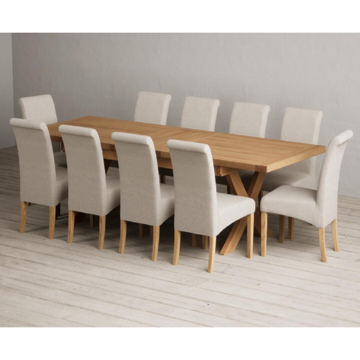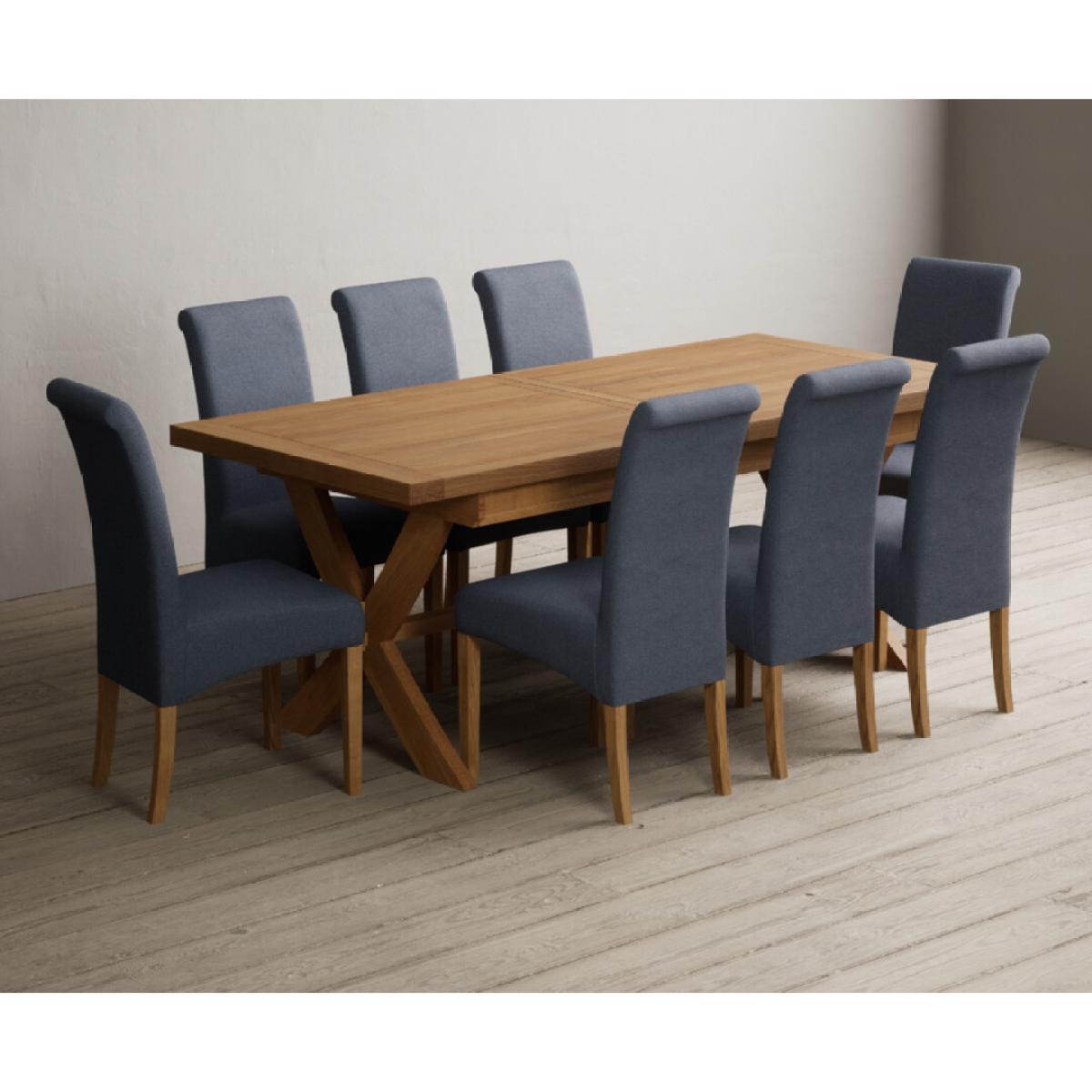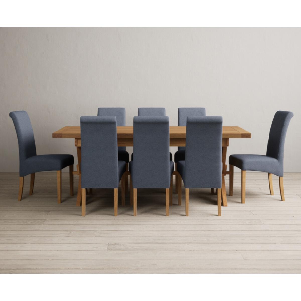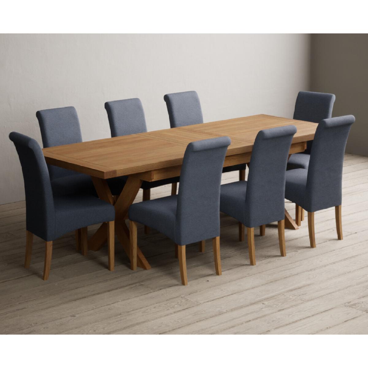 Extending Buckley 200cm Solid Oak Dining Table with 8 Grey Scroll Back Chairs