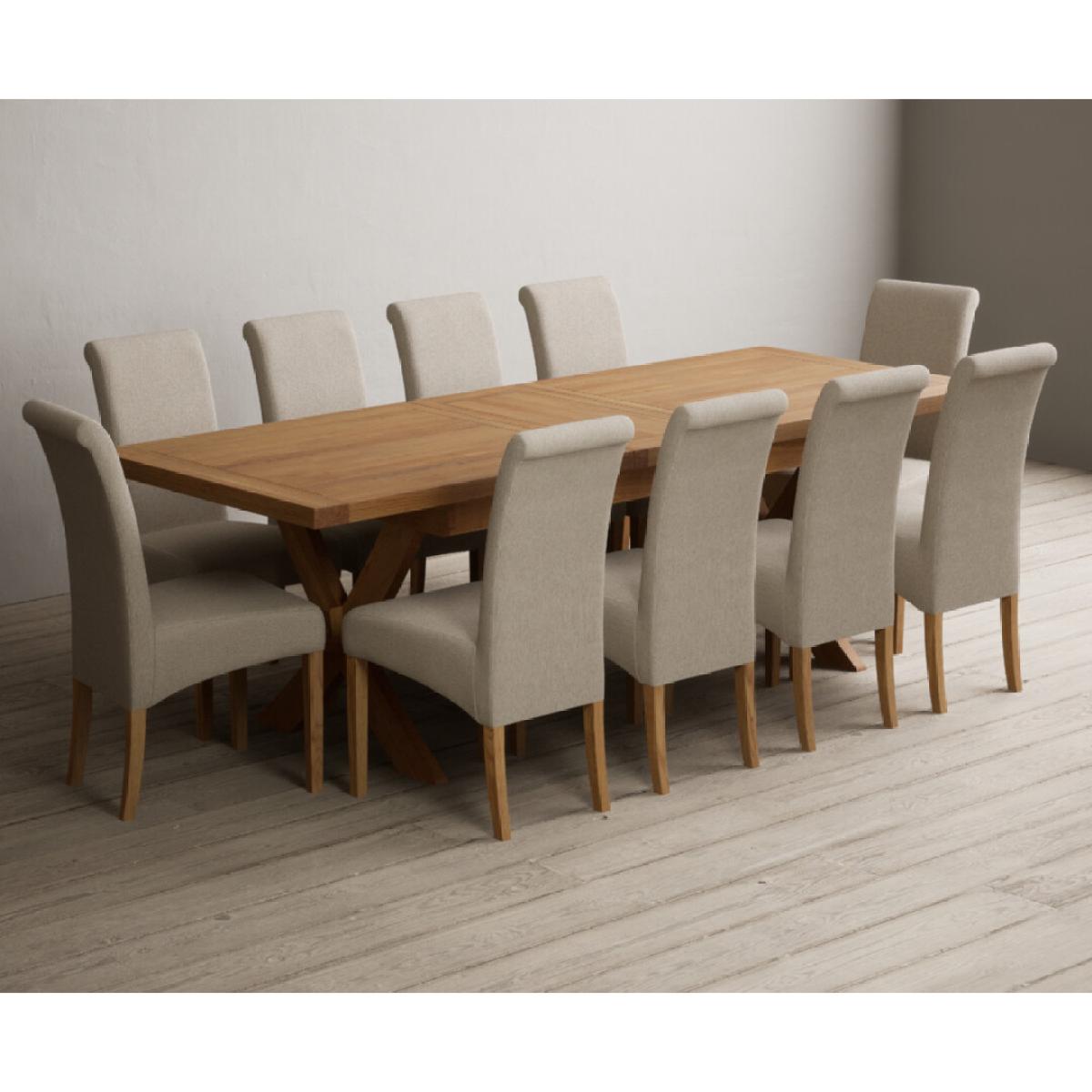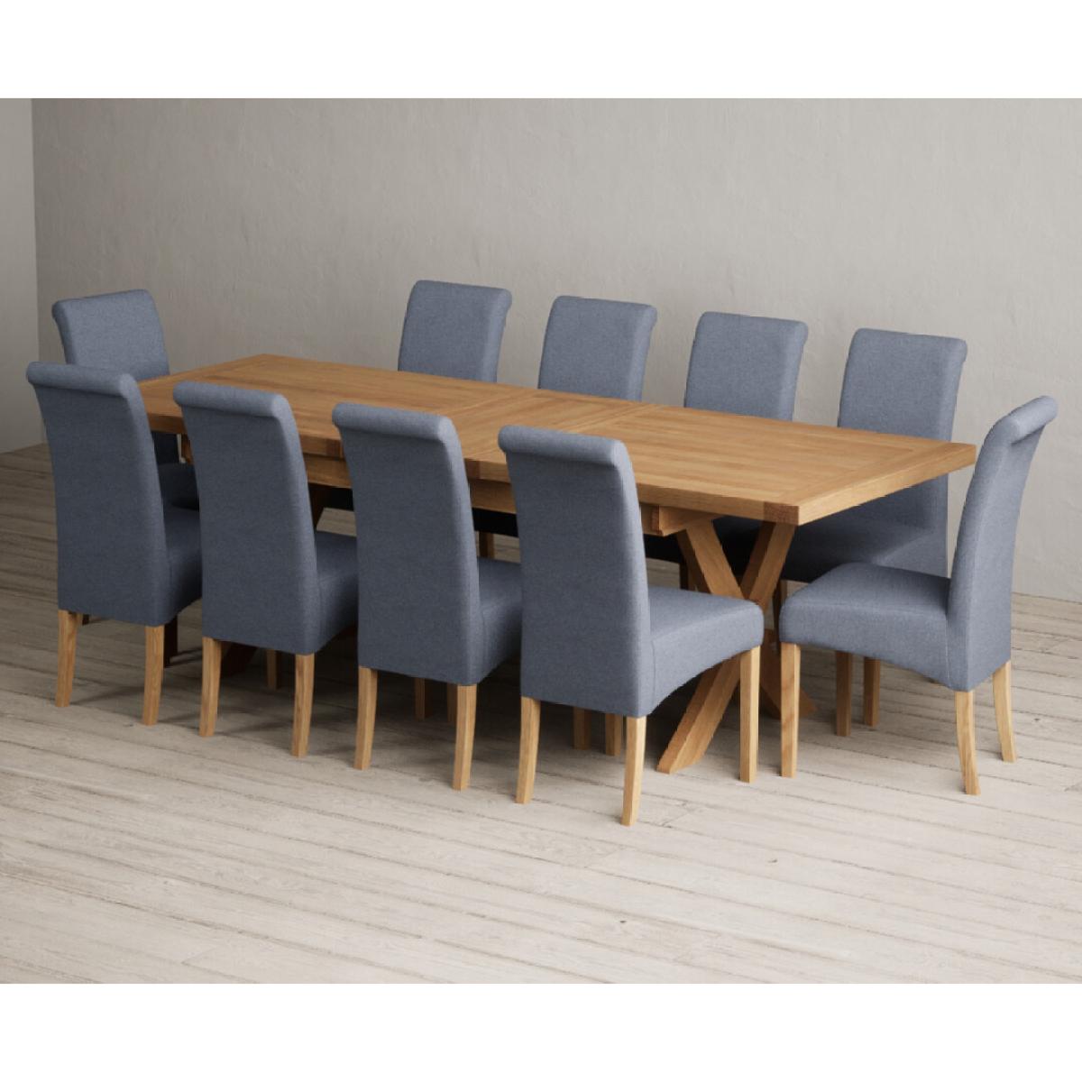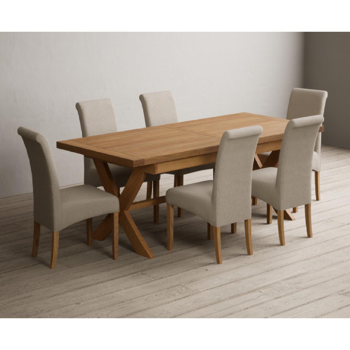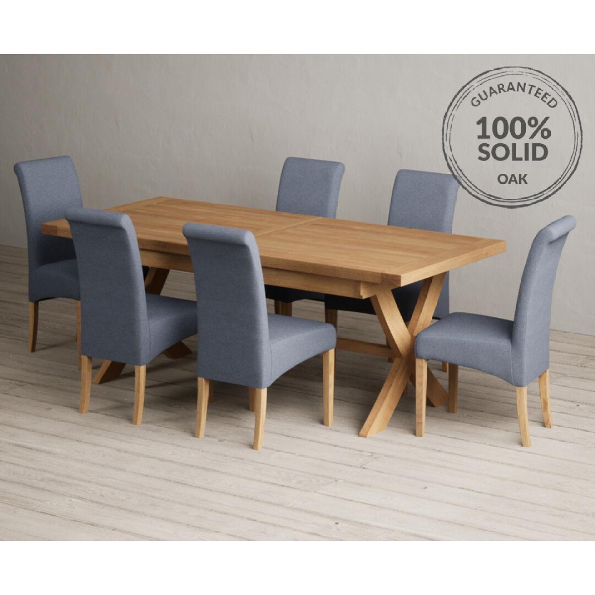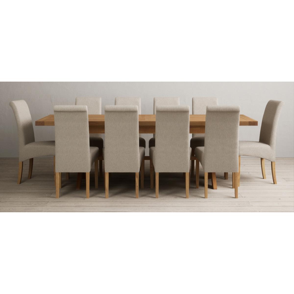 Extending Buckley 200cm Solid Oak Dining Table with 8 Grey Scroll Back Chairs