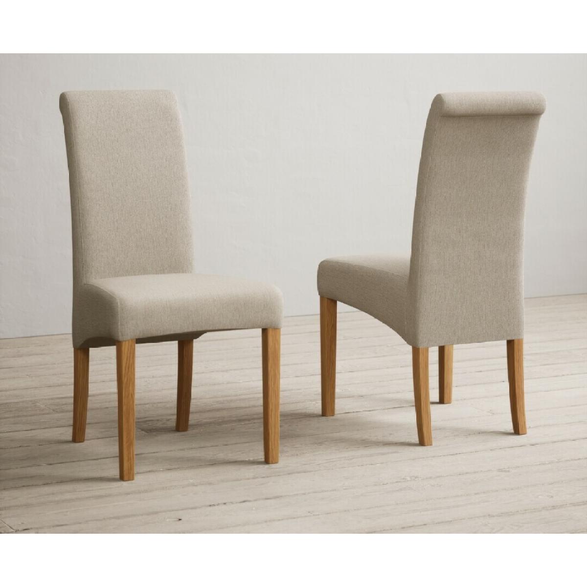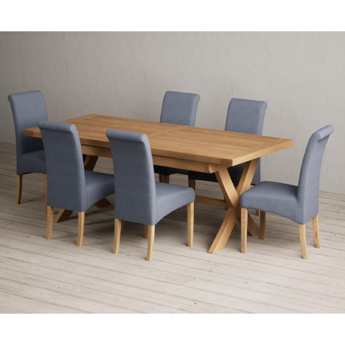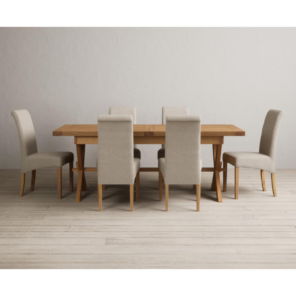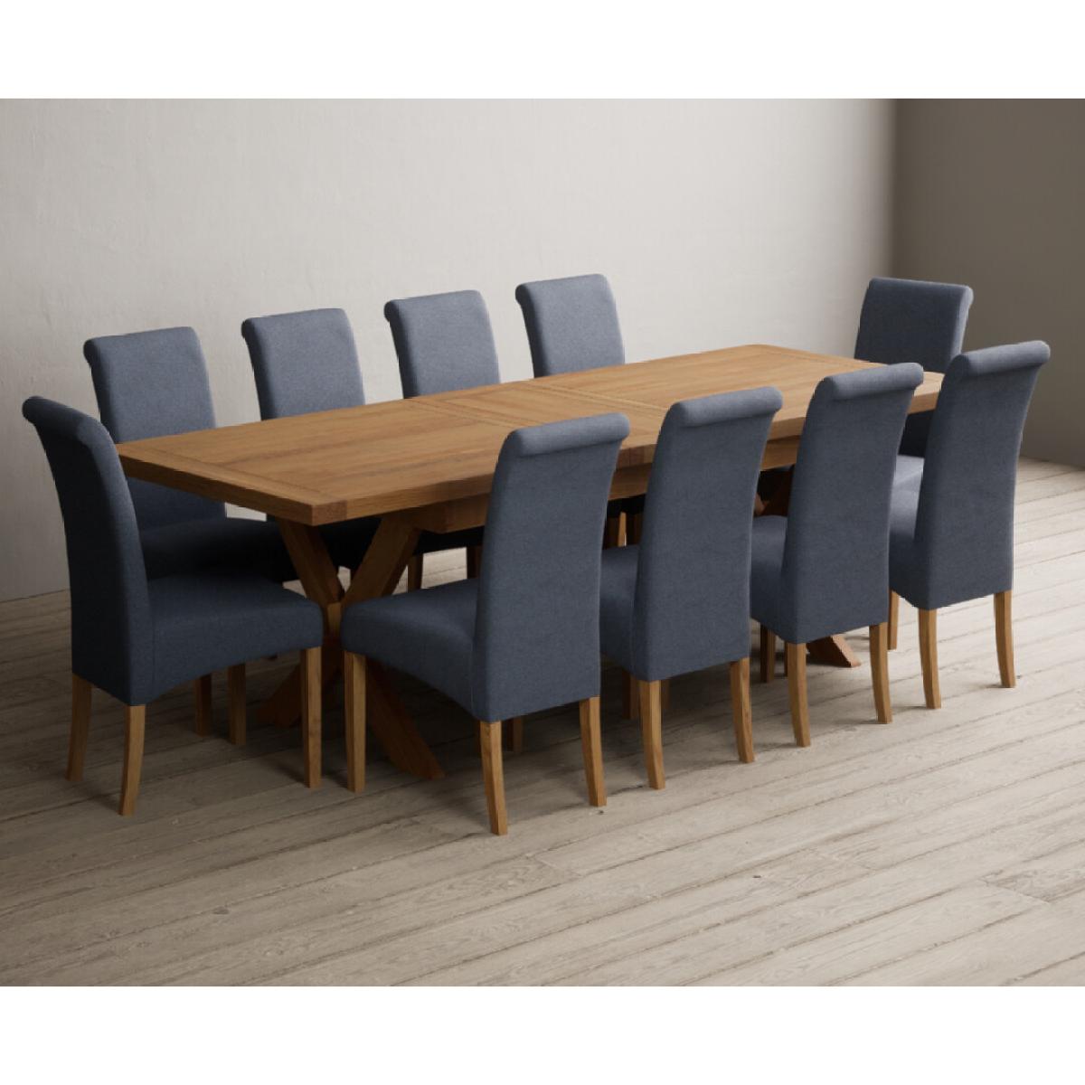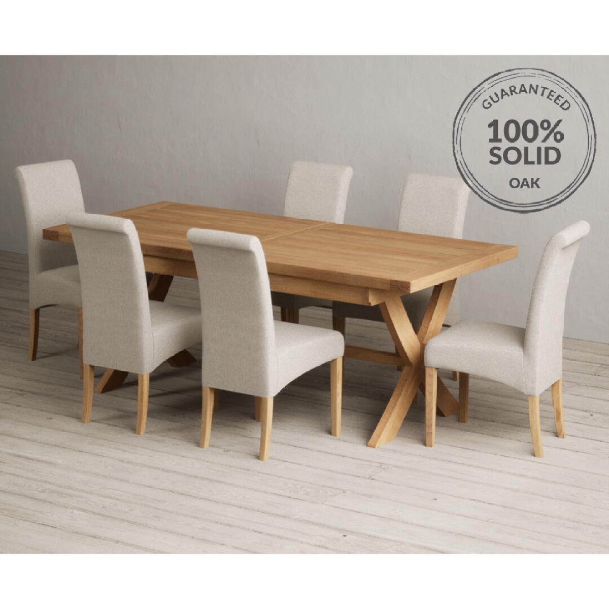 Extending Buckley 200cm Solid Oak Dining Table with 8 Grey Scroll Back Chairs