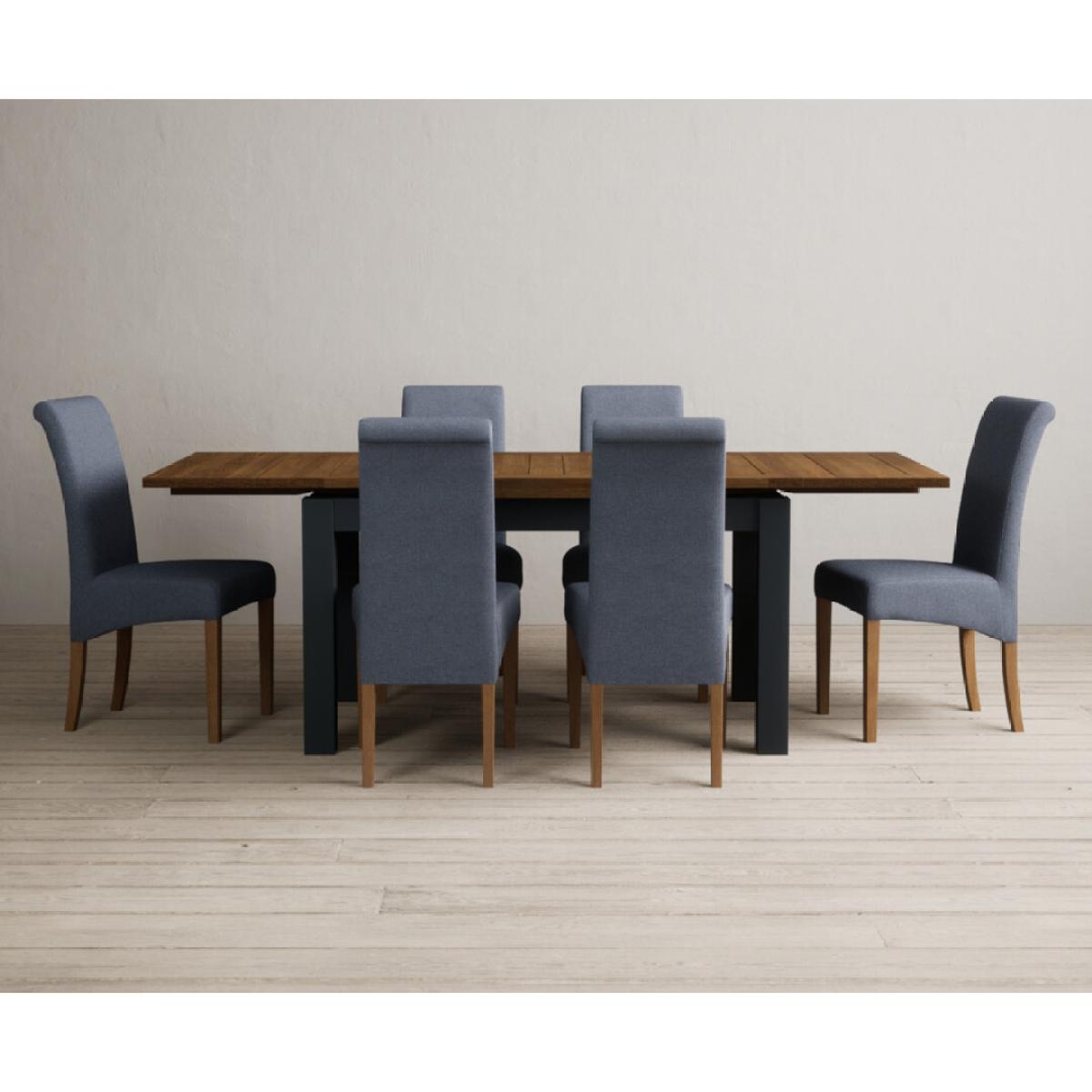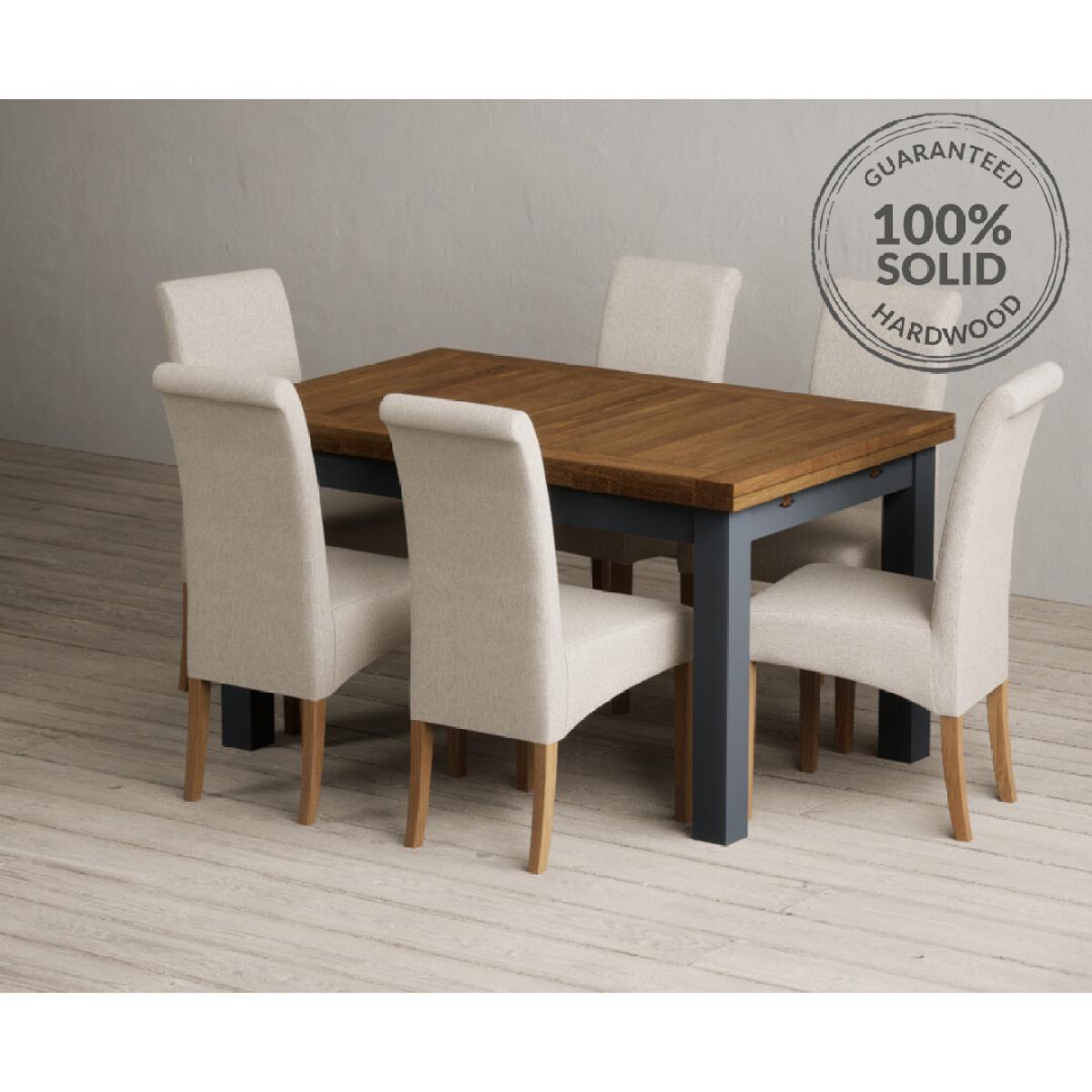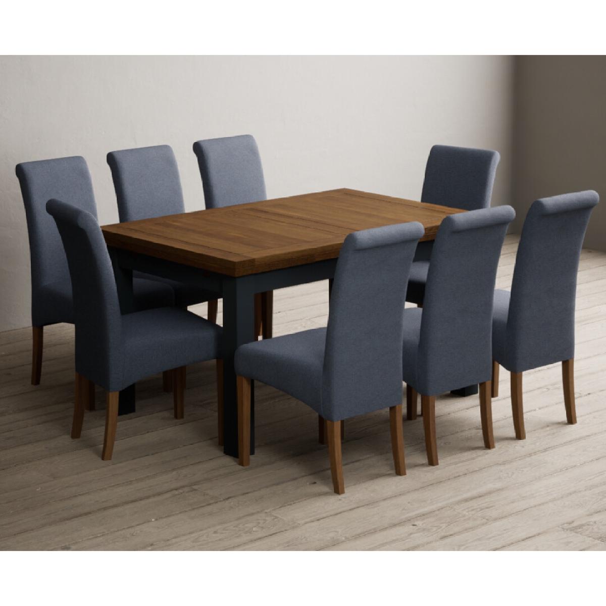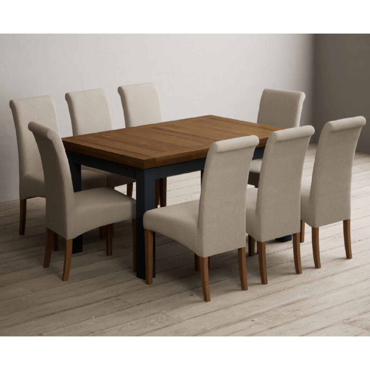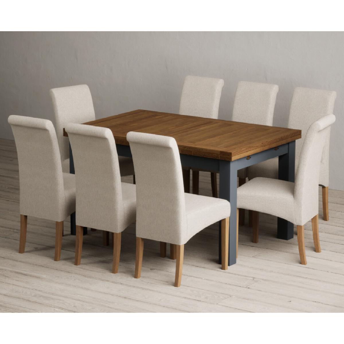 Extending Buxton 140cm Oak and Dark Blue Painted Dining Table with 8 Natural Scroll Back Chairs