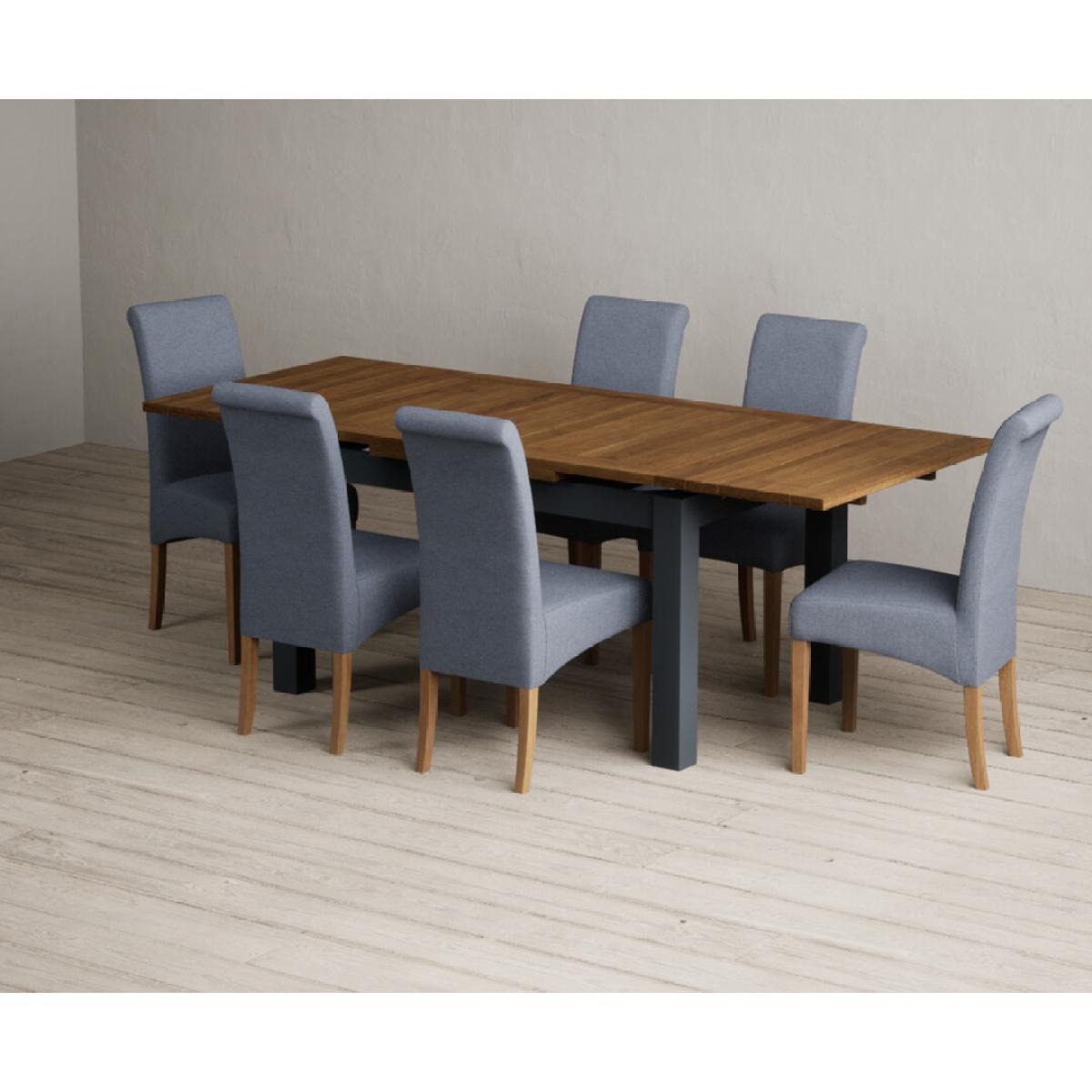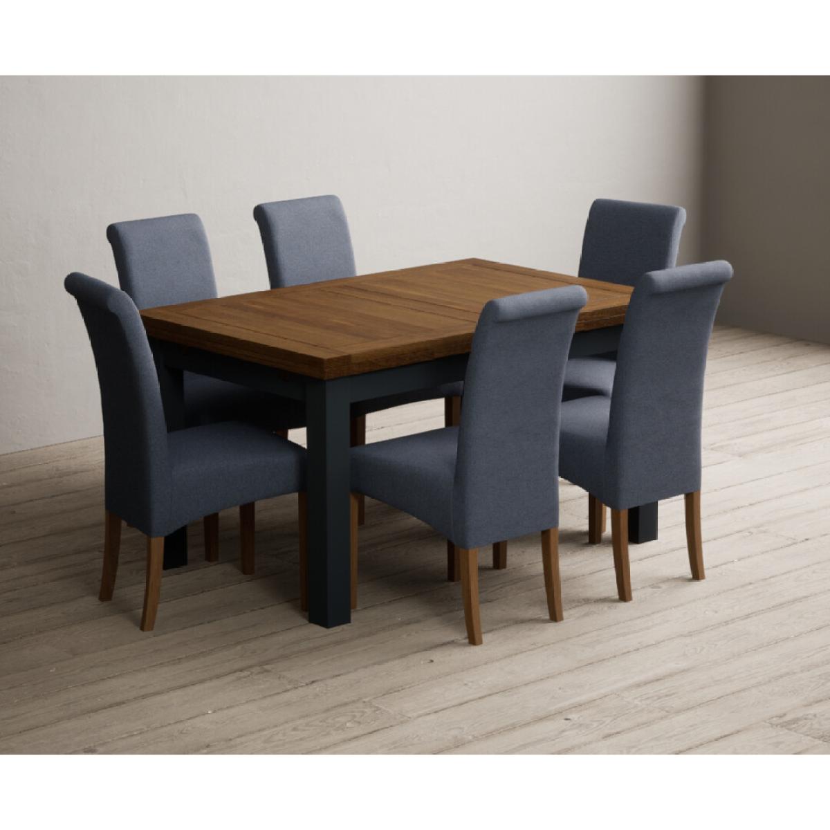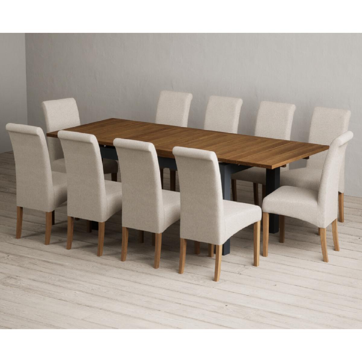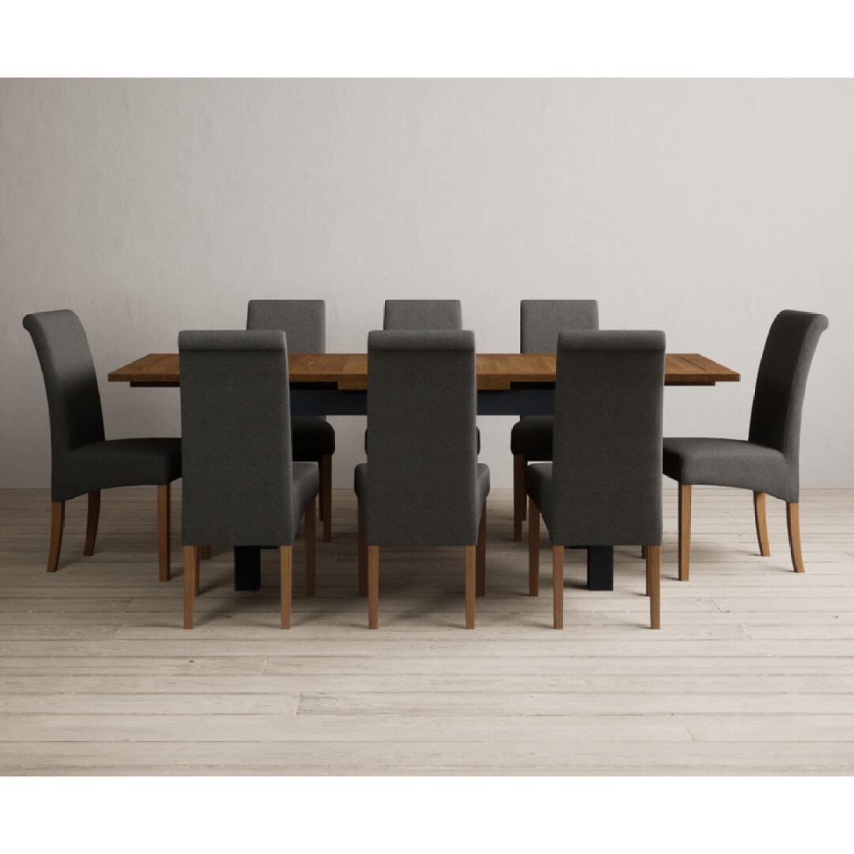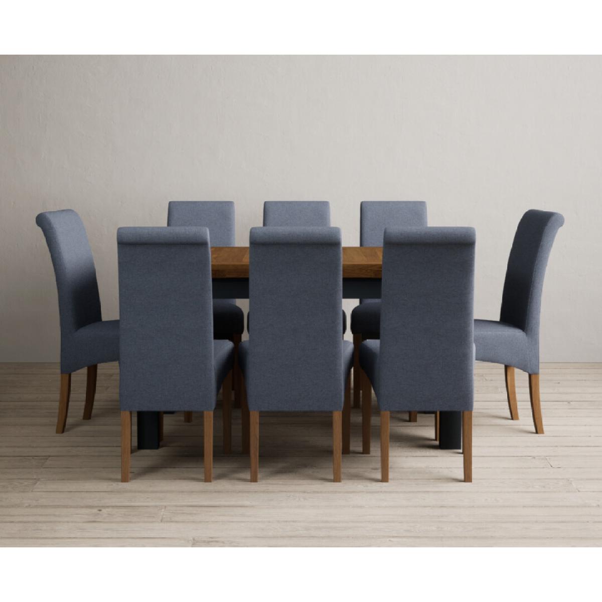 Extending Buxton 140cm Oak and Dark Blue Painted Dining Table with 8 Natural Scroll Back Chairs