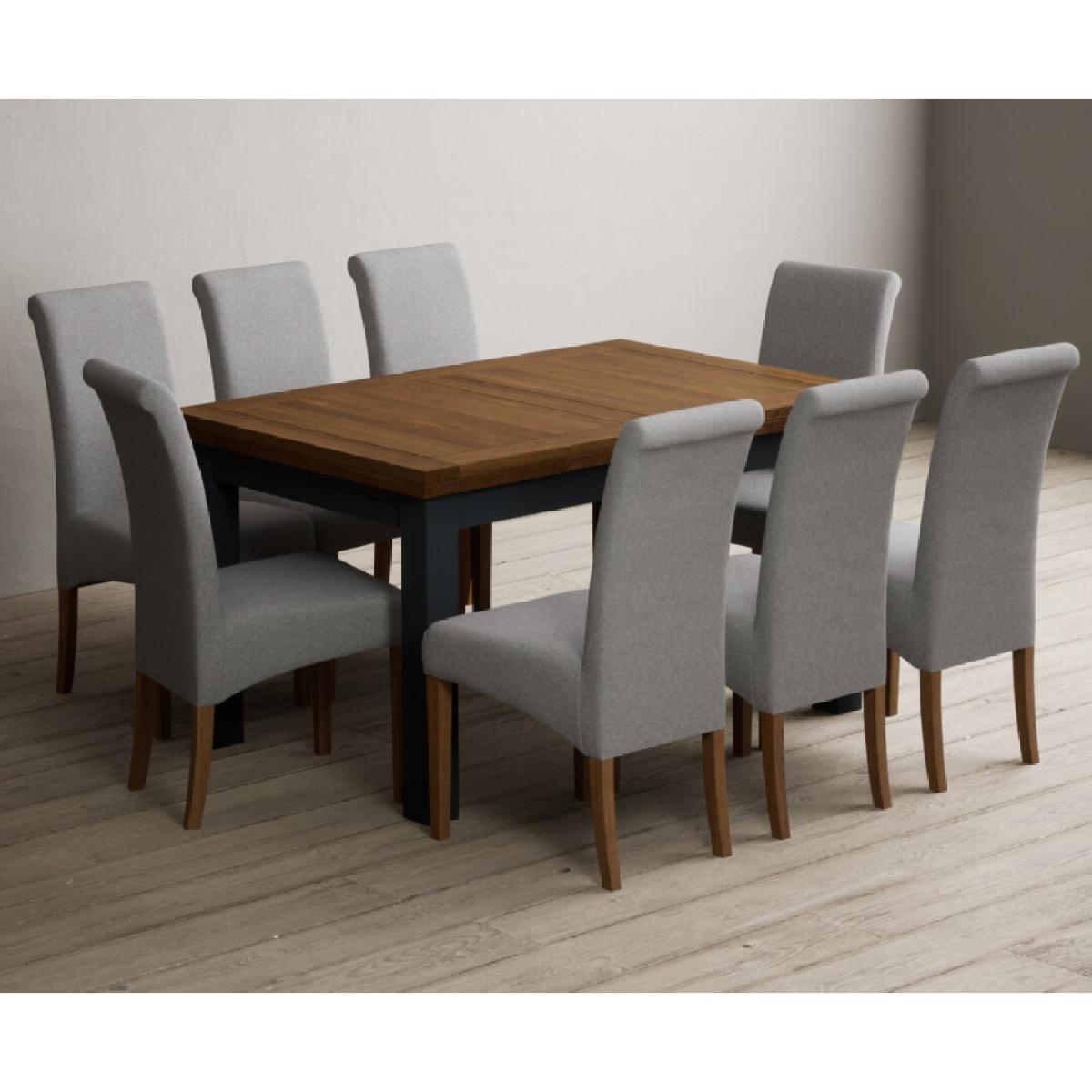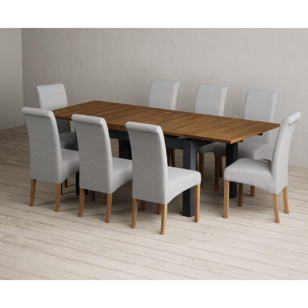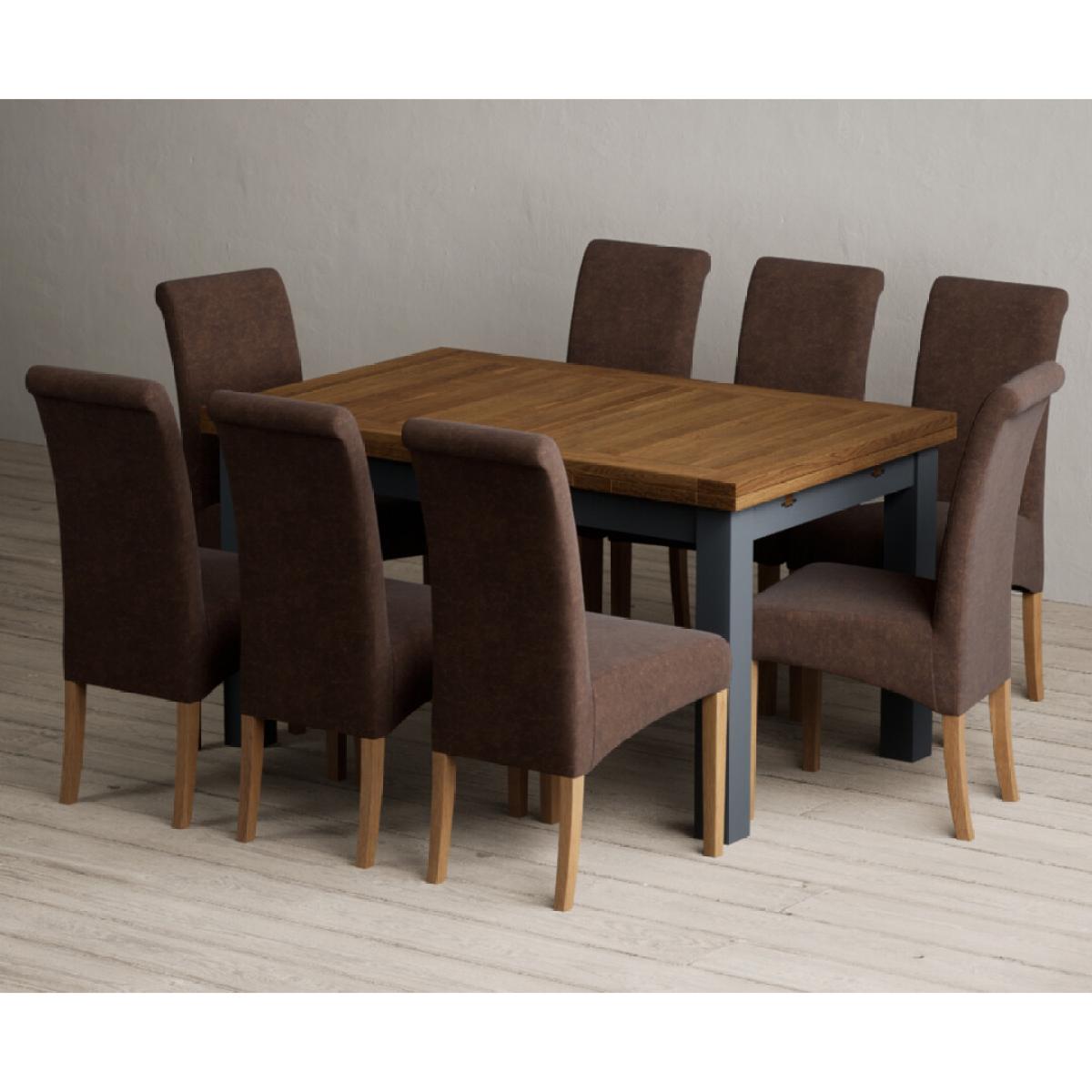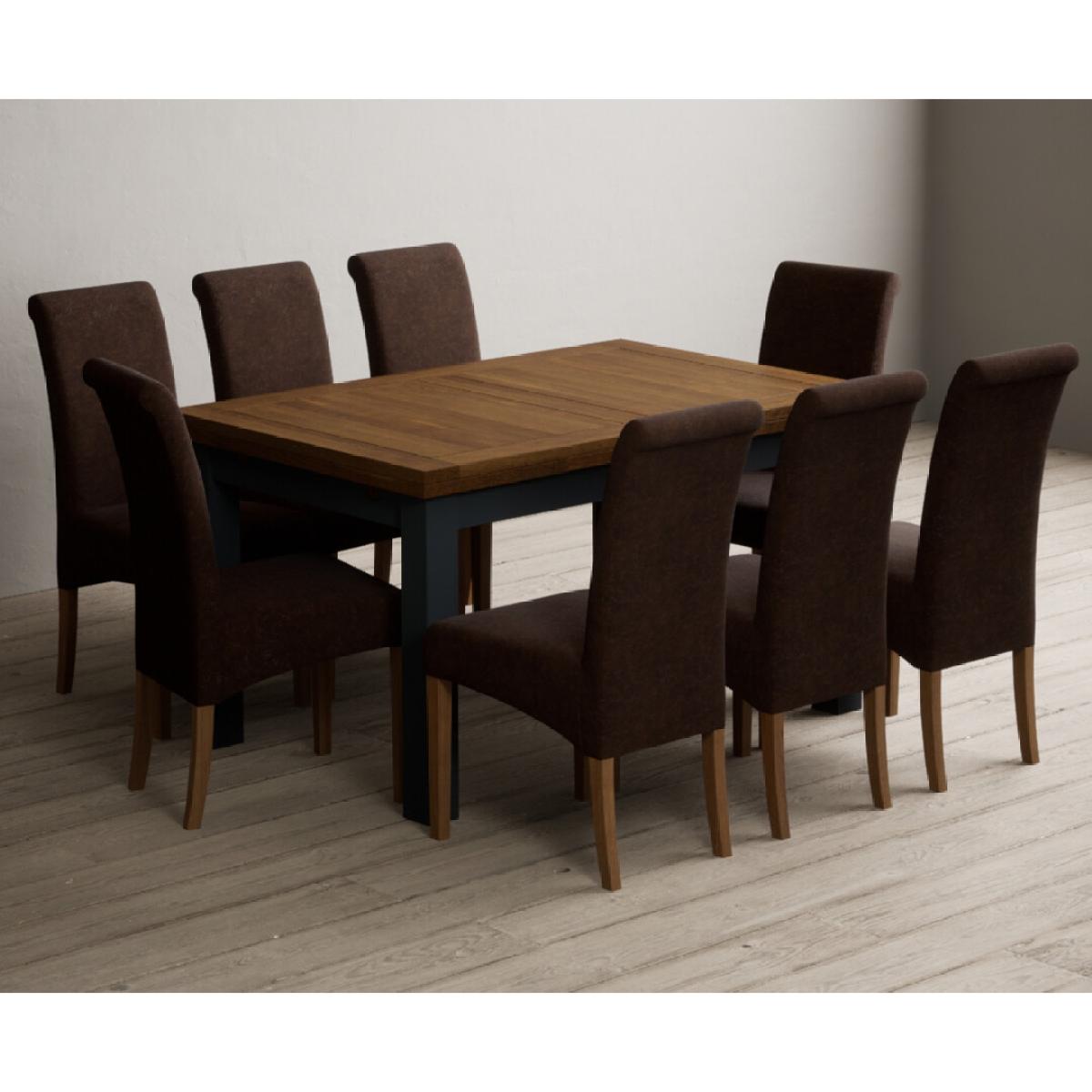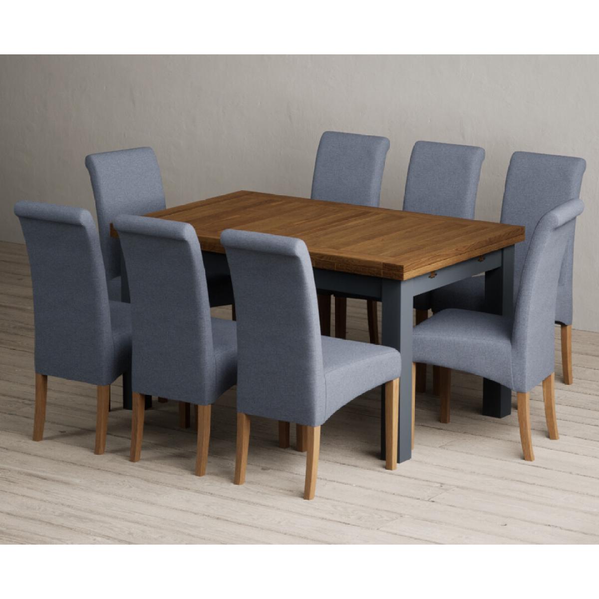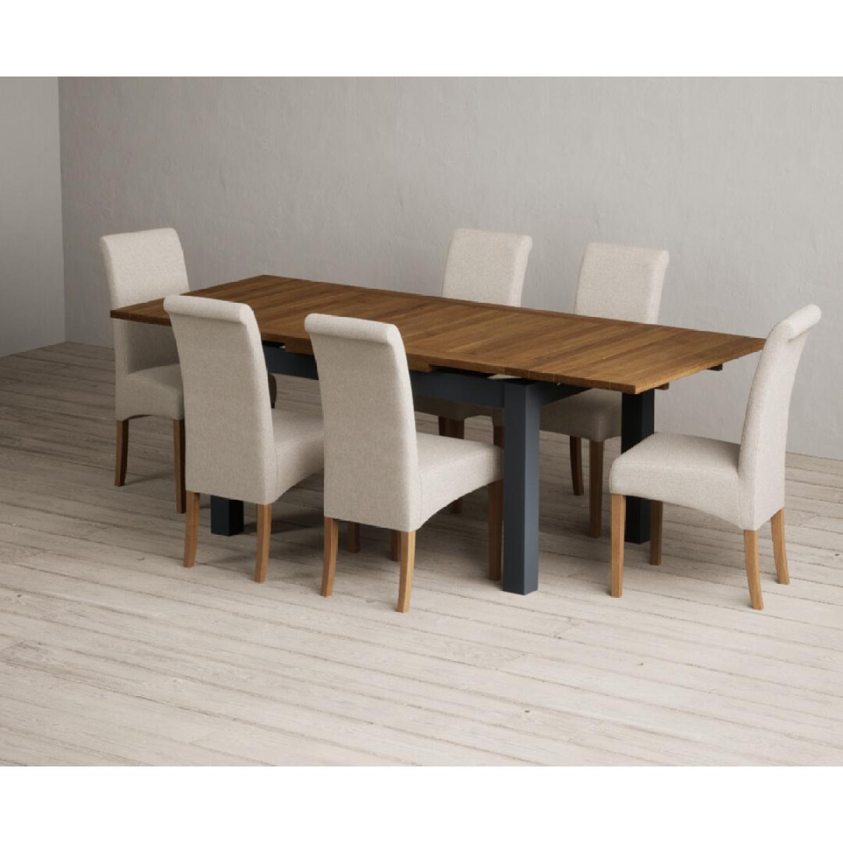 Extending Buxton 140cm Oak and Dark Blue Painted Dining Table with 8 Natural Scroll Back Chairs