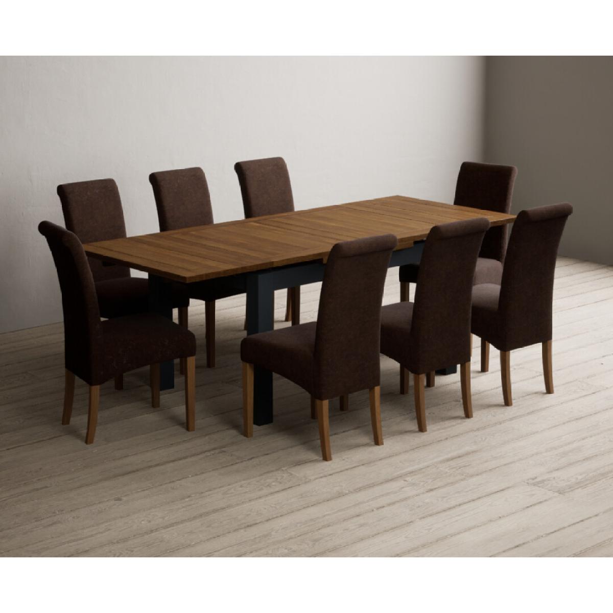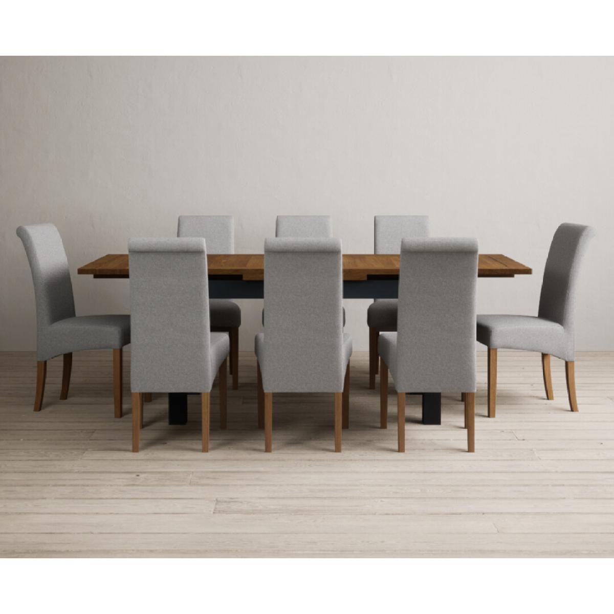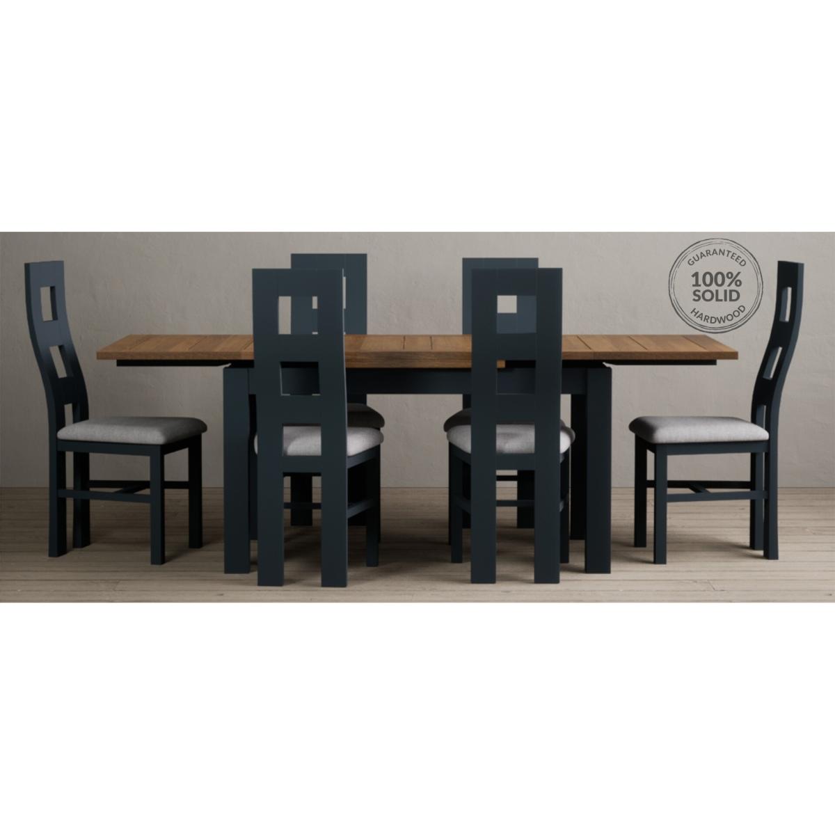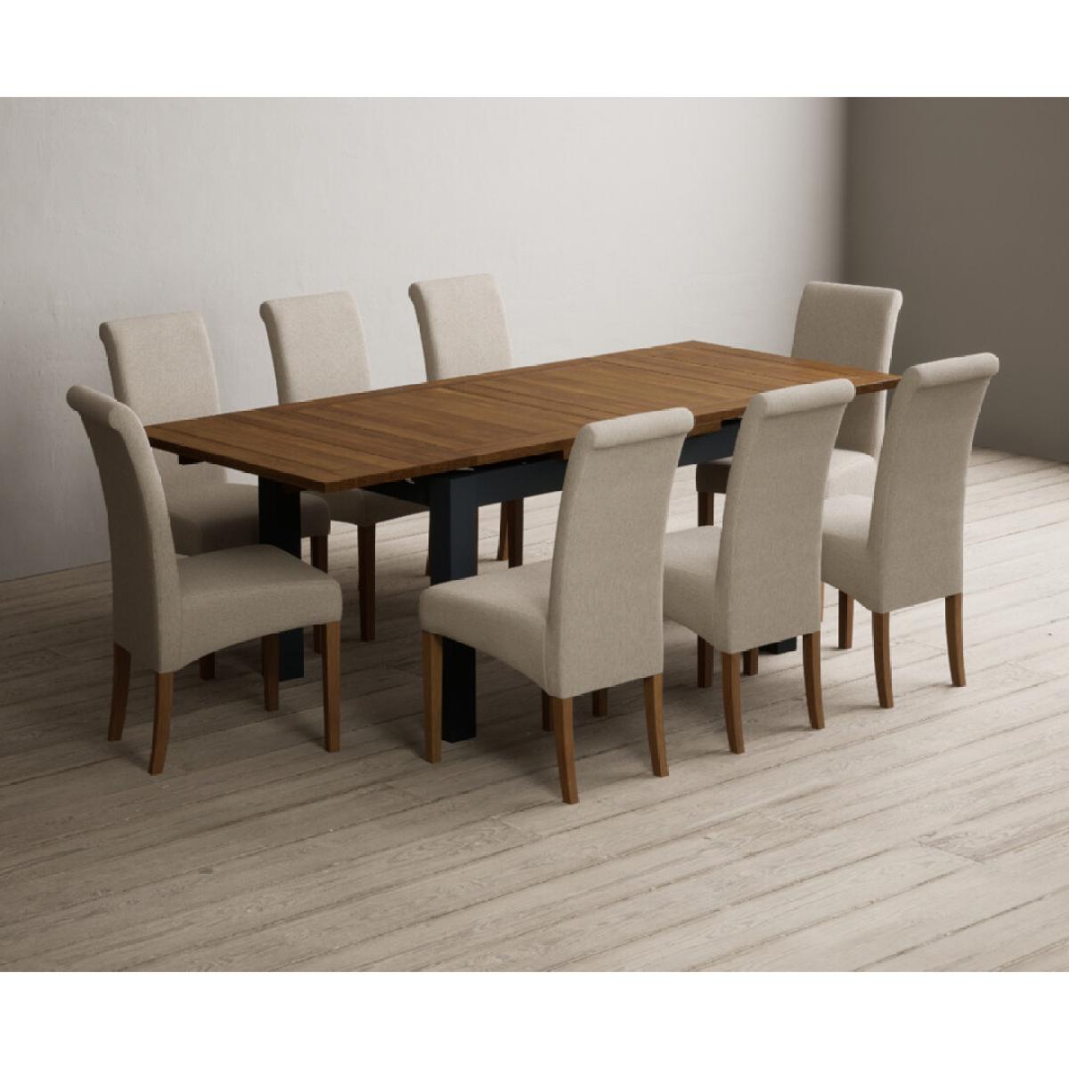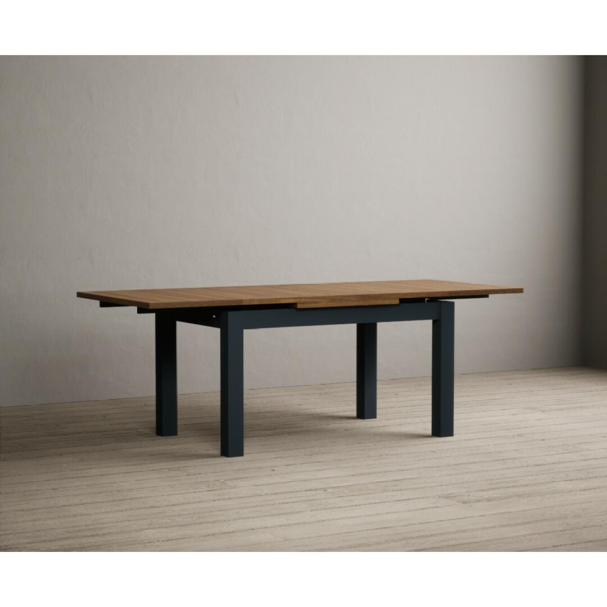 Extending Buxton 140cm Oak and Dark Blue Painted Dining Table with 8 Natural Scroll Back Chairs