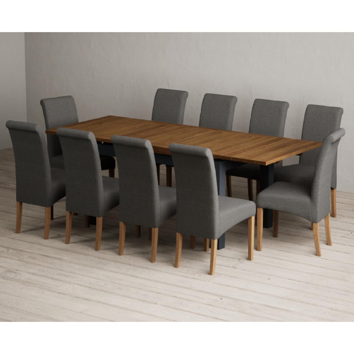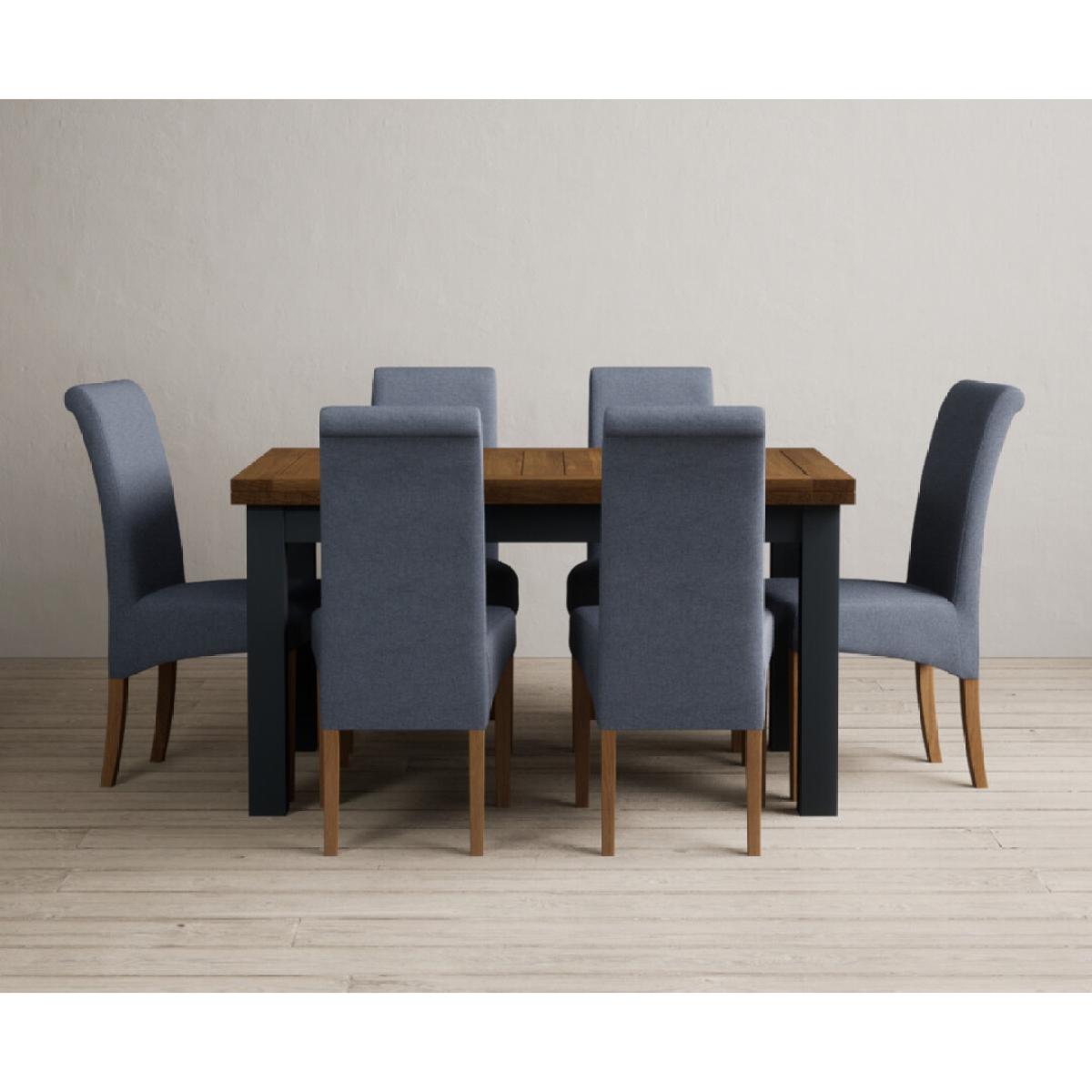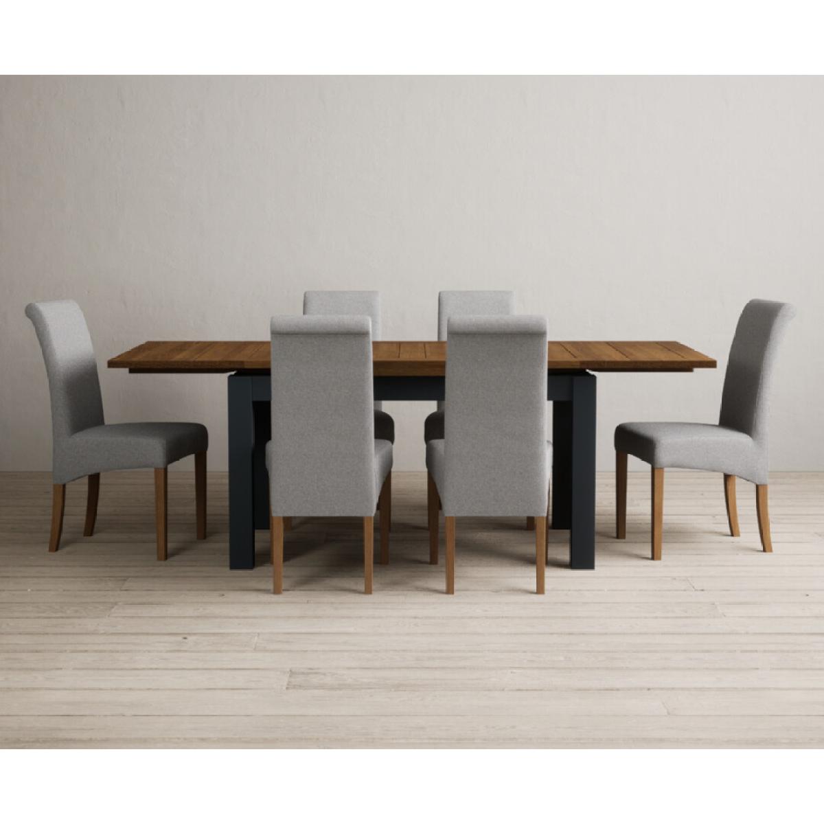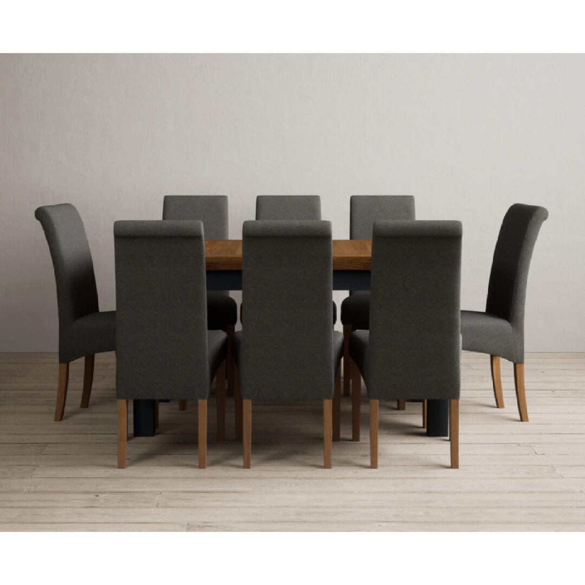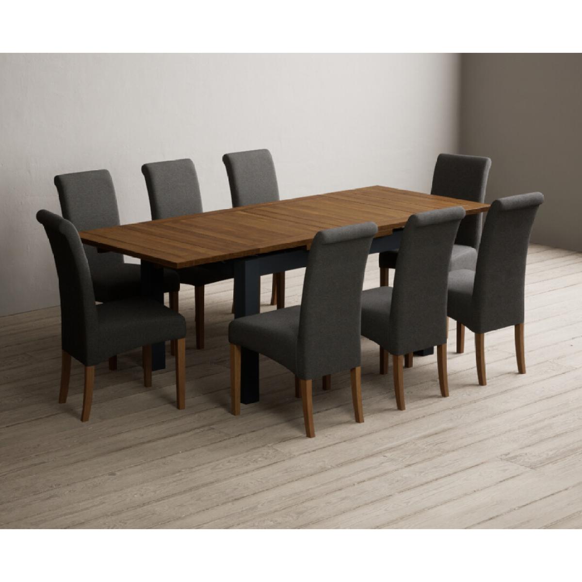 Extending Buxton 140cm Oak and Dark Blue Painted Dining Table with 8 Natural Scroll Back Chairs