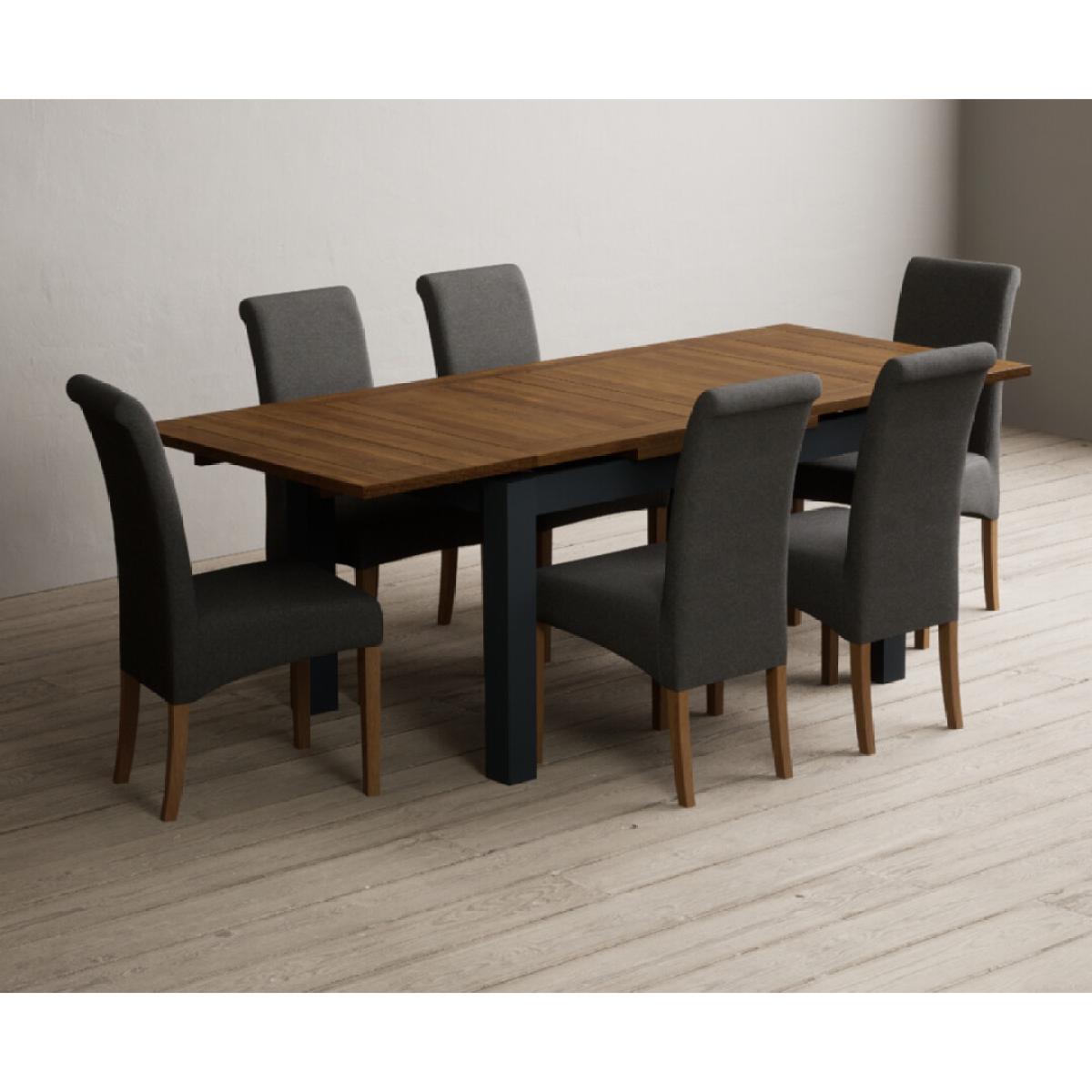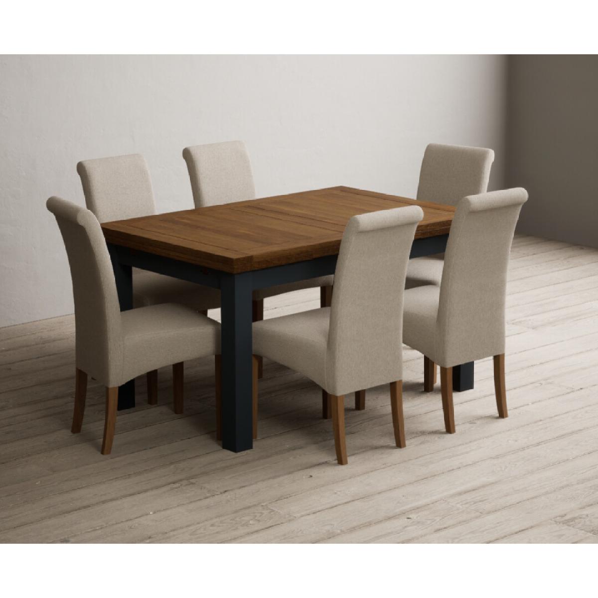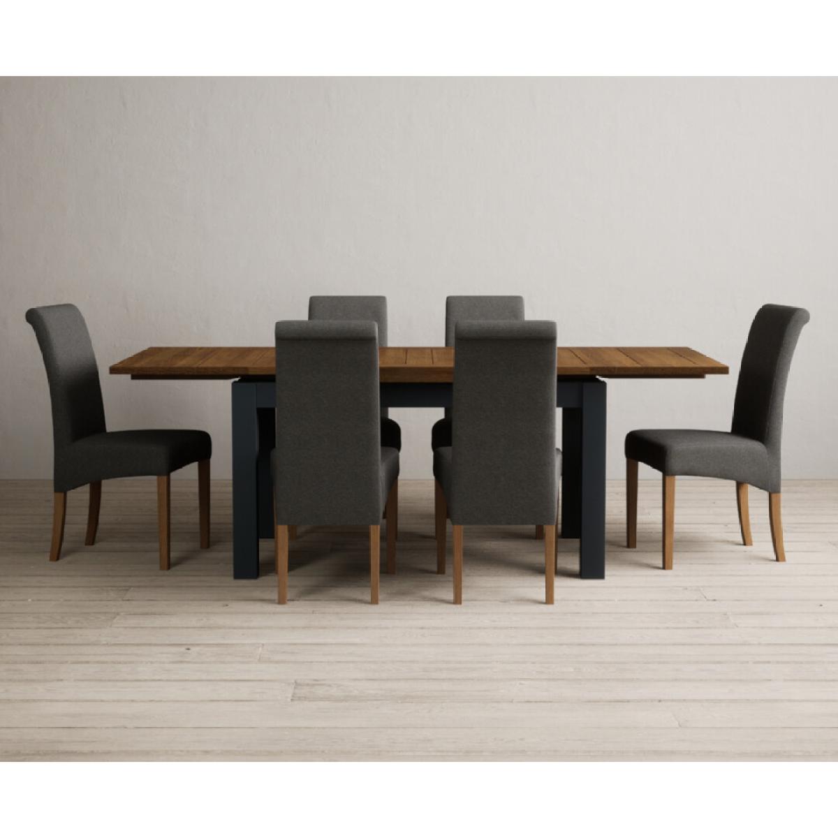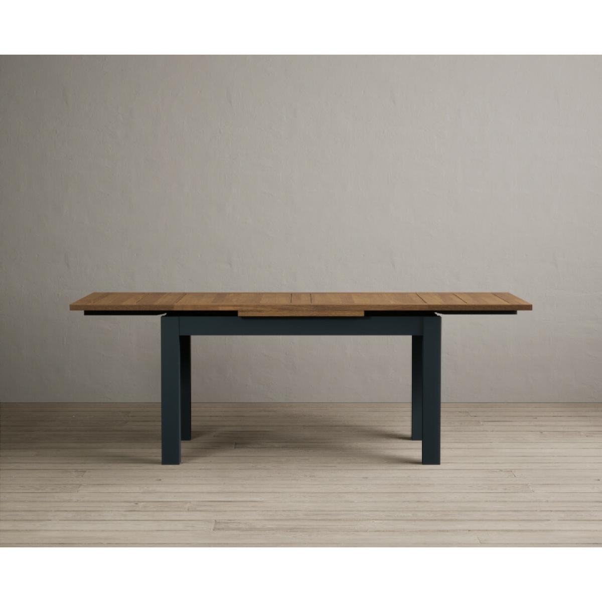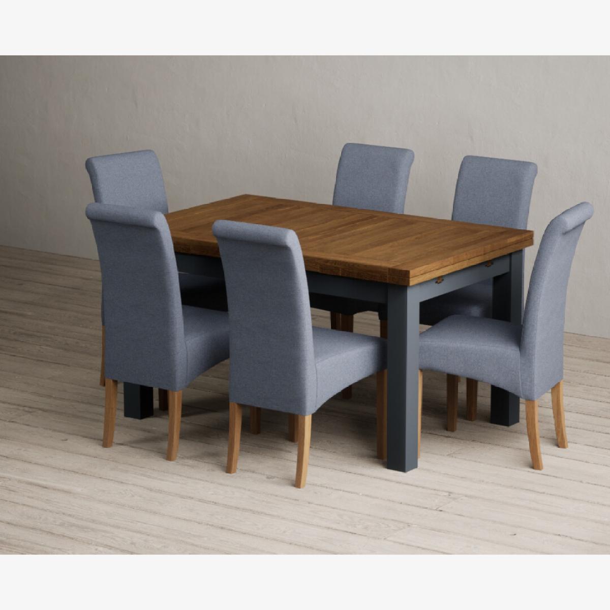Extending Buxton 140cm Oak and Dark Blue Painted Dining Table with 8 Natural Scroll Back Chairs