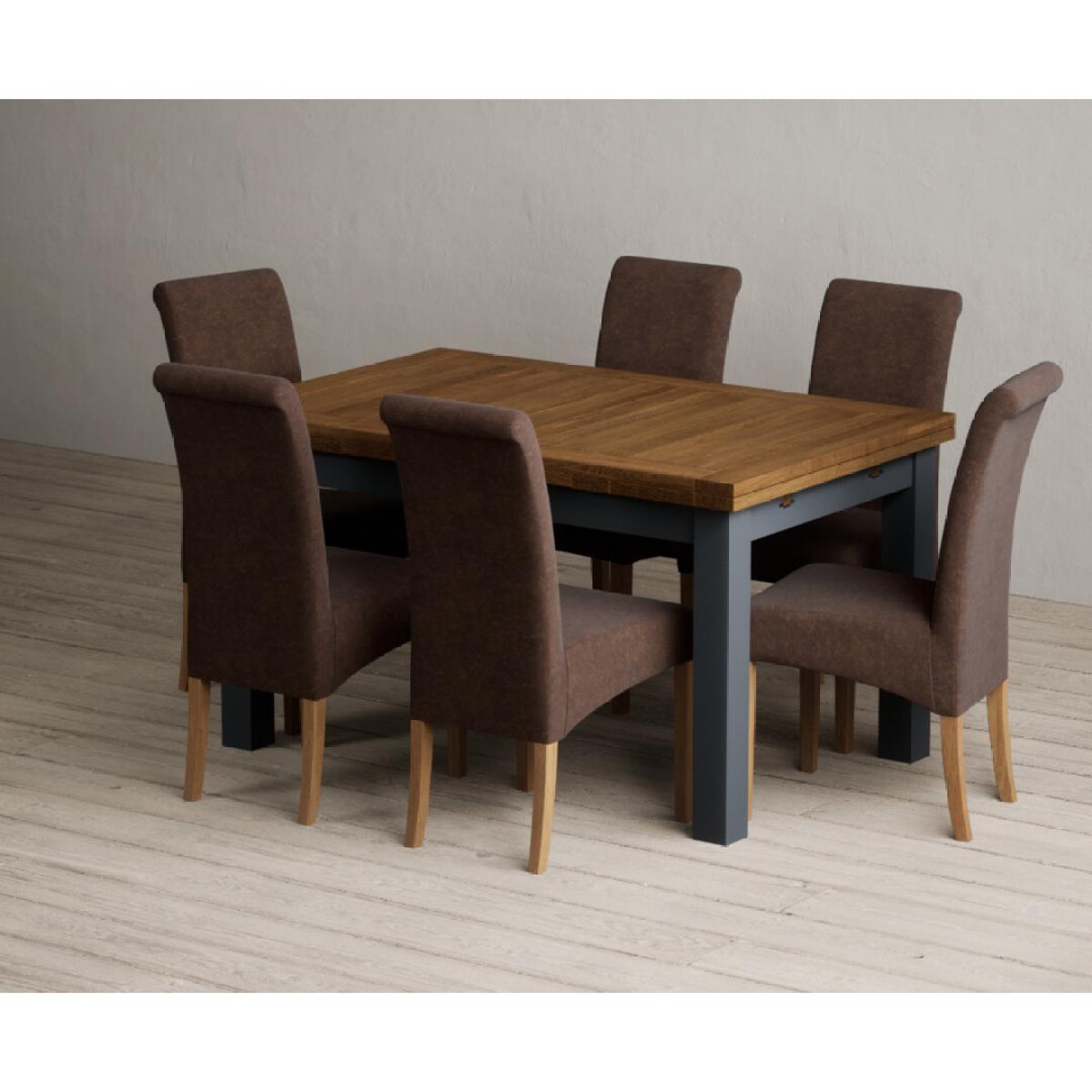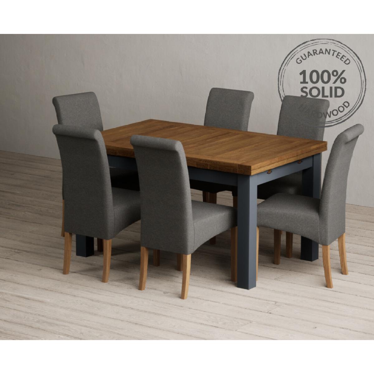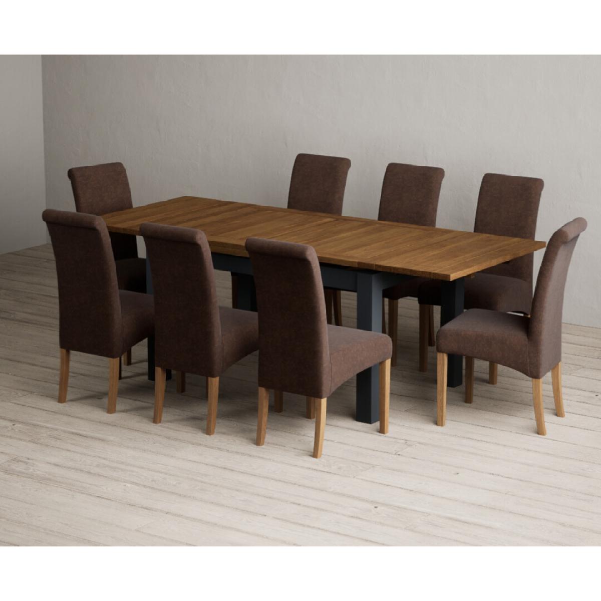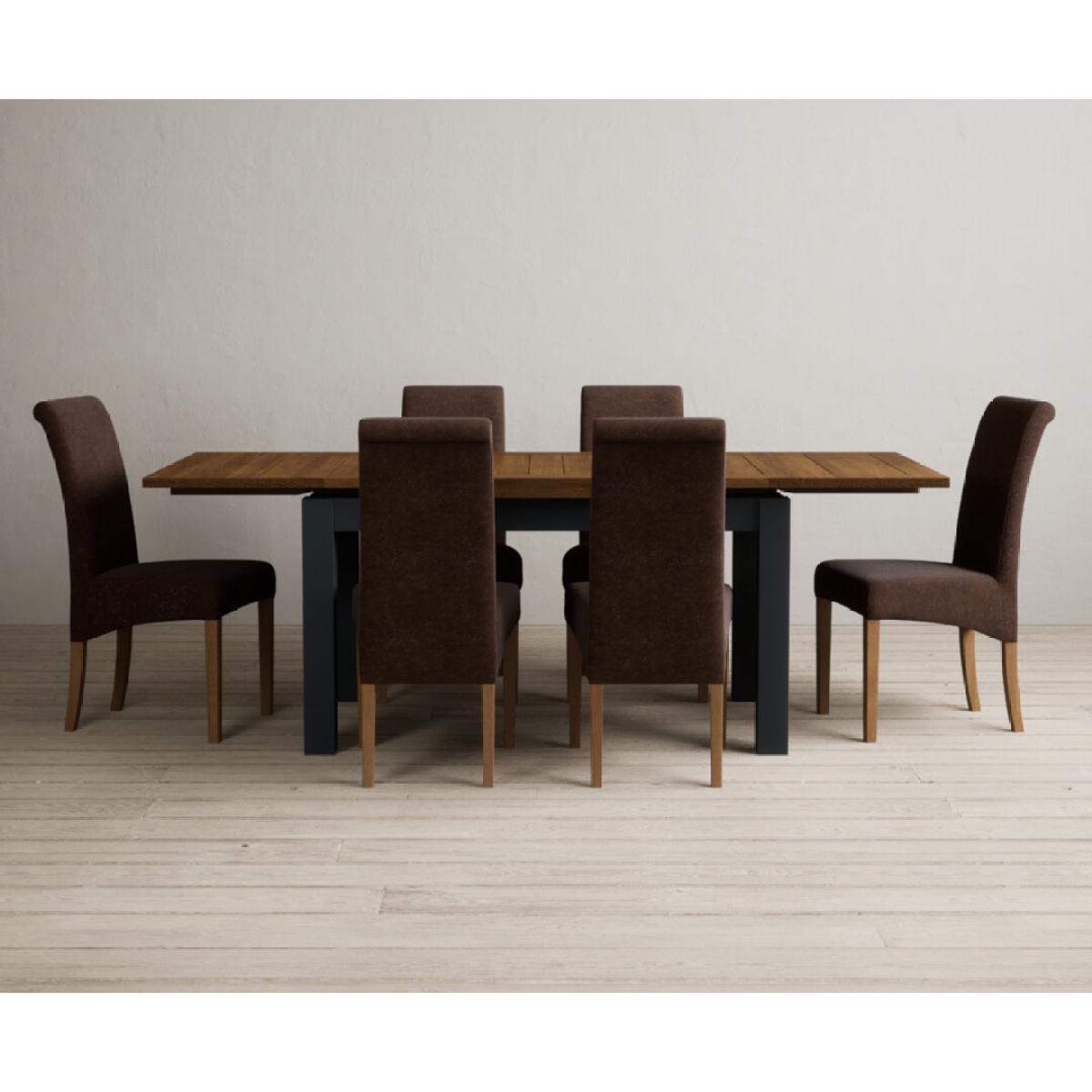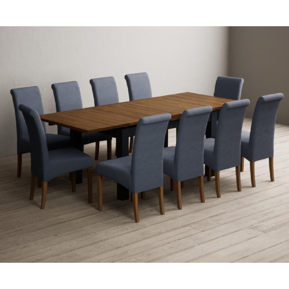 Extending Buxton 140cm Oak and Dark Blue Painted Dining Table with 8 Natural Scroll Back Chairs
