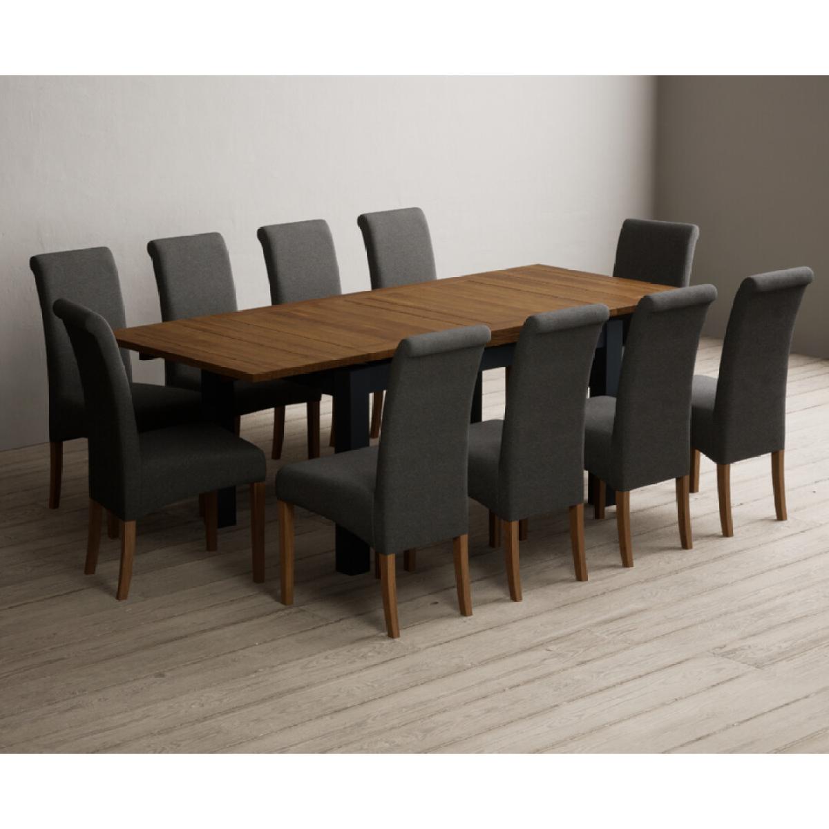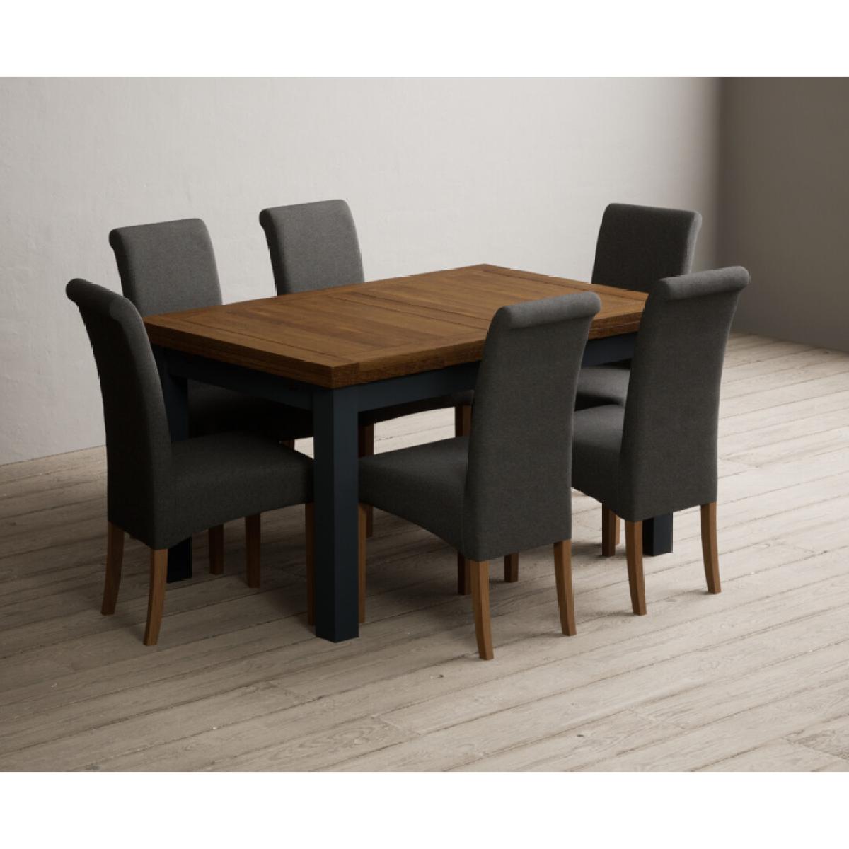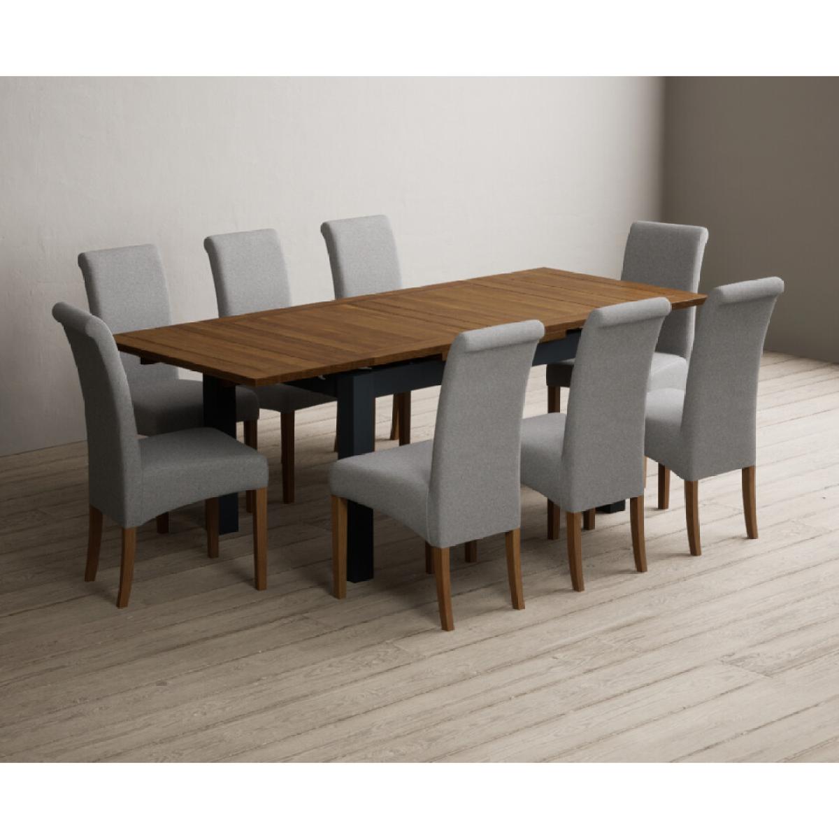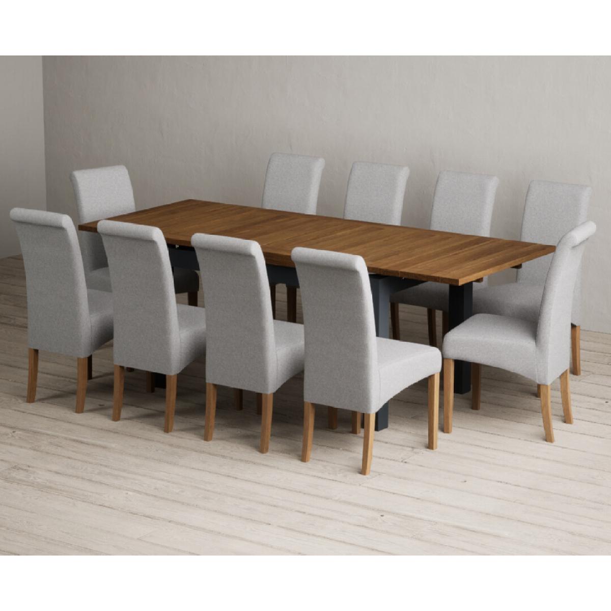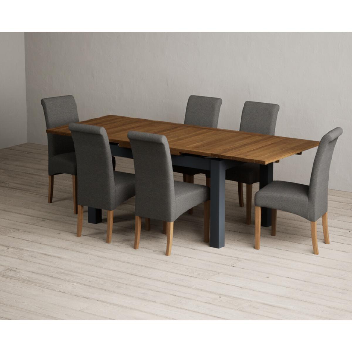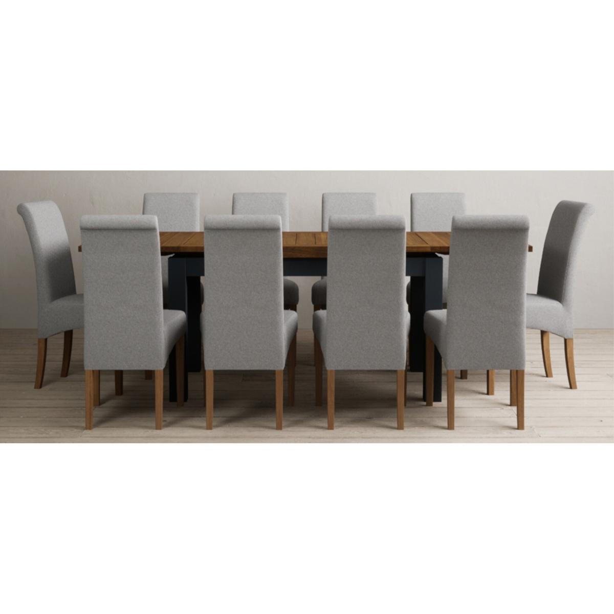 Extending Buxton 140cm Oak and Dark Blue Painted Dining Table with 8 Natural Scroll Back Chairs