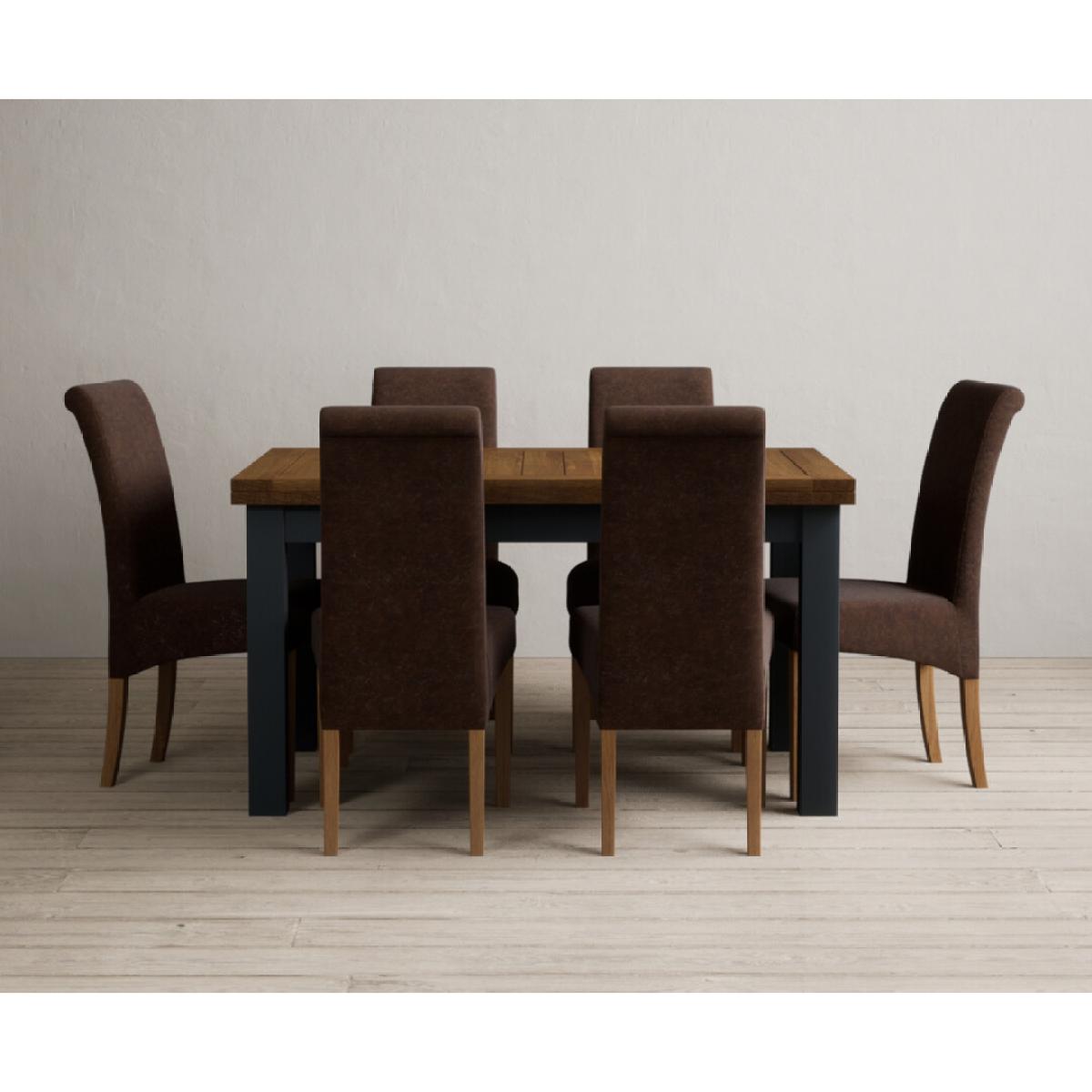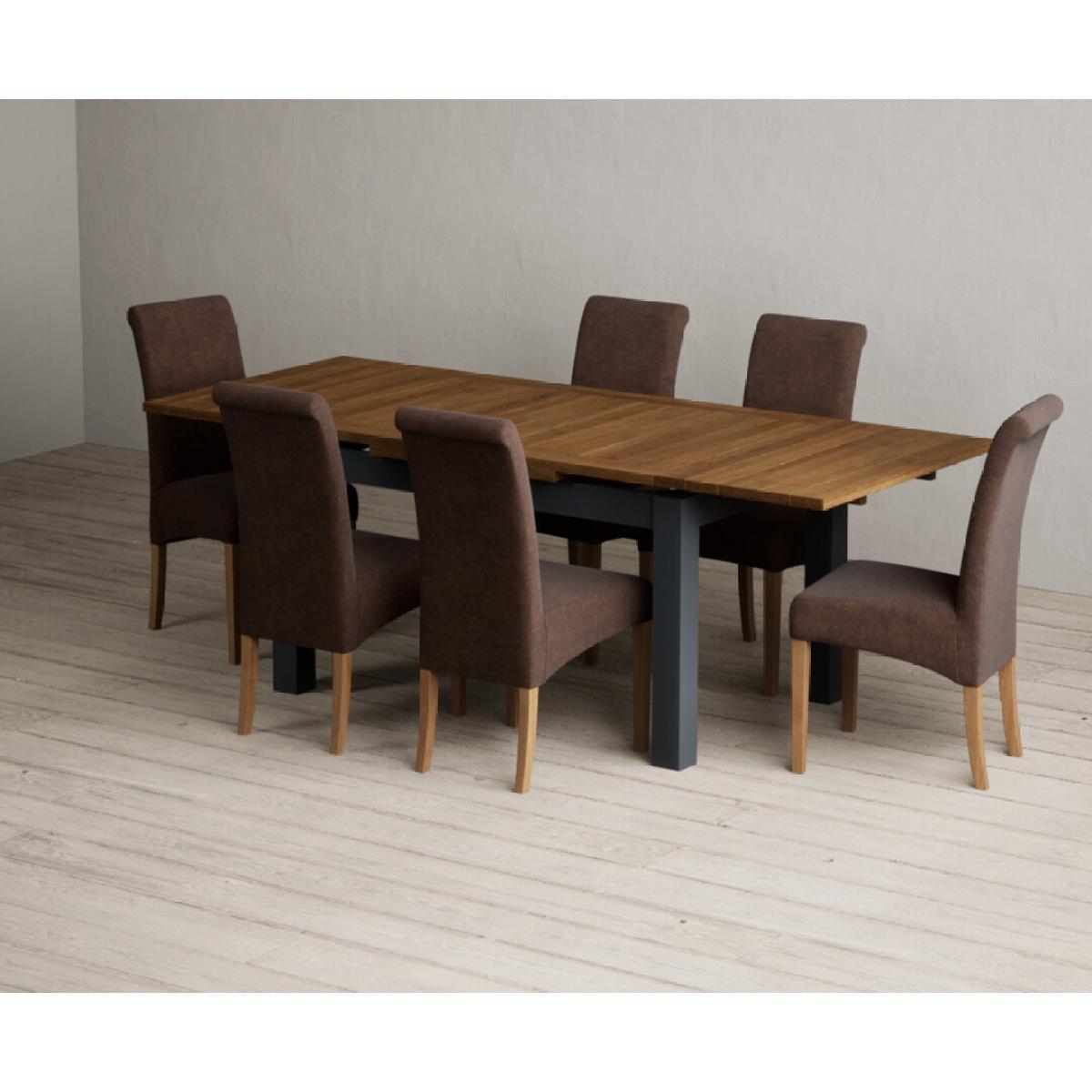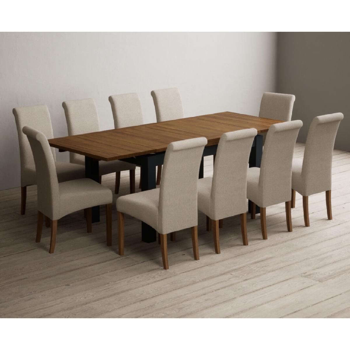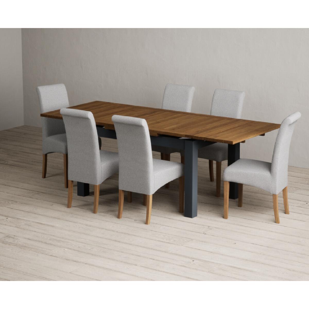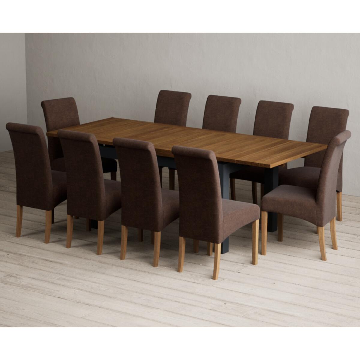 Extending Buxton 140cm Oak and Dark Blue Painted Dining Table with 8 Natural Scroll Back Chairs