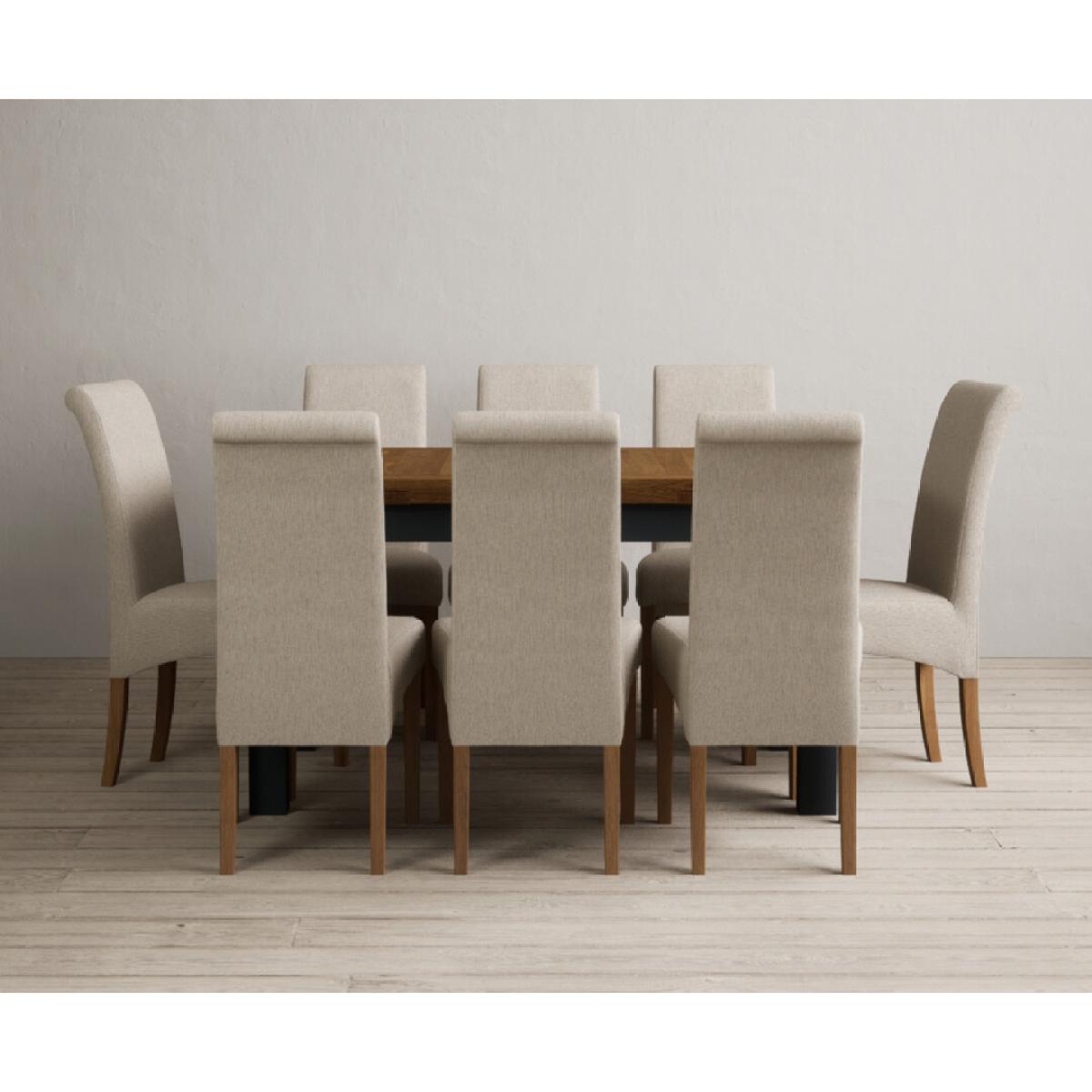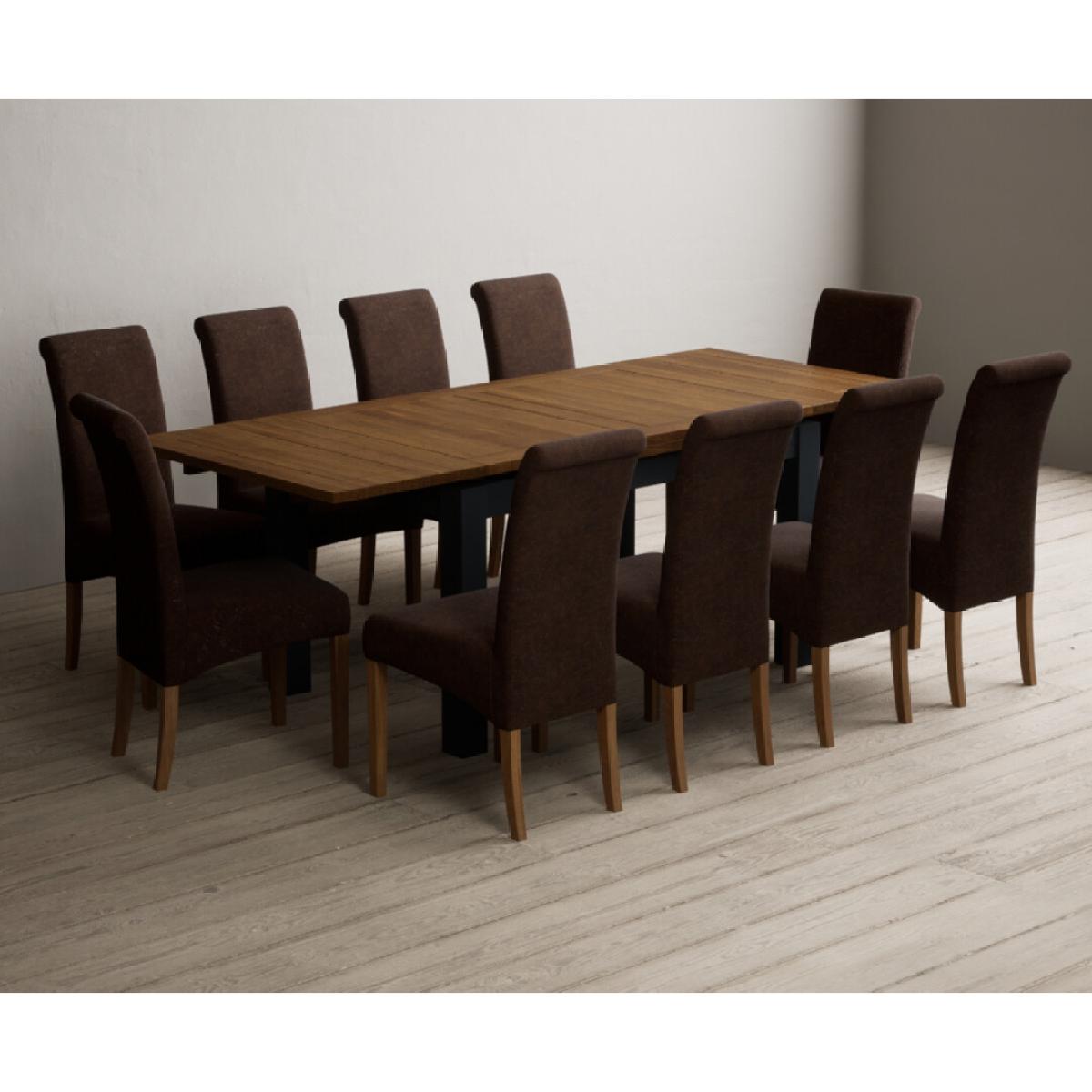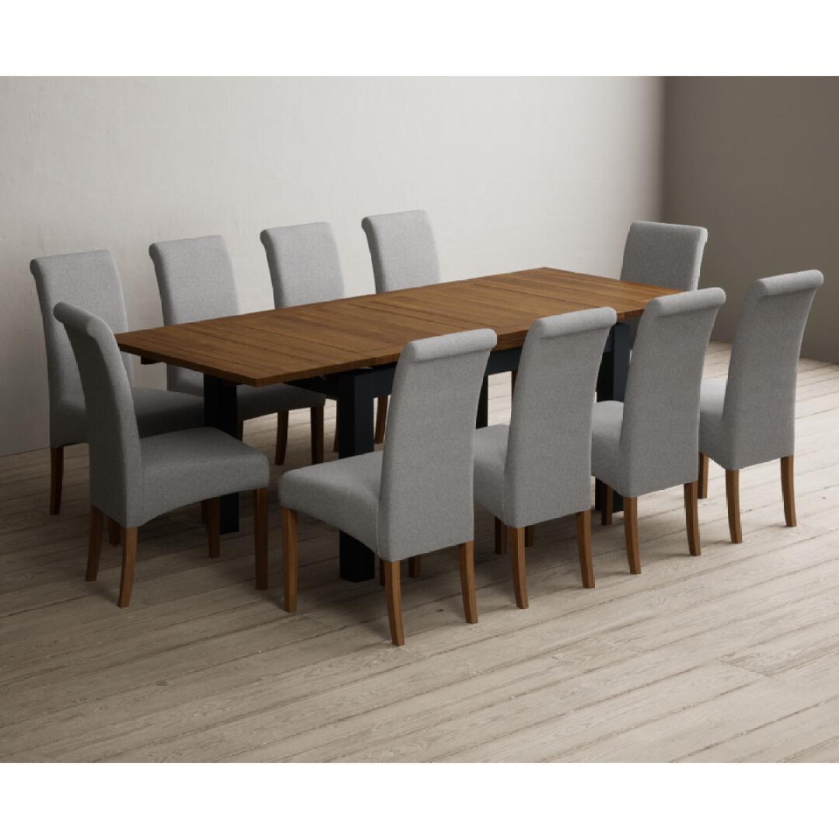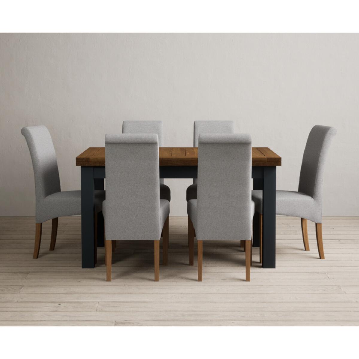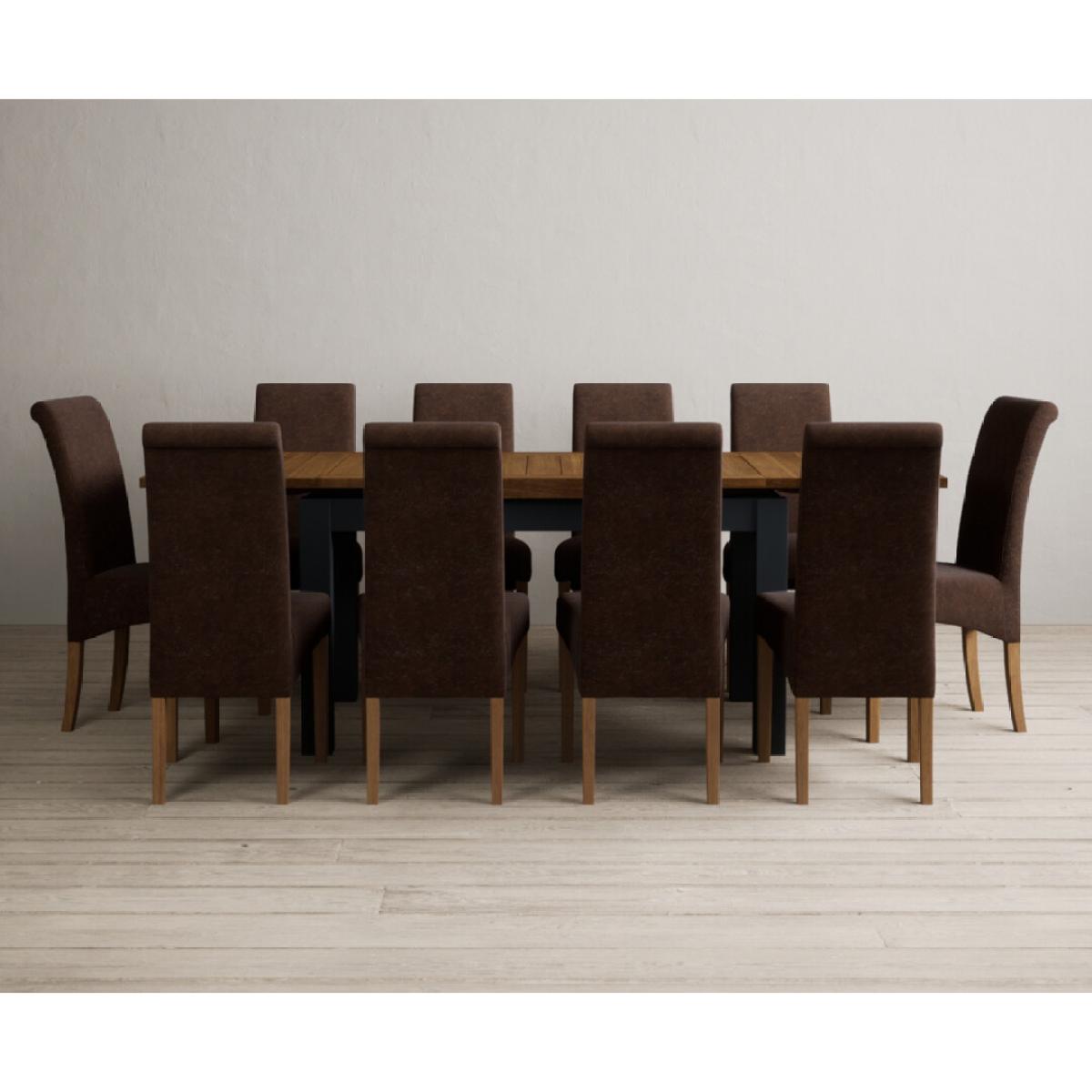 Extending Buxton 140cm Oak and Dark Blue Painted Dining Table with 8 Natural Scroll Back Chairs