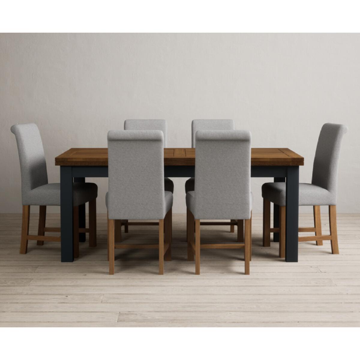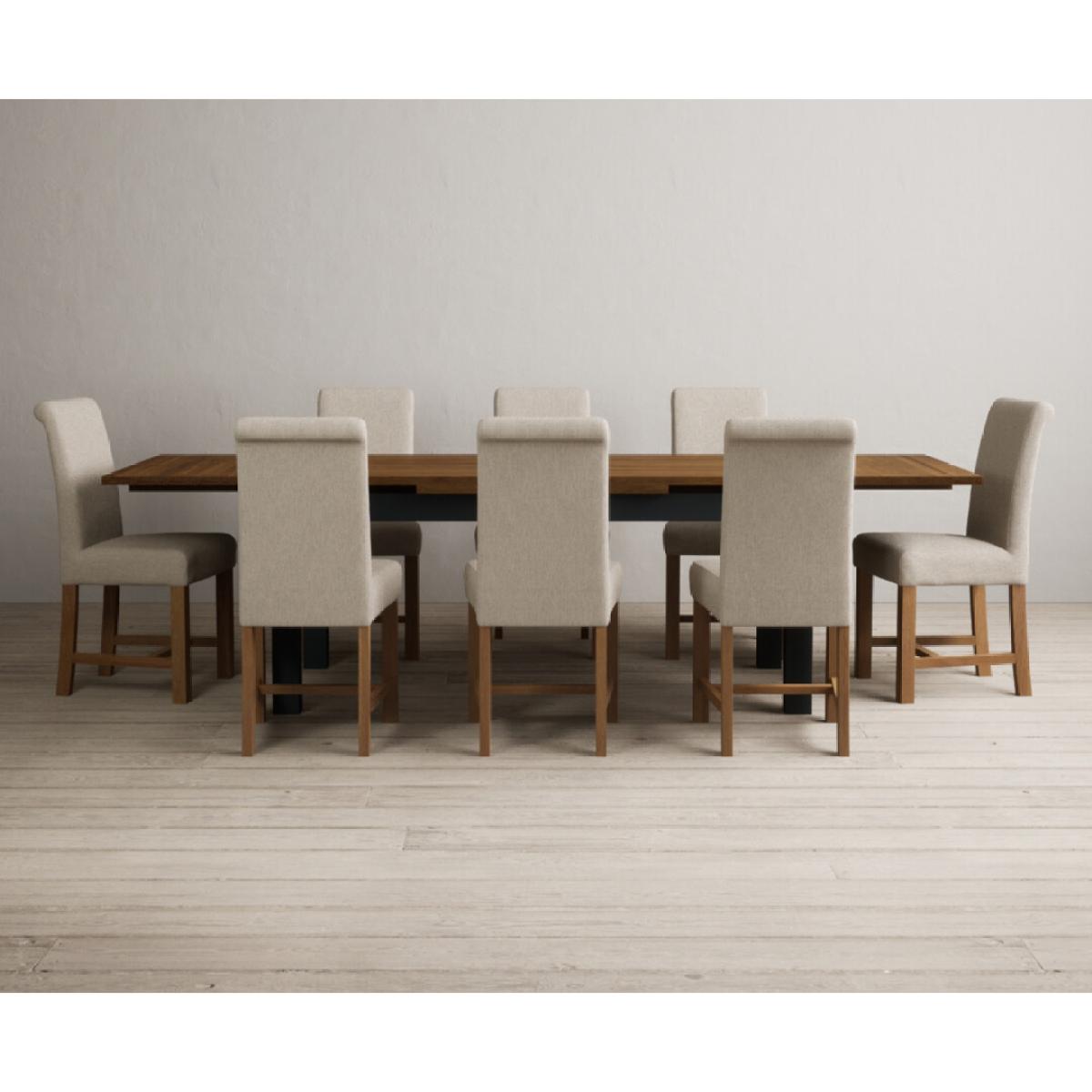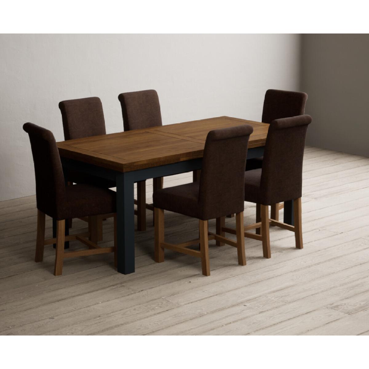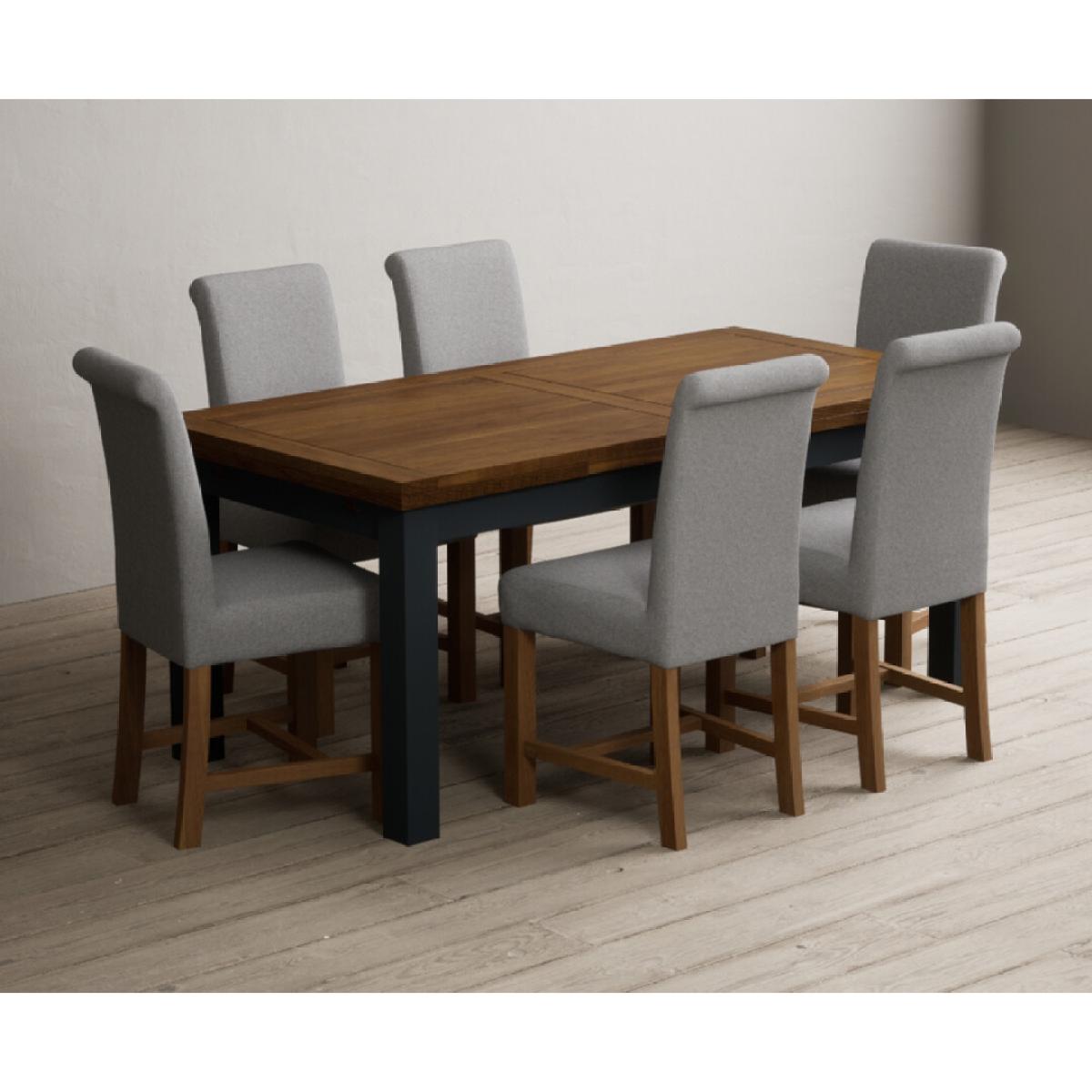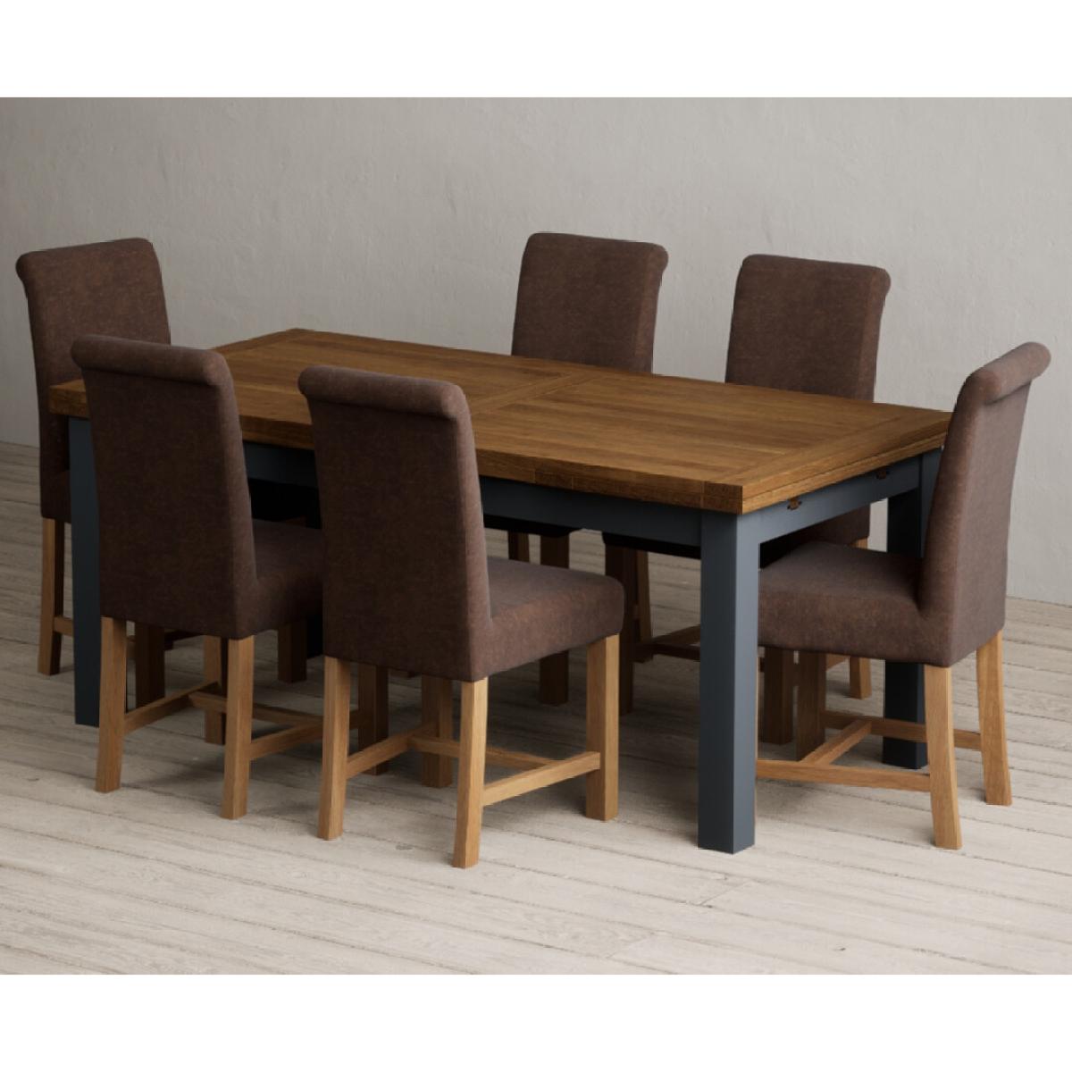 Extending Buxton 180cm Oak and Dark Blue Painted Dining Table with 8 Blue Scroll Back Chairs