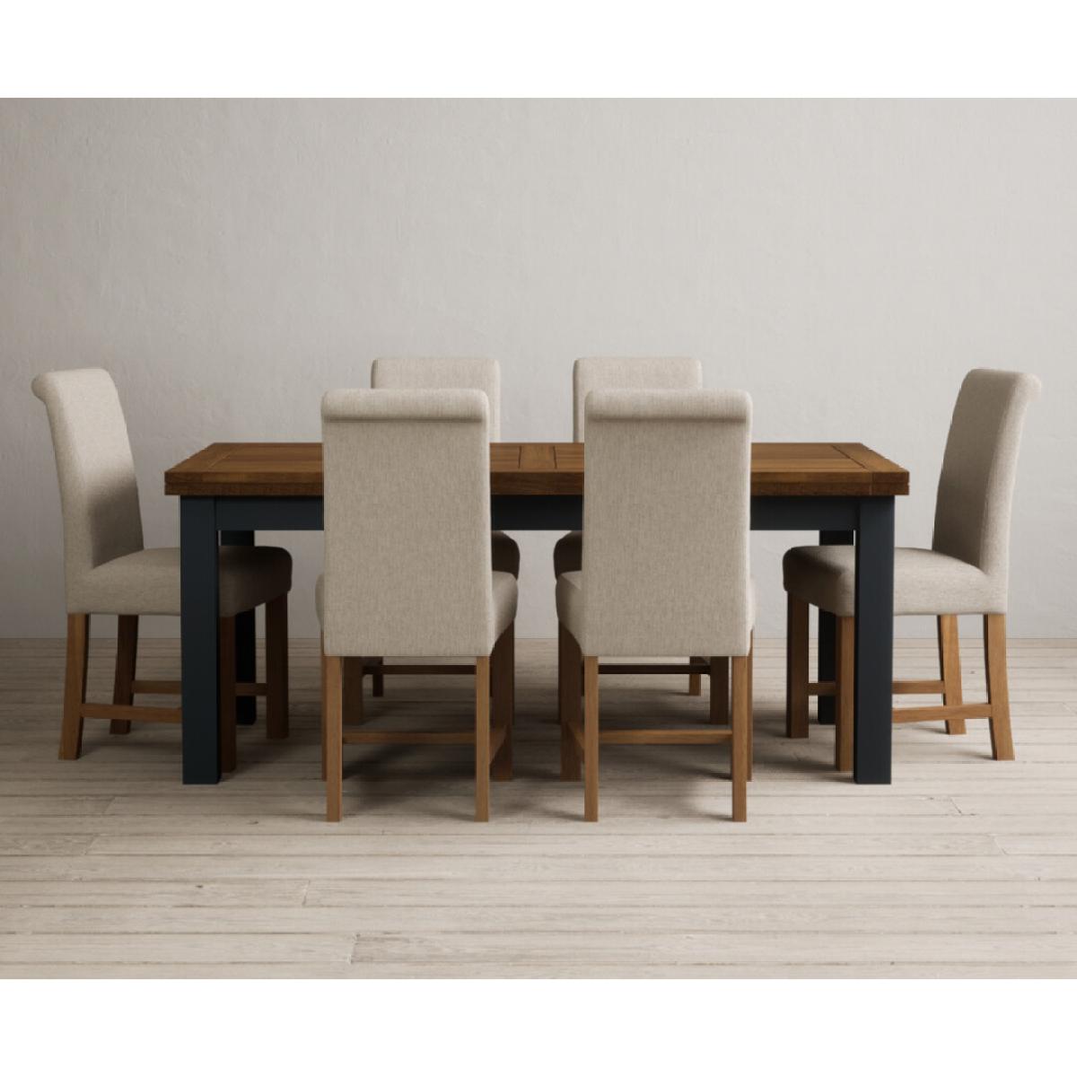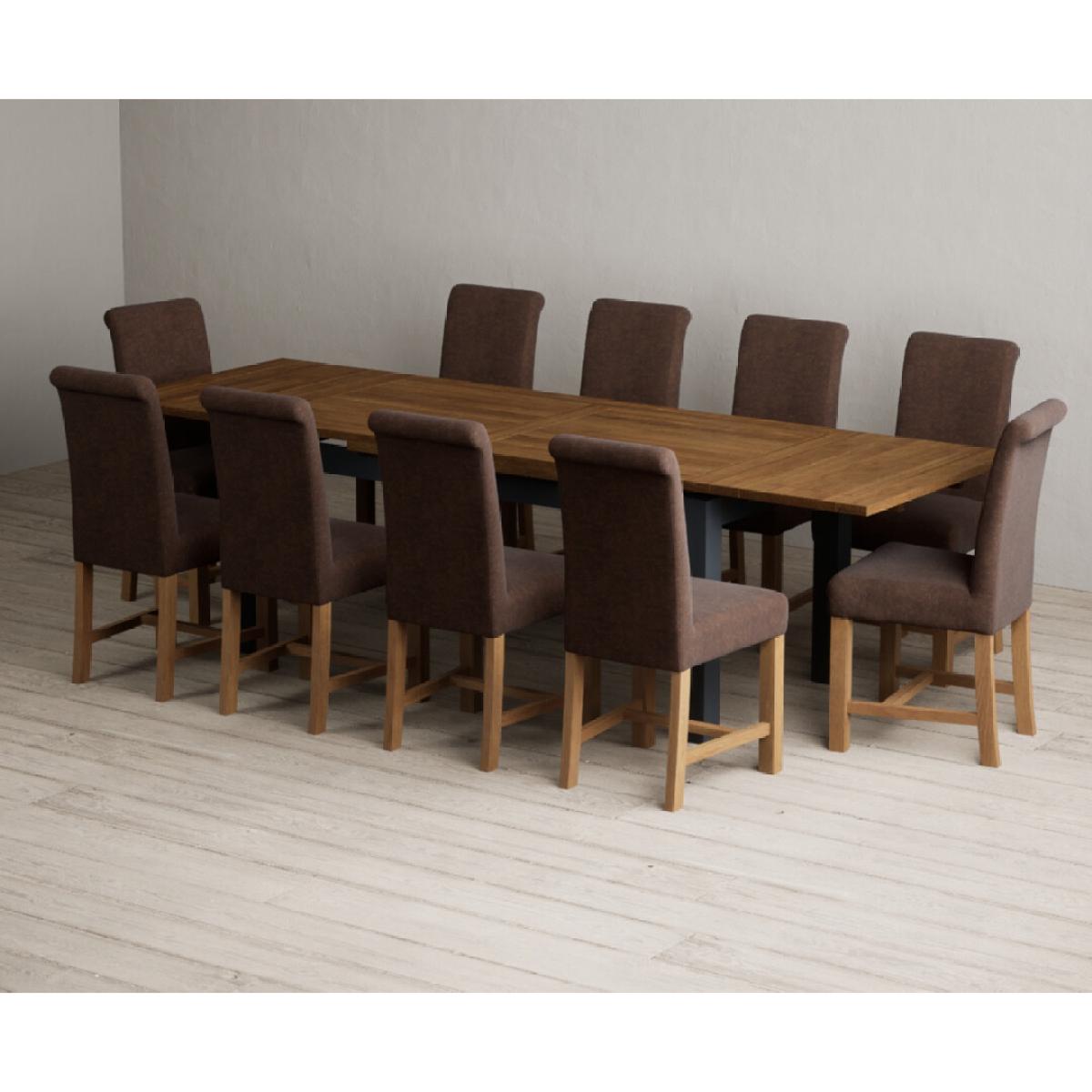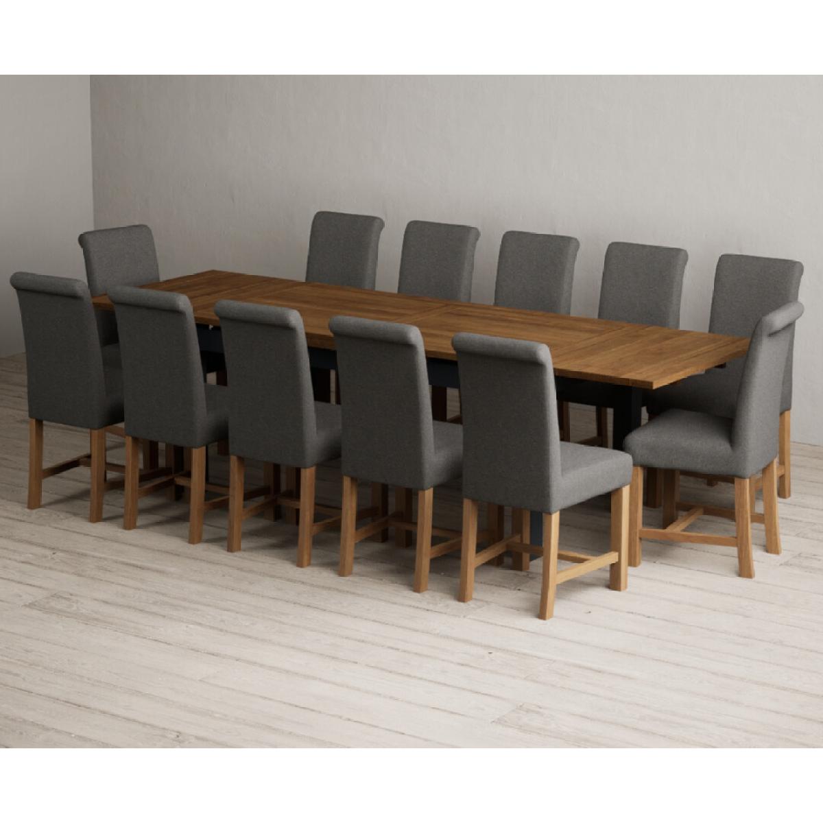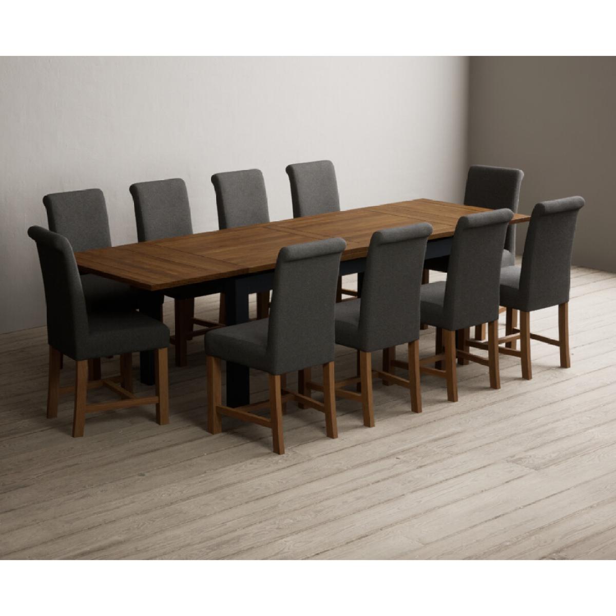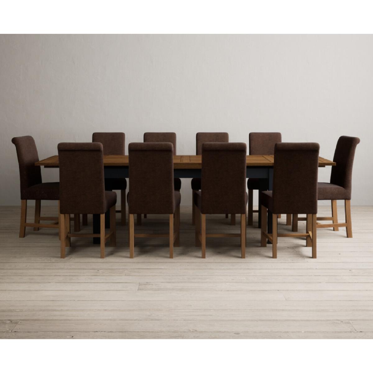 Extending Buxton 180cm Oak and Dark Blue Painted Dining Table with 8 Blue Scroll Back Chairs