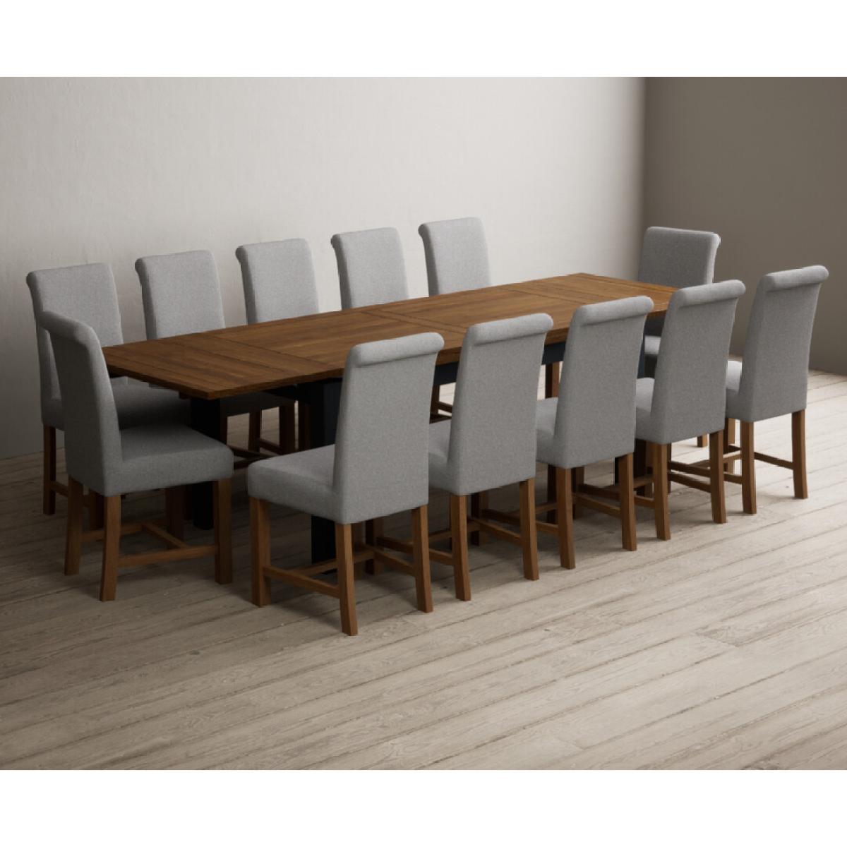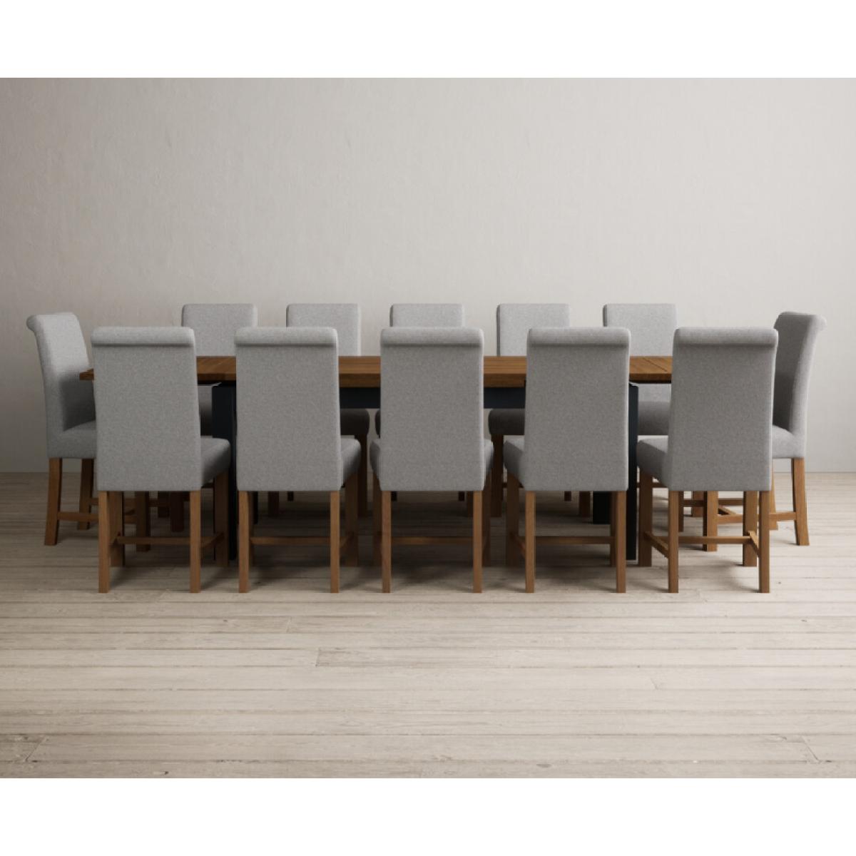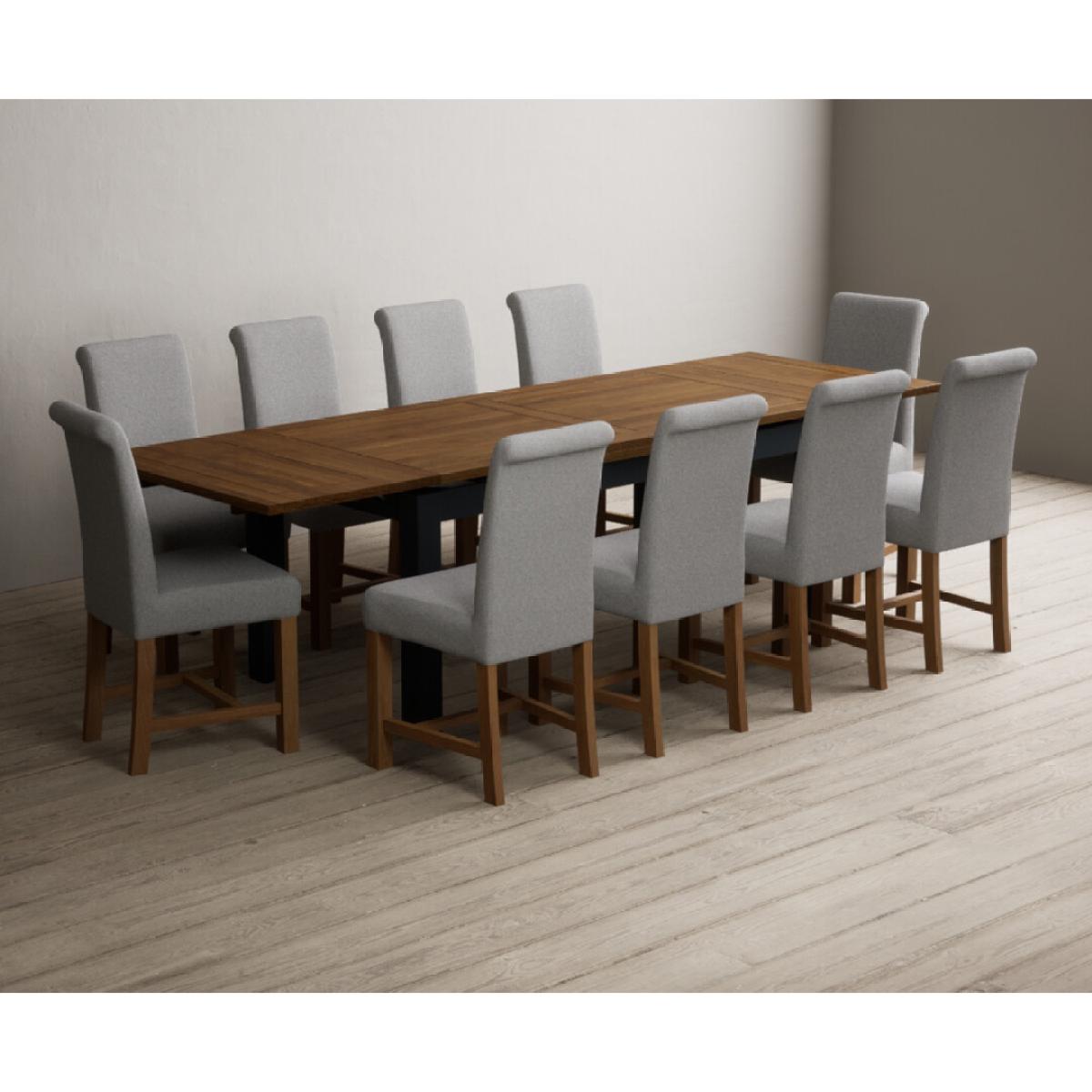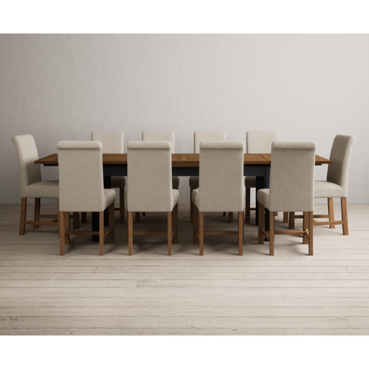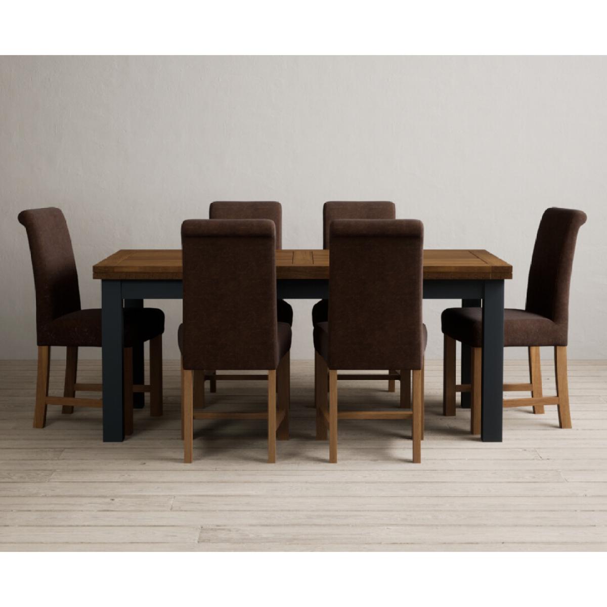 Extending Buxton 180cm Oak and Dark Blue Painted Dining Table with 8 Blue Scroll Back Chairs