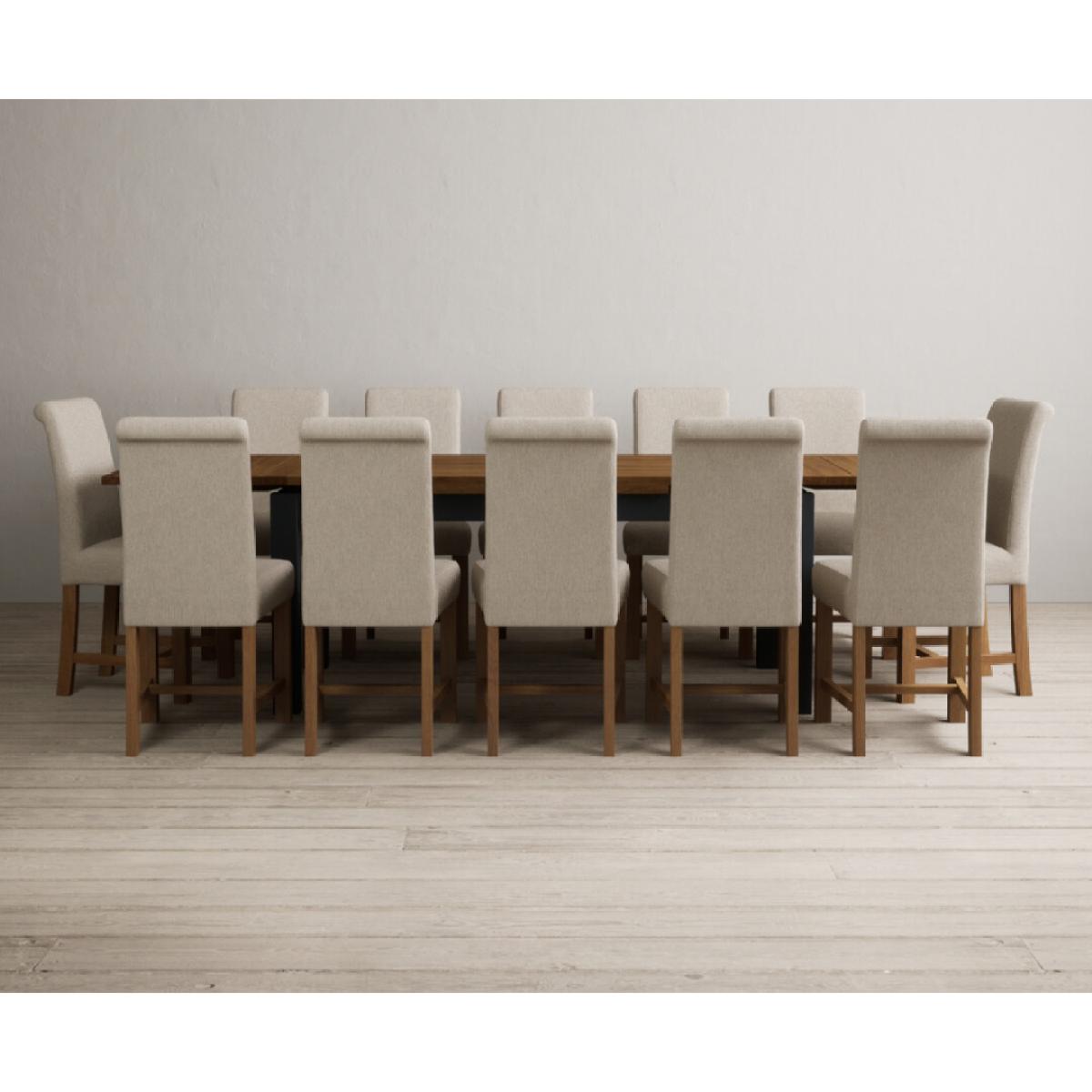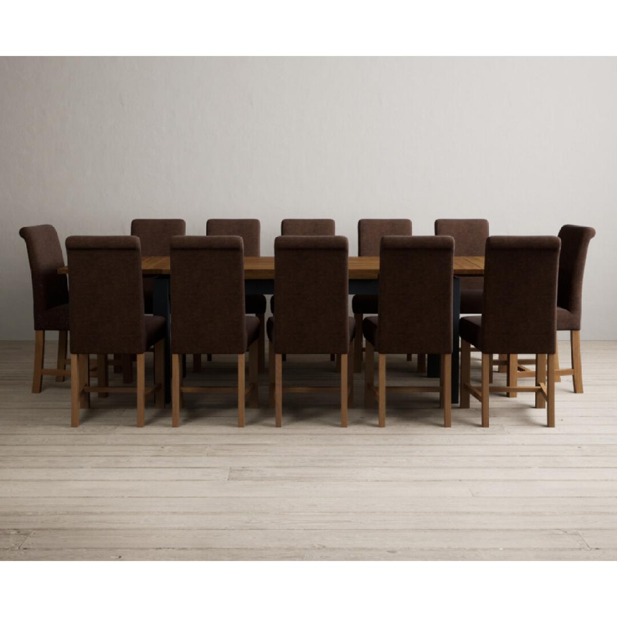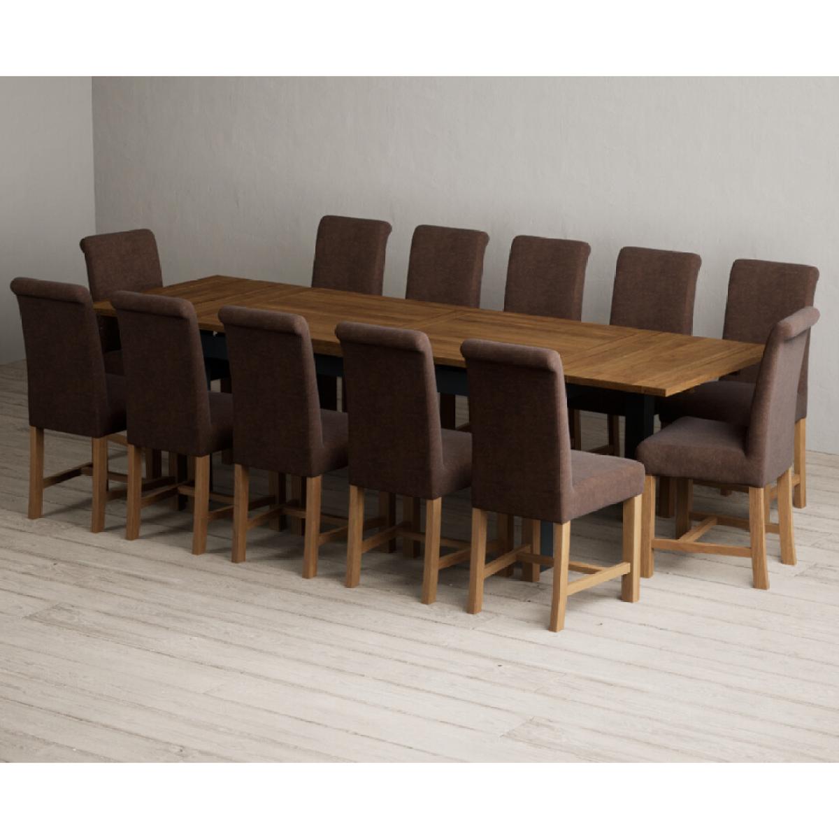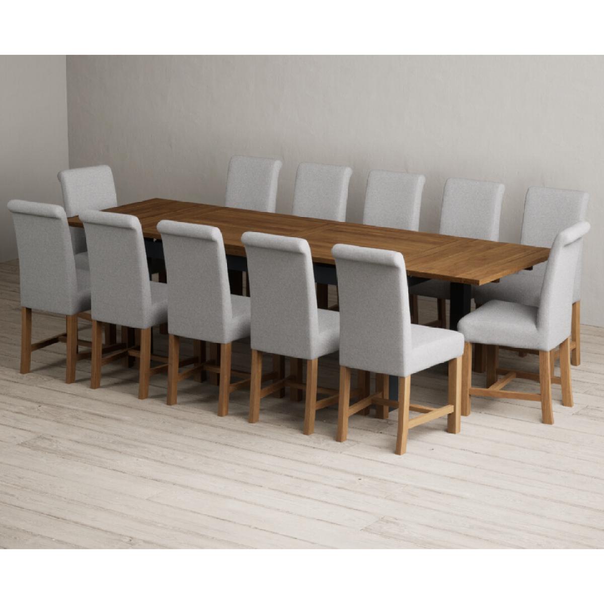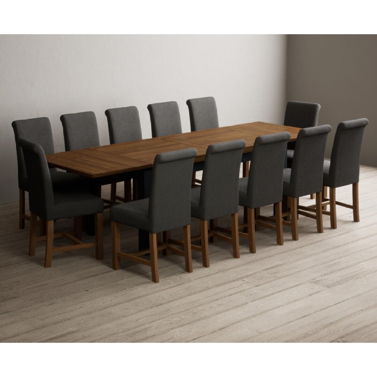 Extending Buxton 180cm Oak and Dark Blue Painted Dining Table with 8 Blue Scroll Back Chairs