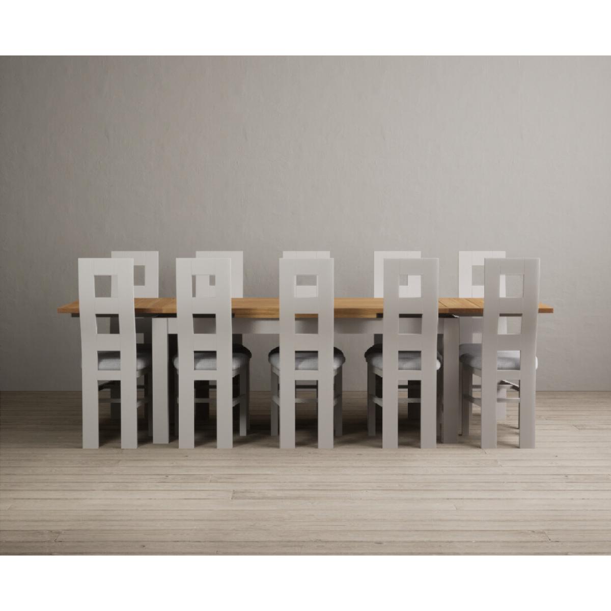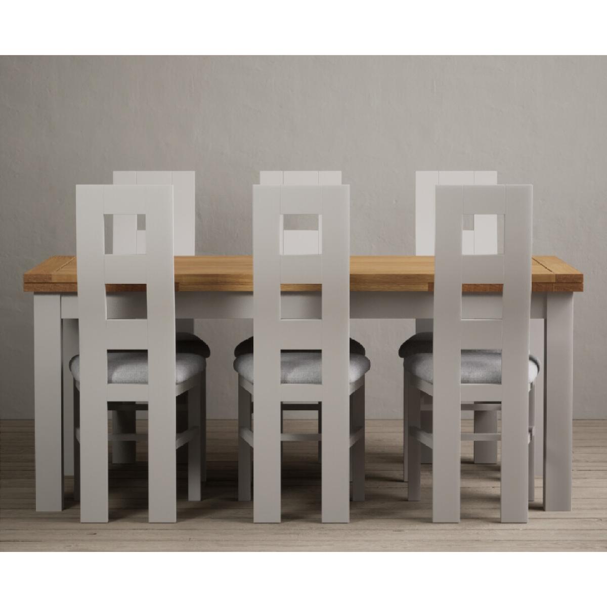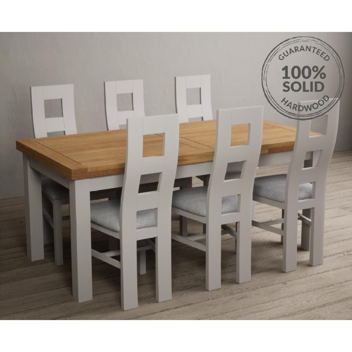 The Buxton 180cm Oak and Soft White Extending Dining Table with Flow Back Chairs is a painted extending dining set, made with 100% solid wood and 100% solid oak.