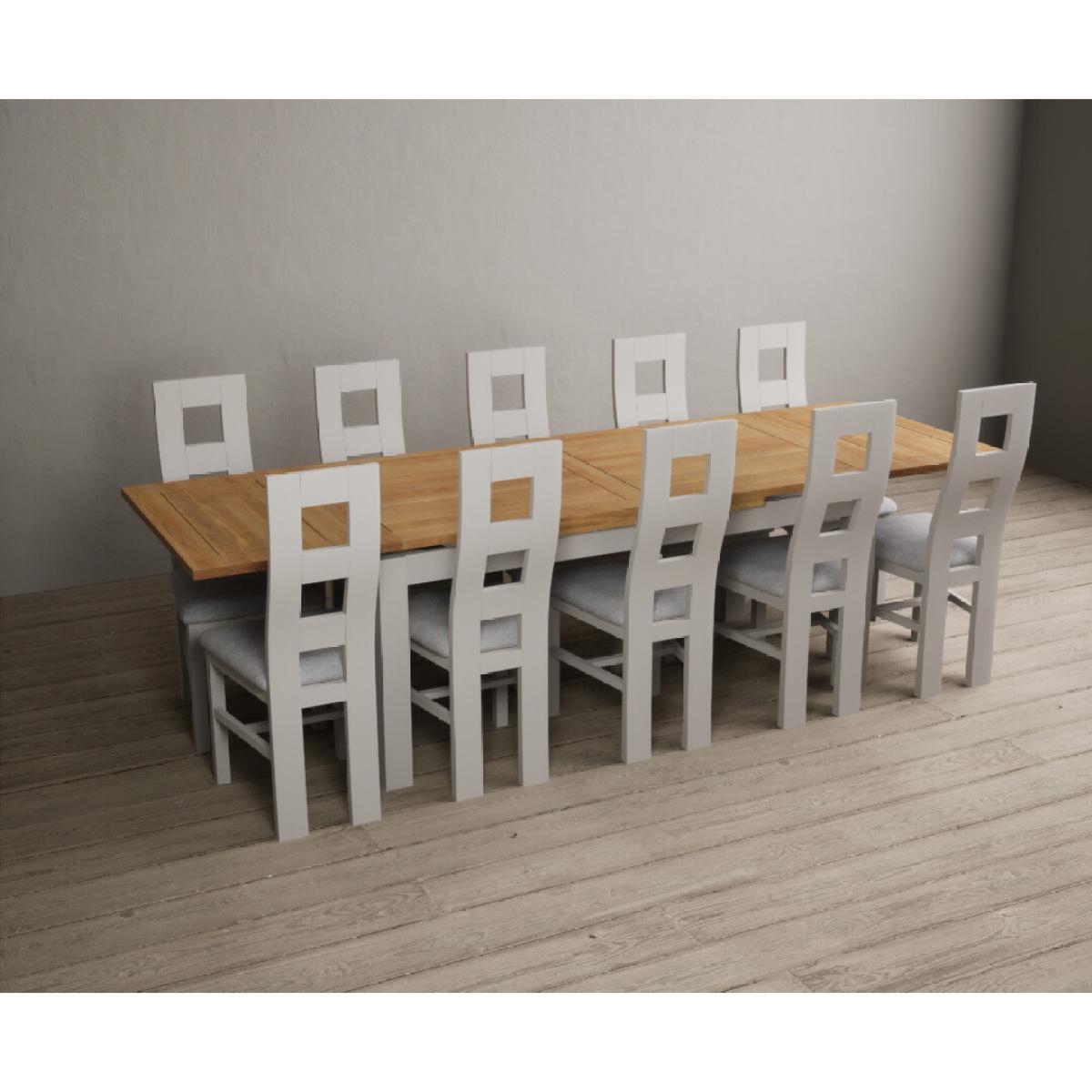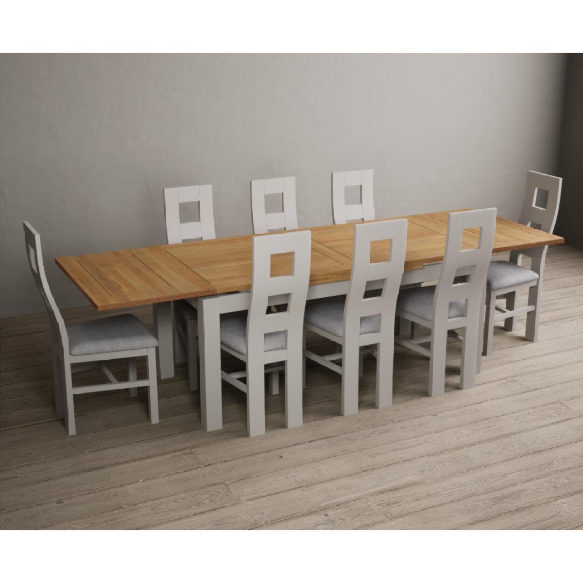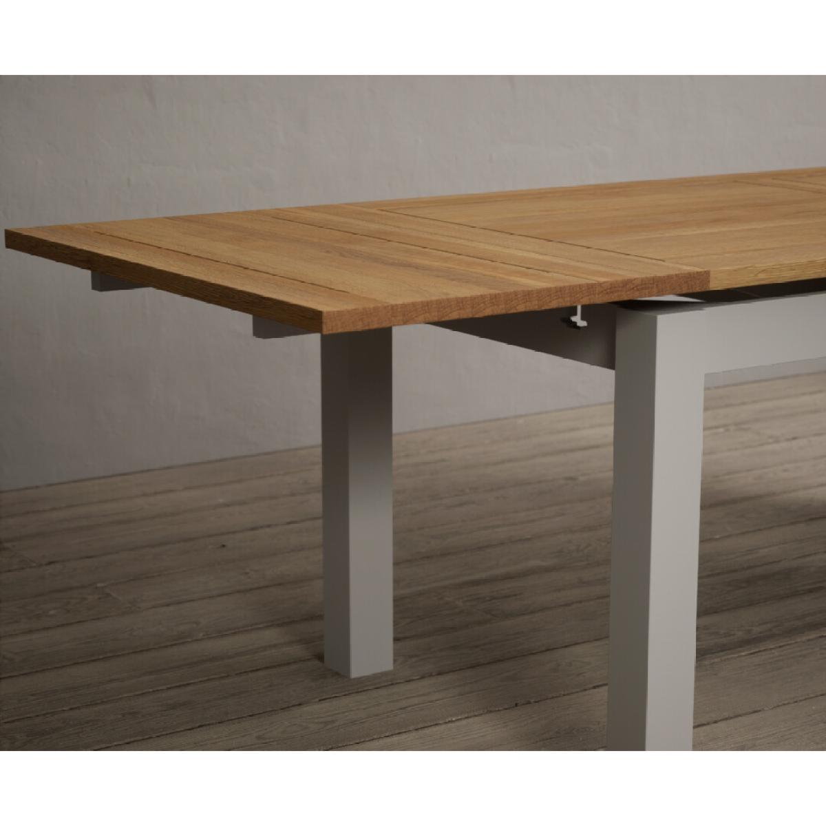 The Buxton 180cm Oak and Soft White Extending Dining Table with Flow Back Chairs is a painted extending dining set, made with 100% solid wood and 100% solid oak.