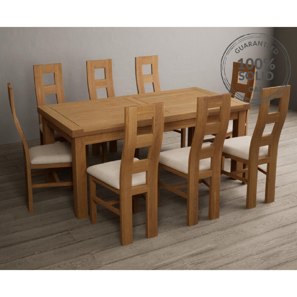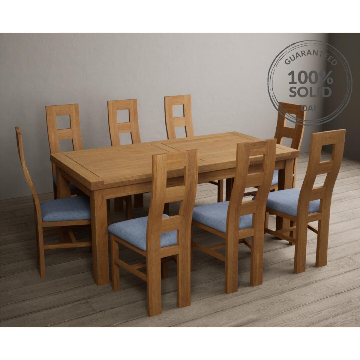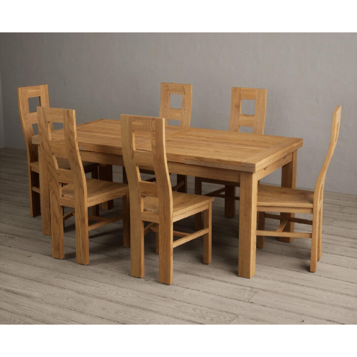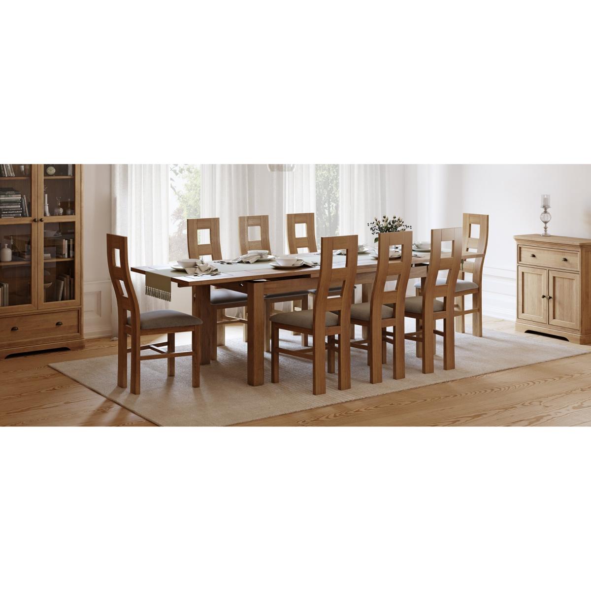 I love this set for its clean, modern look and versatility. The solid oak table lends a warm, timeless appeal that works well in both contemporary and traditional interiors, especially in open-plan or Scandinavian-inspired spaces. The light grey chairs add a subtle softness and can easily be styled with colourful or patterned accessories, such as table runners, placemats, or cushions, to personalise the look. For practical styling tips, I recommend keeping the tabletop clutter-free with a simple centrepiece like a vase of fresh flowers or a fruit bowl, which enhances the natural beauty of the wood. Additionally, pairing it with understated lighting, such as pendant lights overhead, can create a cosy yet stylish dining atmosphere. This set is perfect for larger families or those who frequently host guests, offering both functionality and aesthetic appeal.